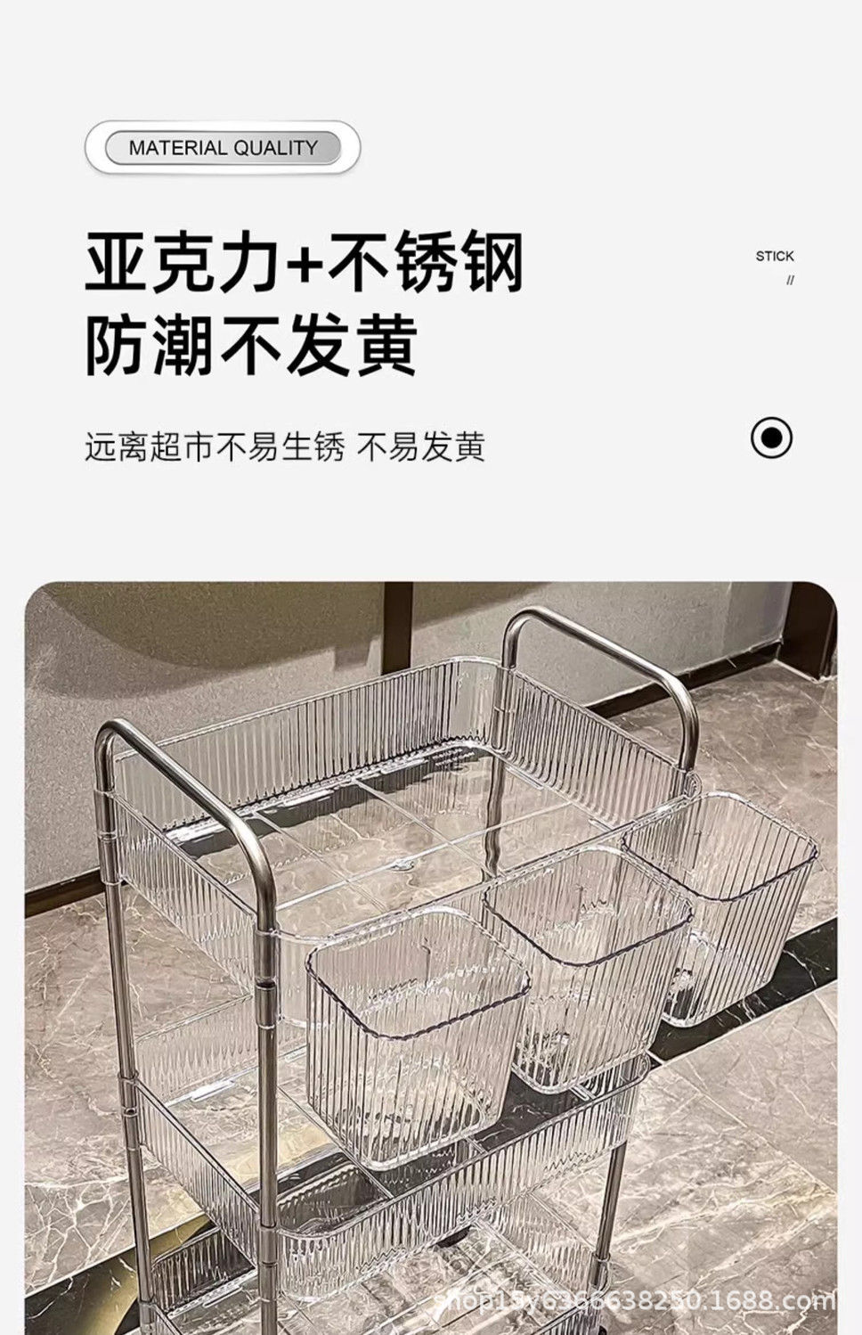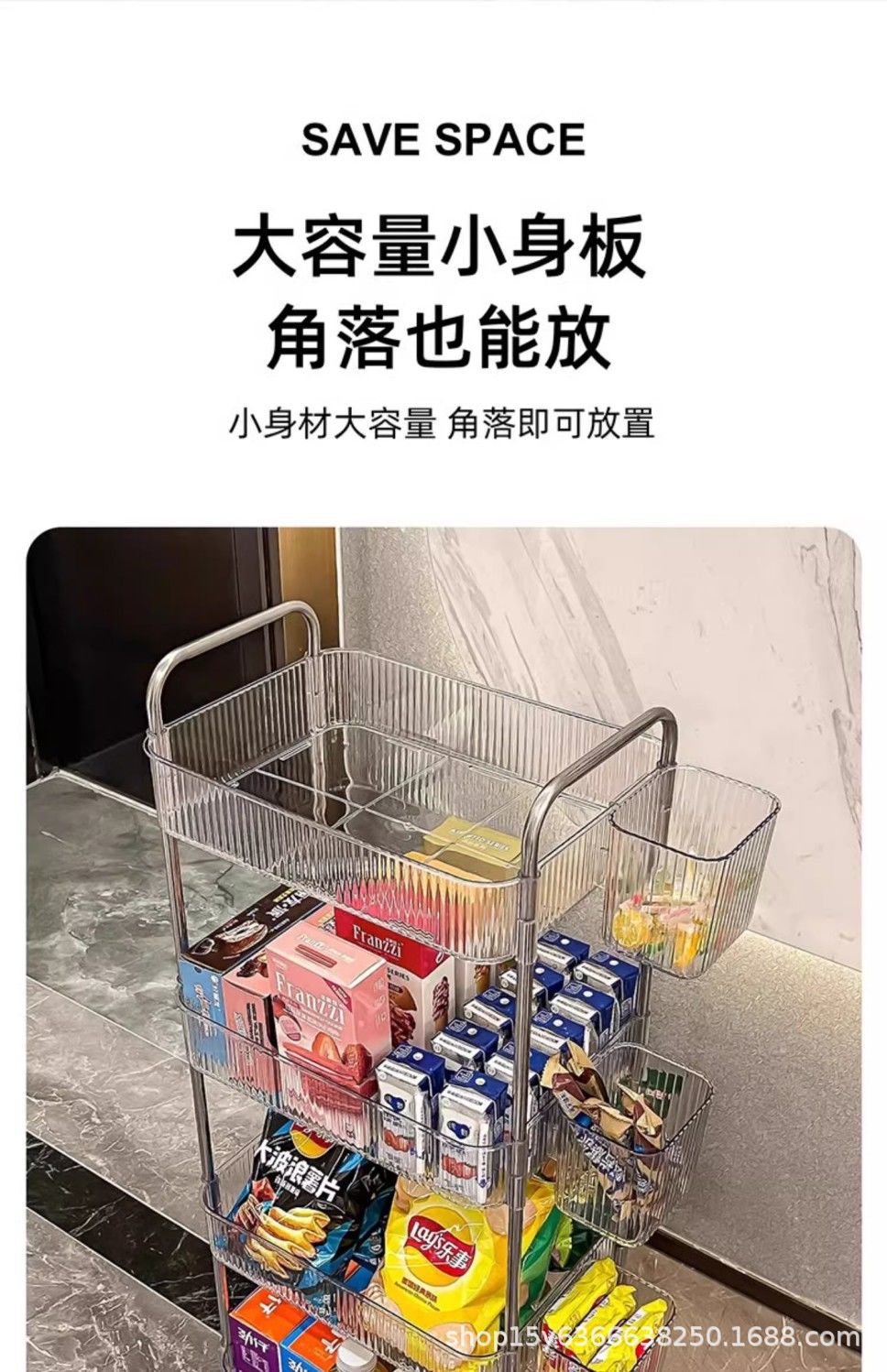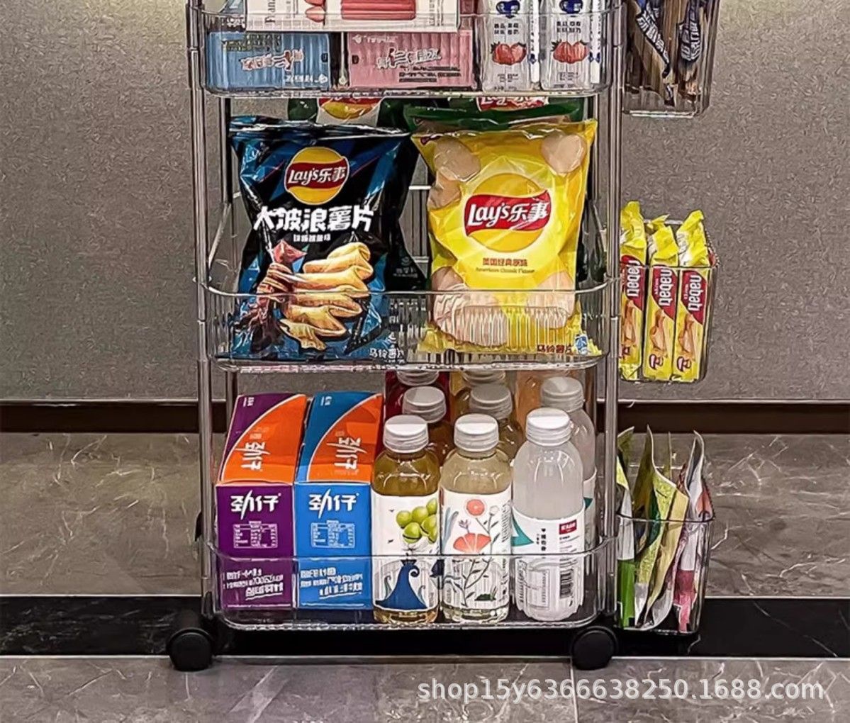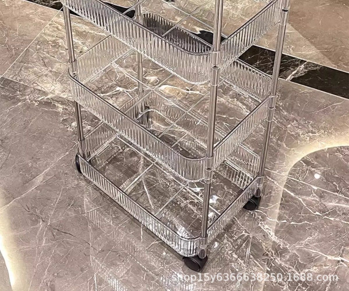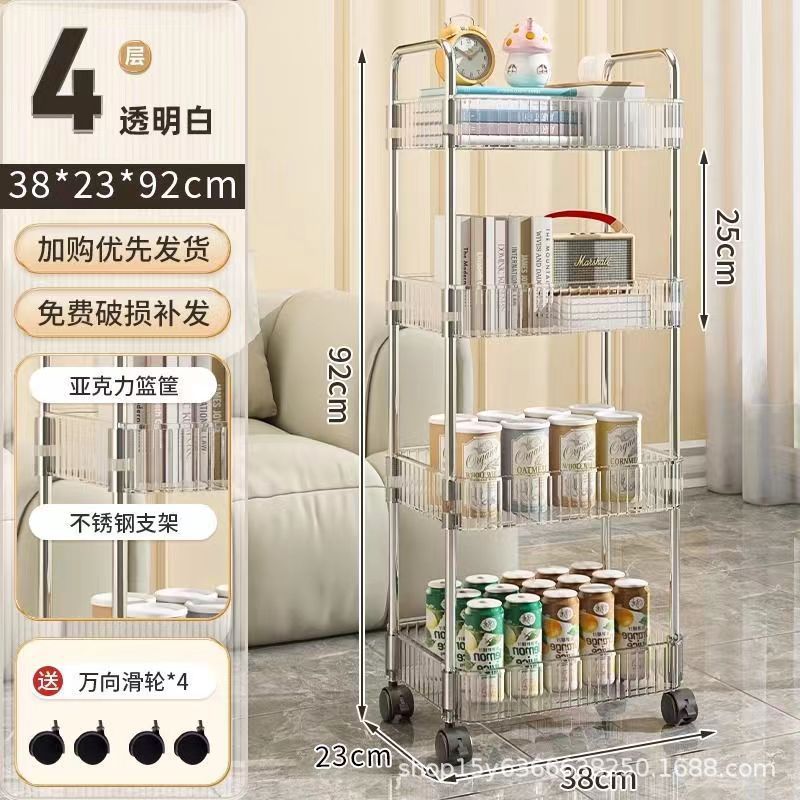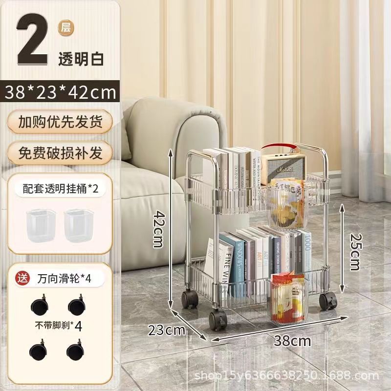 아크릴 플레이트 트롤리 선반 투명 스낵 선반 침실 바닥 서있는 이동식 책장 화장품 보관