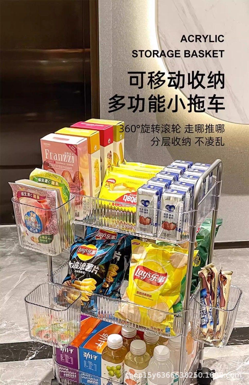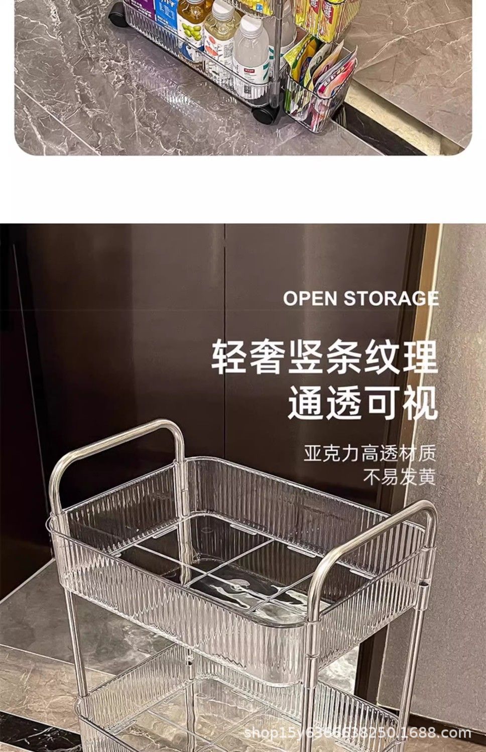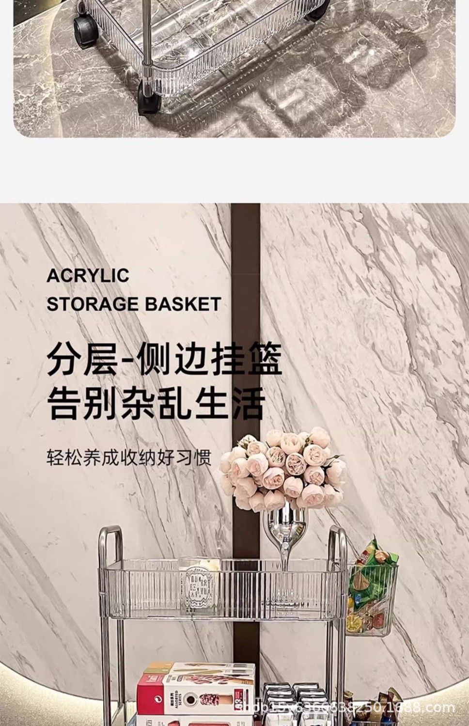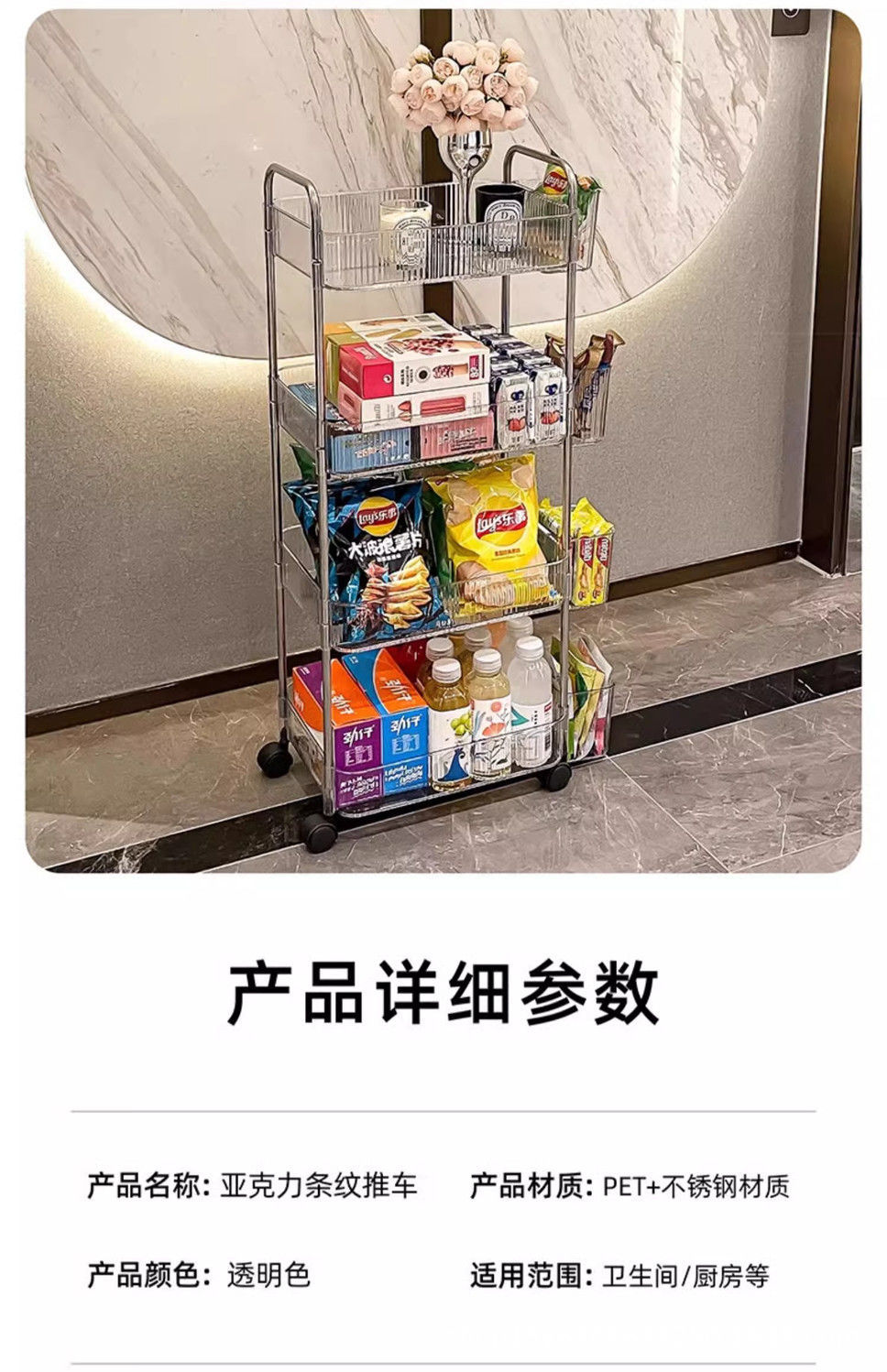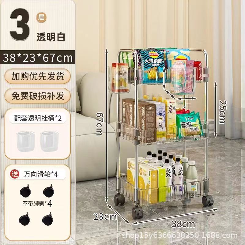 아크릴 플레이트 트롤리 선반 투명 스낵 선반 침실 바닥 서있는 이동식 책장 화장품 보관