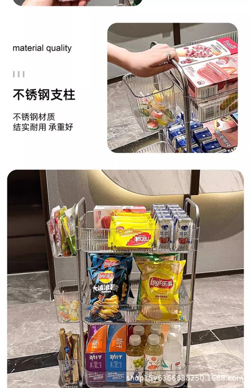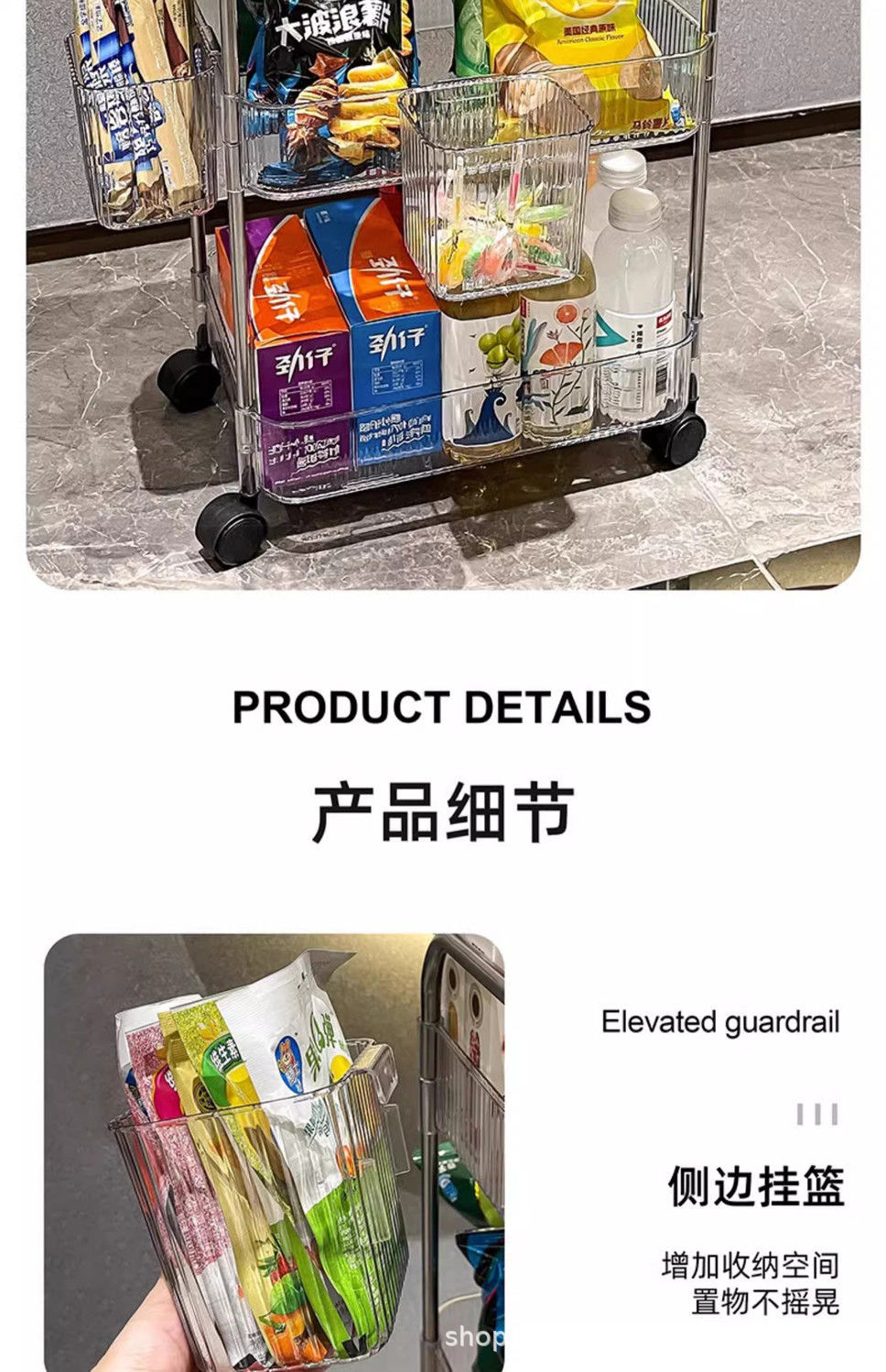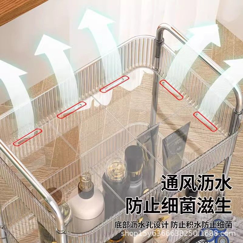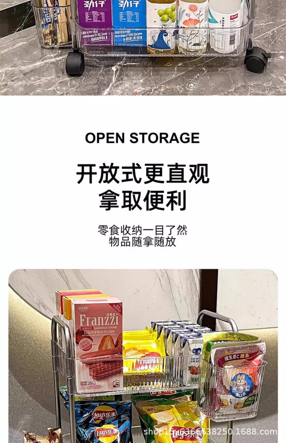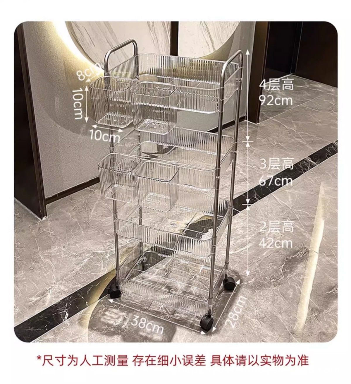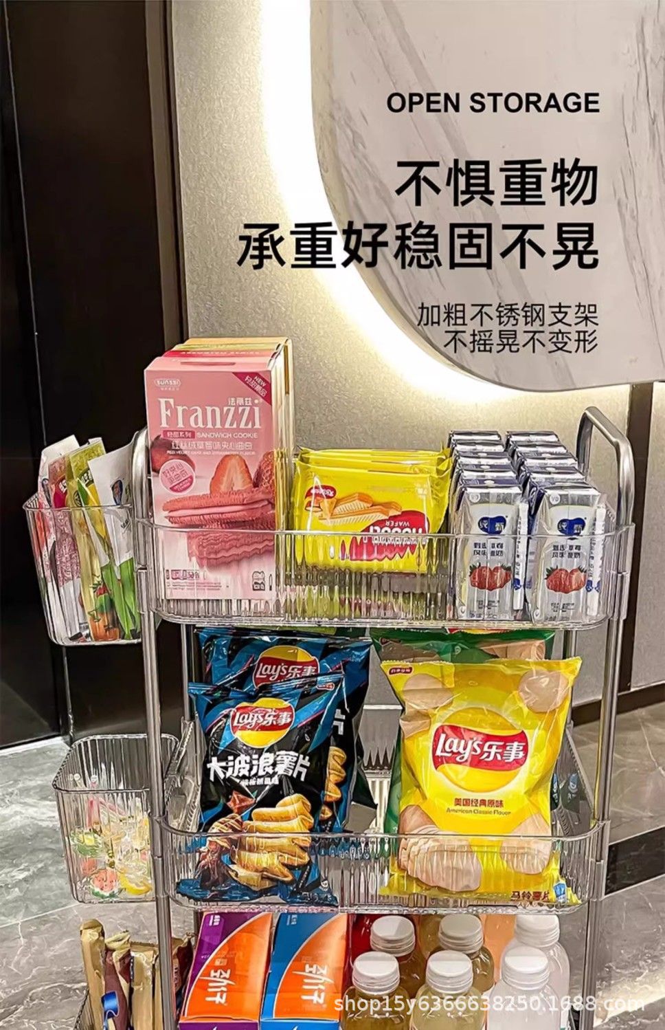 아크릴 플레이트 트롤리 선반 투명 스낵 선반 침실 바닥 서있는 이동식 책장 화장품 보관