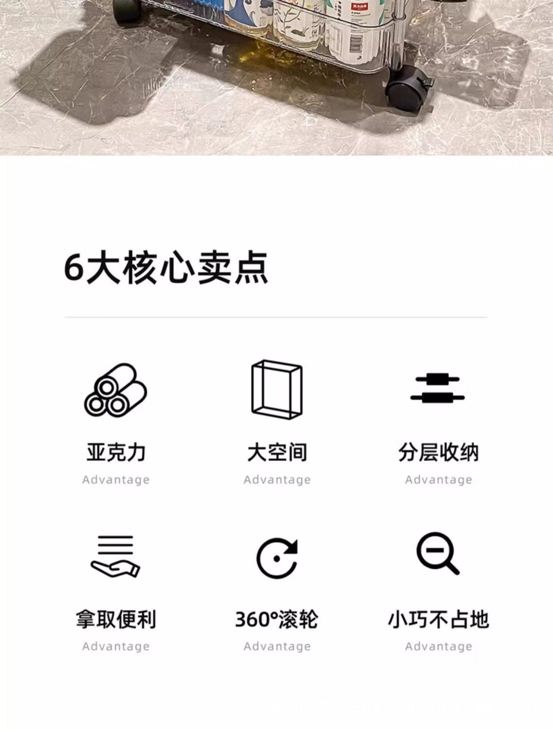 아크릴 플레이트 트롤리 선반 투명 스낵 선반 침실 바닥 서있는 이동식 책장 화장품 보관스토어 가기