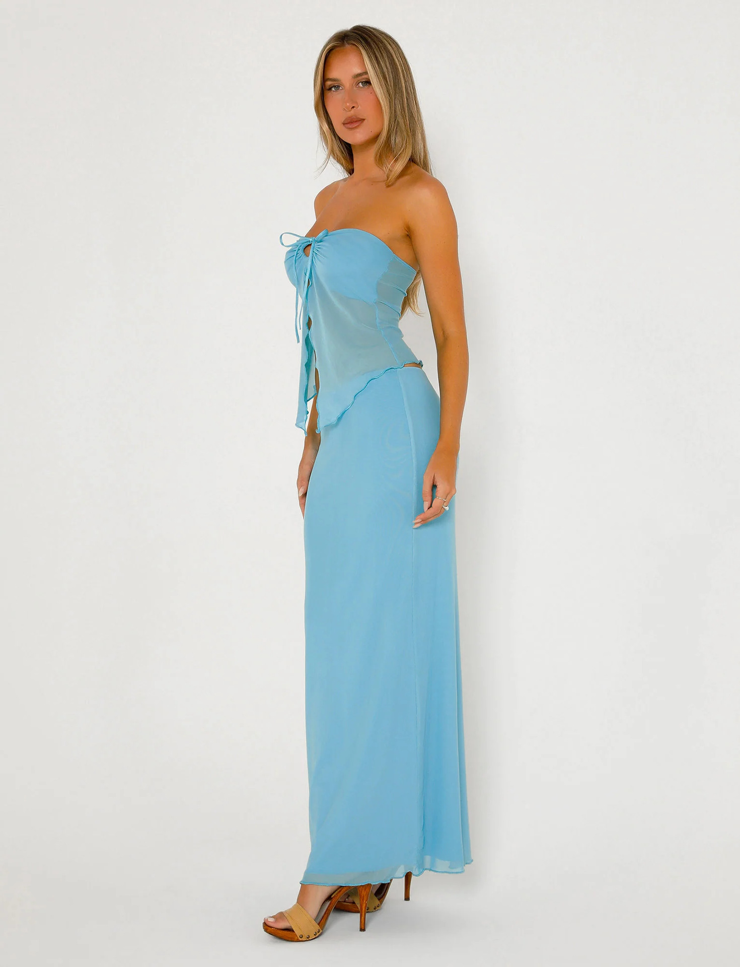 2024 아마존 새로운 여성 유럽과 미국의 우아한 단색 민소매 메쉬 더블 분할 튜브 탑 원피스 세트