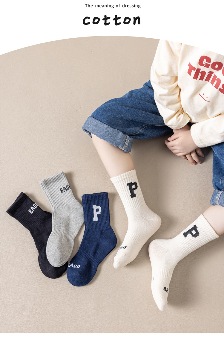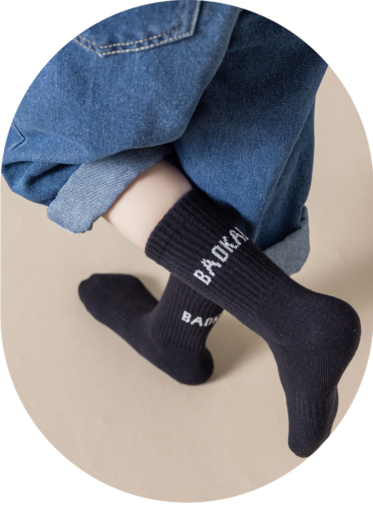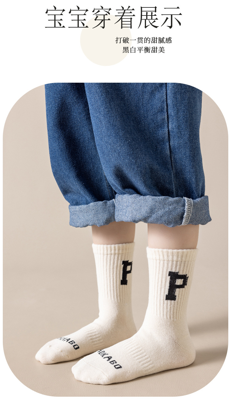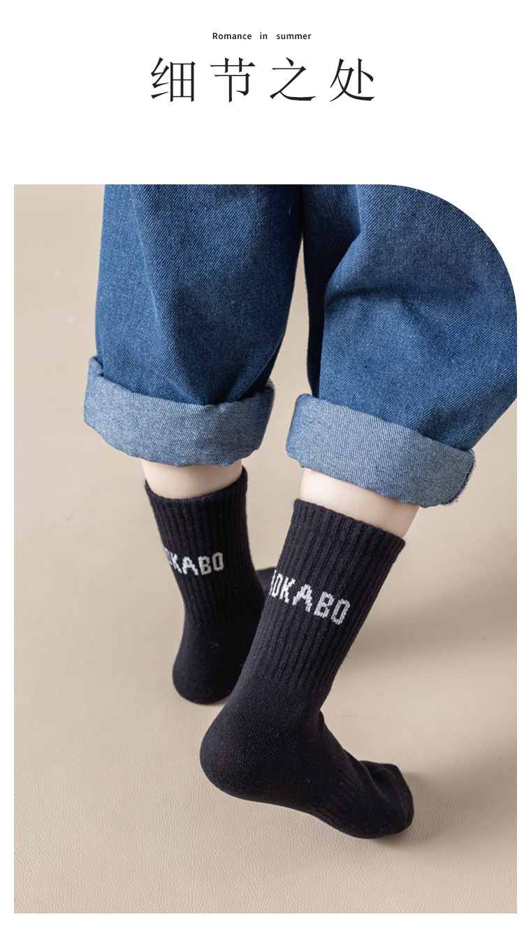 2024 어린이 양말 단색 문자 한국 영어 봄과 가을 통기성 중반 송아지 양말 소년 소녀 스포츠 양말스토어 가기