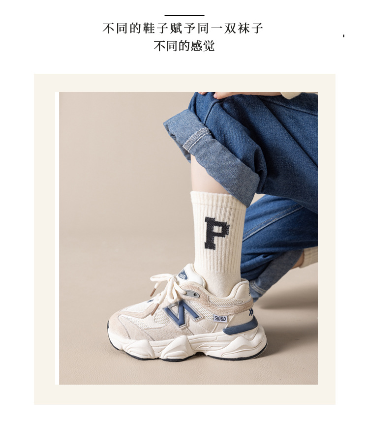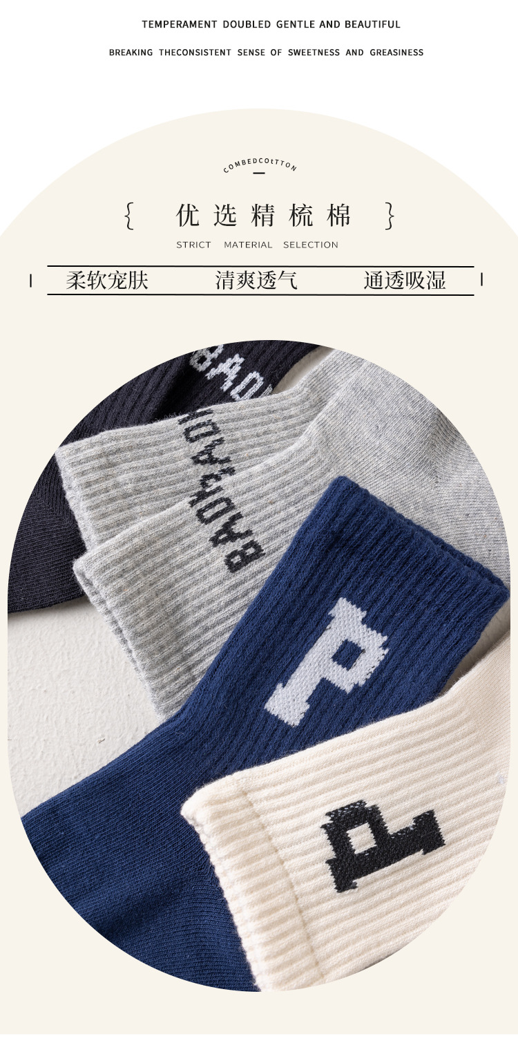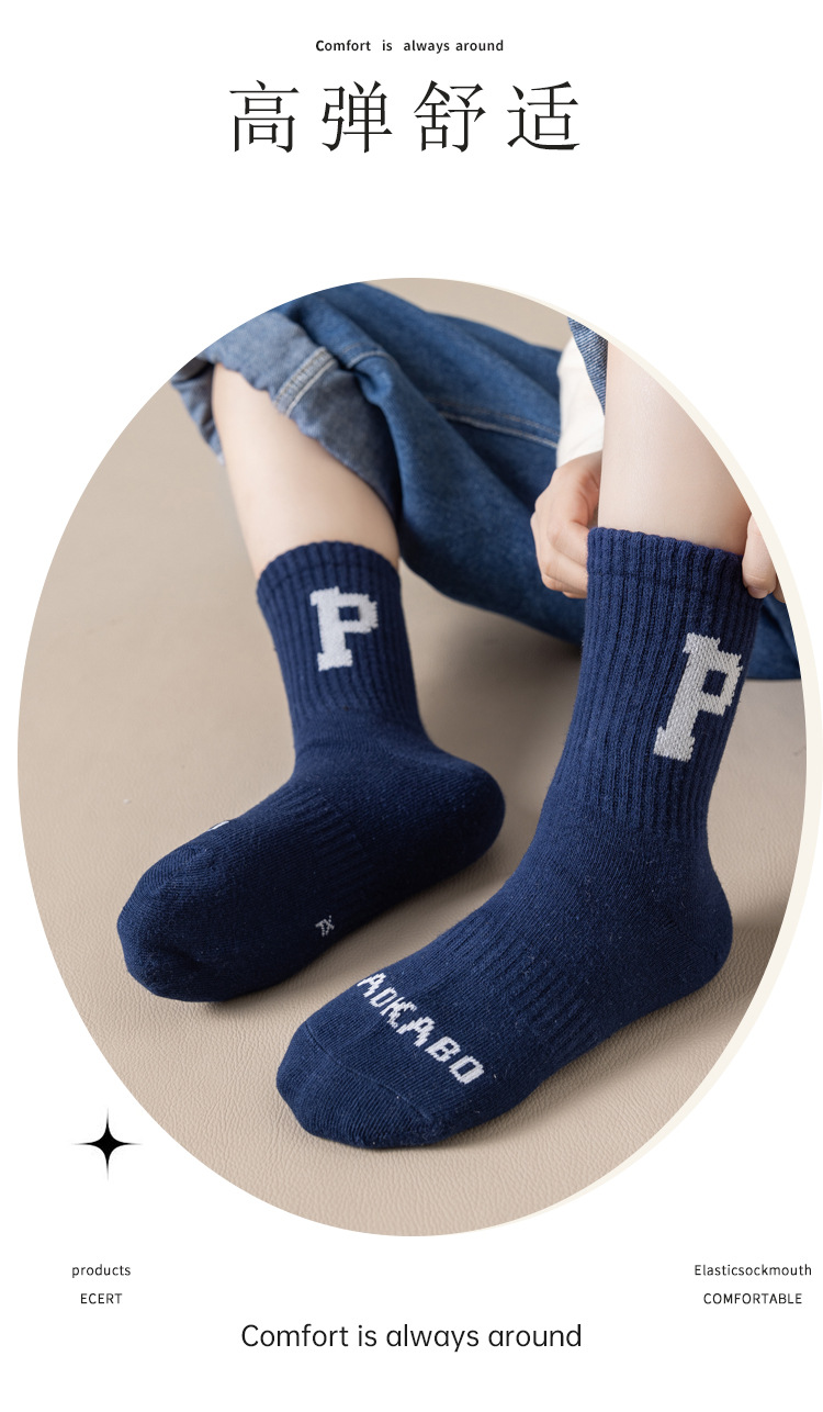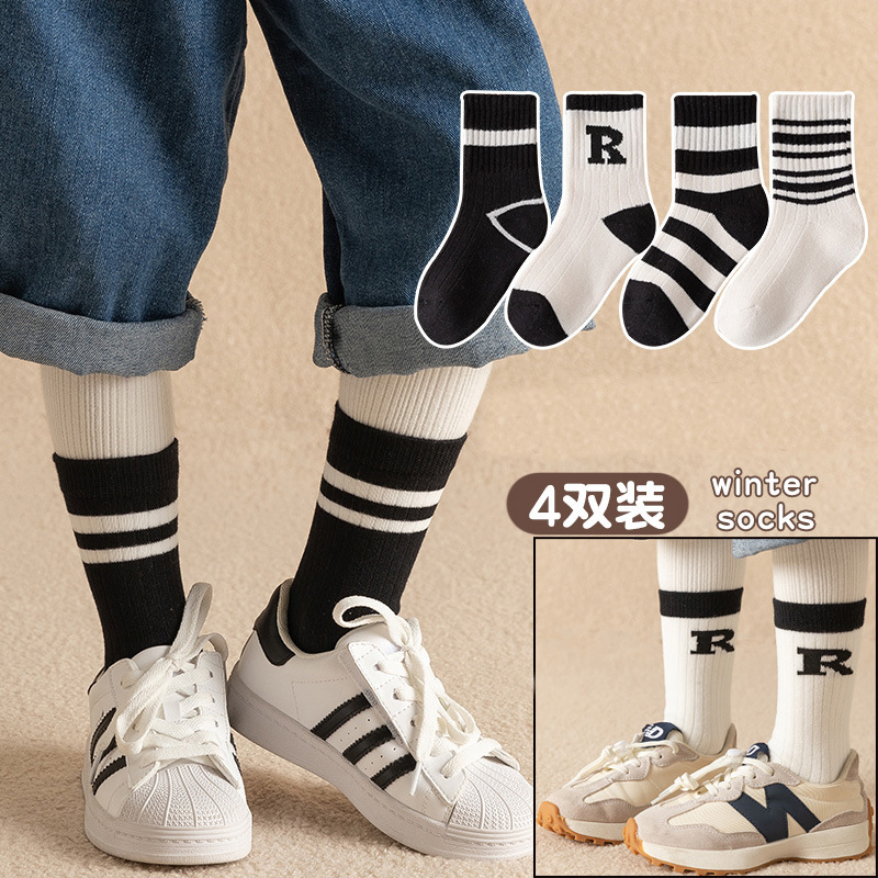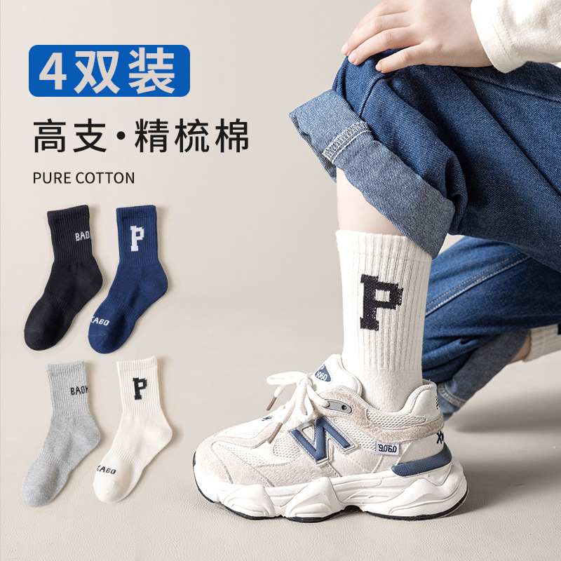2024 어린이 양말 단색 문자 한국 영어 봄과 가을 통기성 중반 송아지 양말 소년 소녀 스포츠 양말스토어 가기