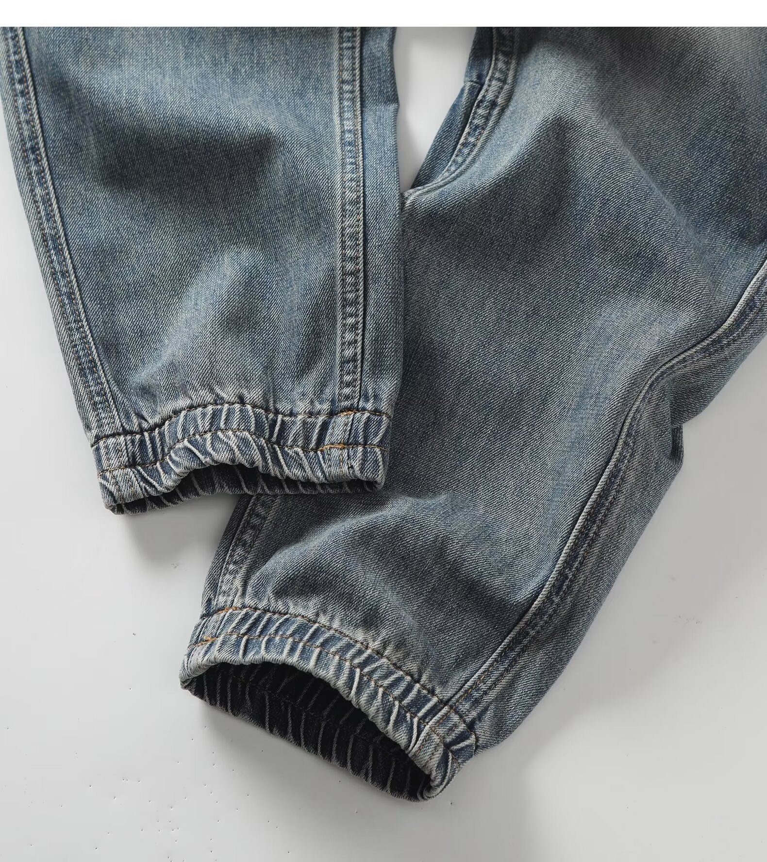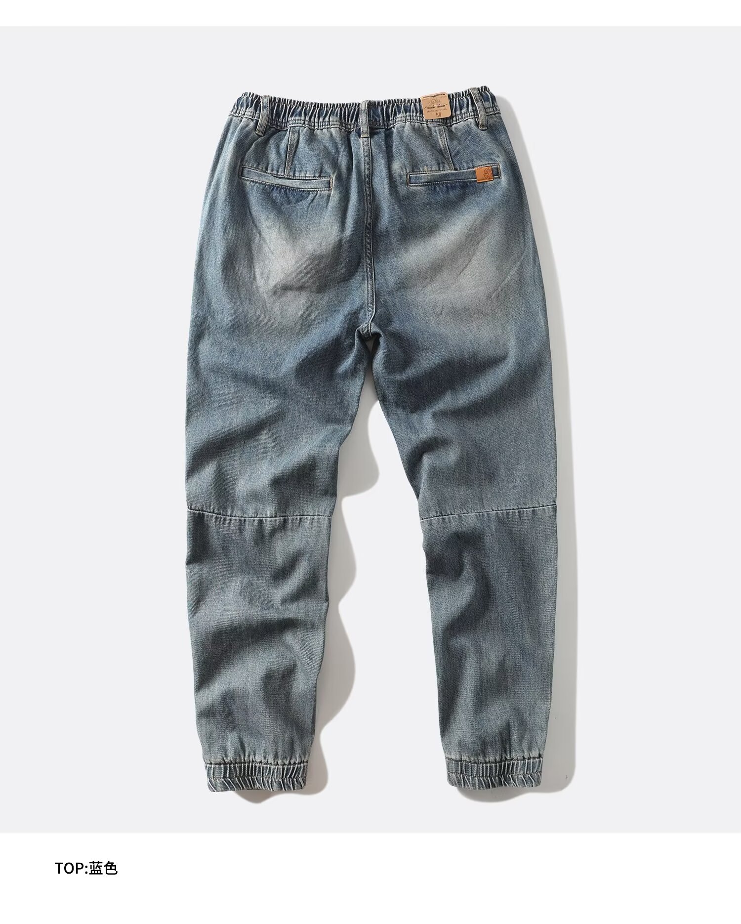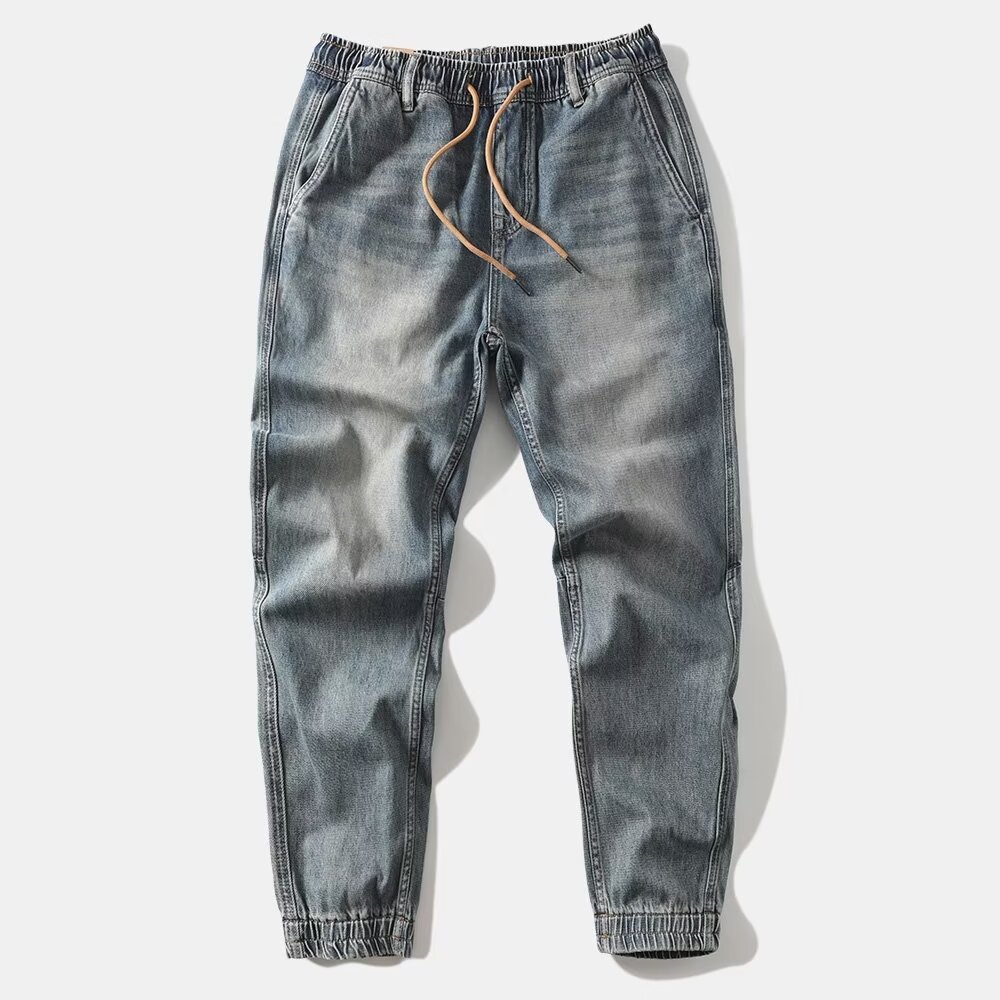 봄 새로운 향수를 불러 일으키는 모래 세척 블루 트렌디 한 복고풍 순수한면 발목 묶은 청바지 남성 캐주얼 바지 하렘 바지 남성스토어 가기
