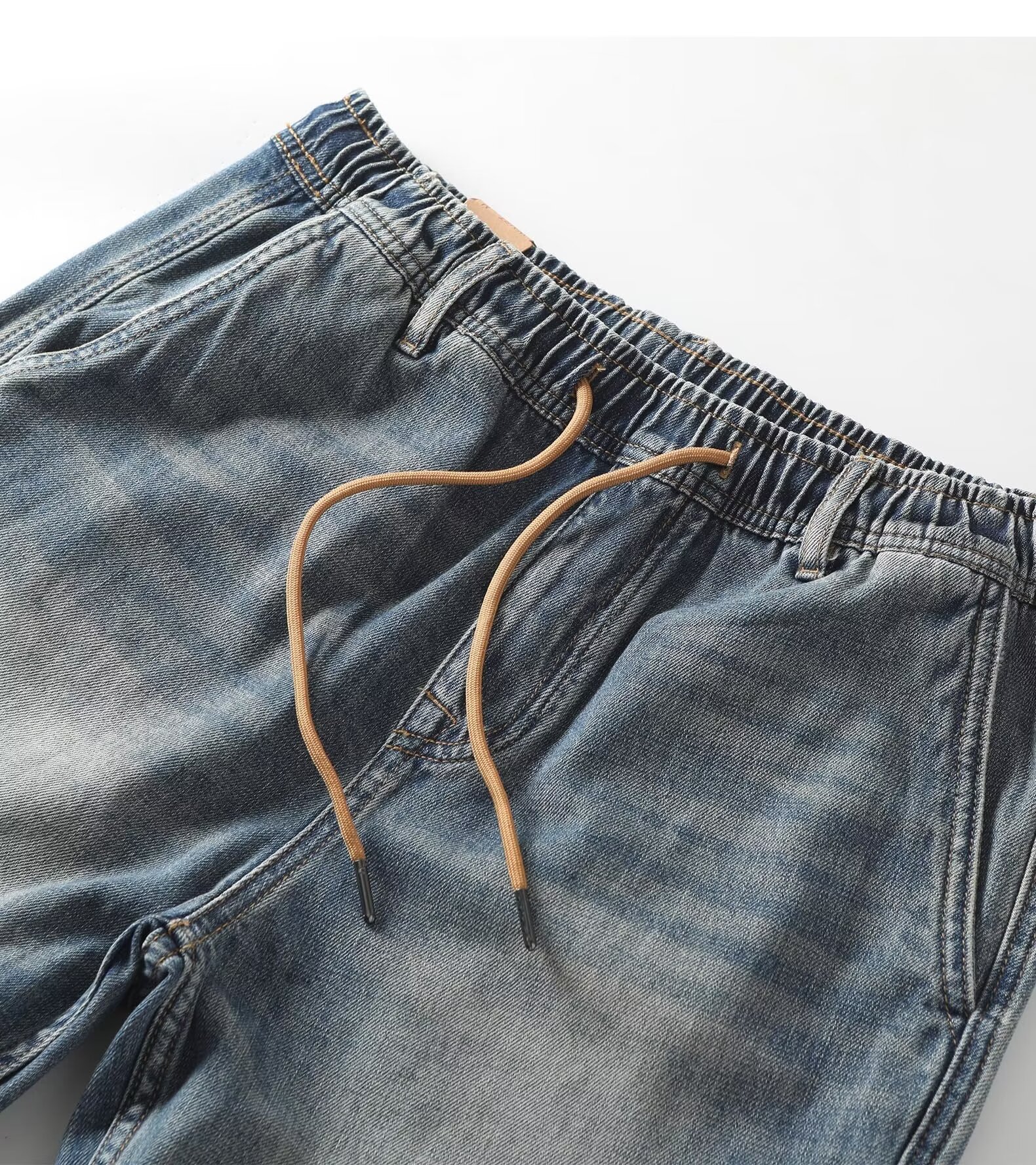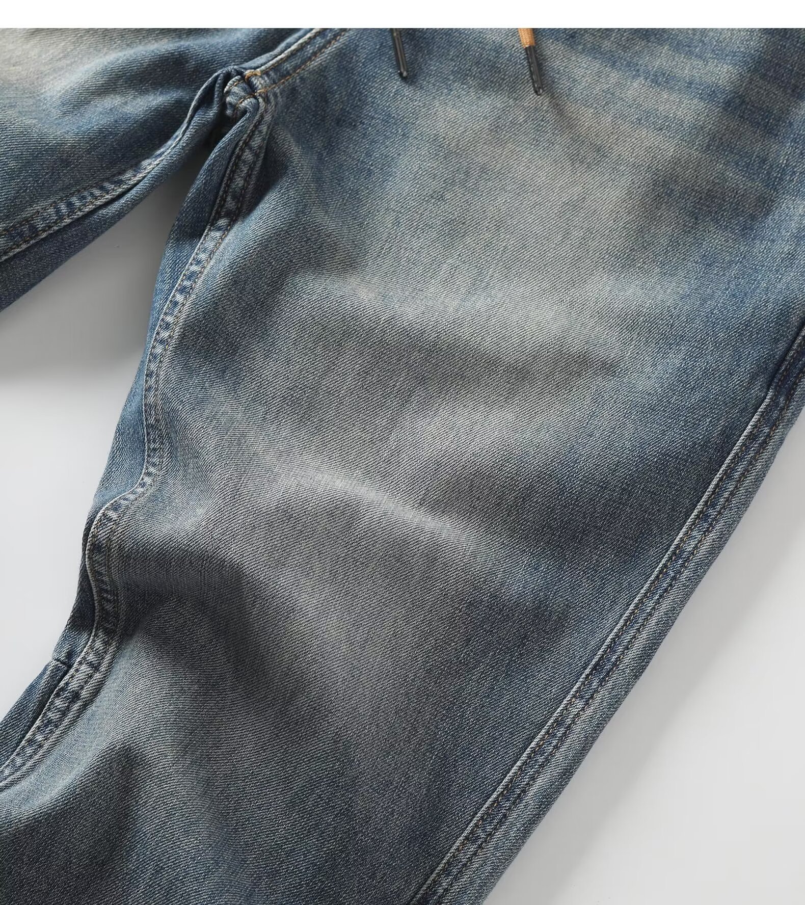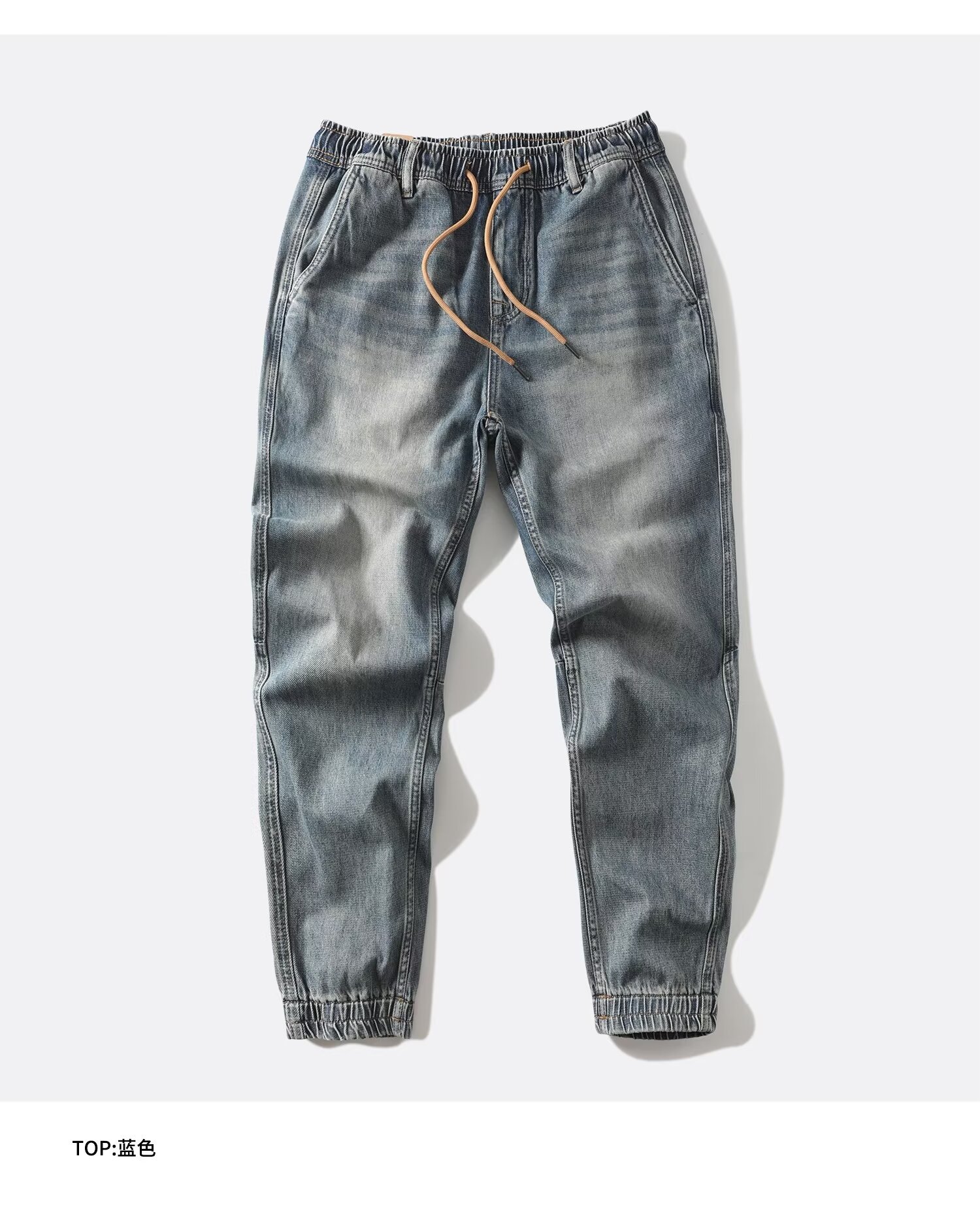 봄 새로운 향수를 불러 일으키는 모래 세척 블루 트렌디 한 복고풍 순수한면 발목 묶은 청바지 남성 캐주얼 바지 하렘 바지 남성