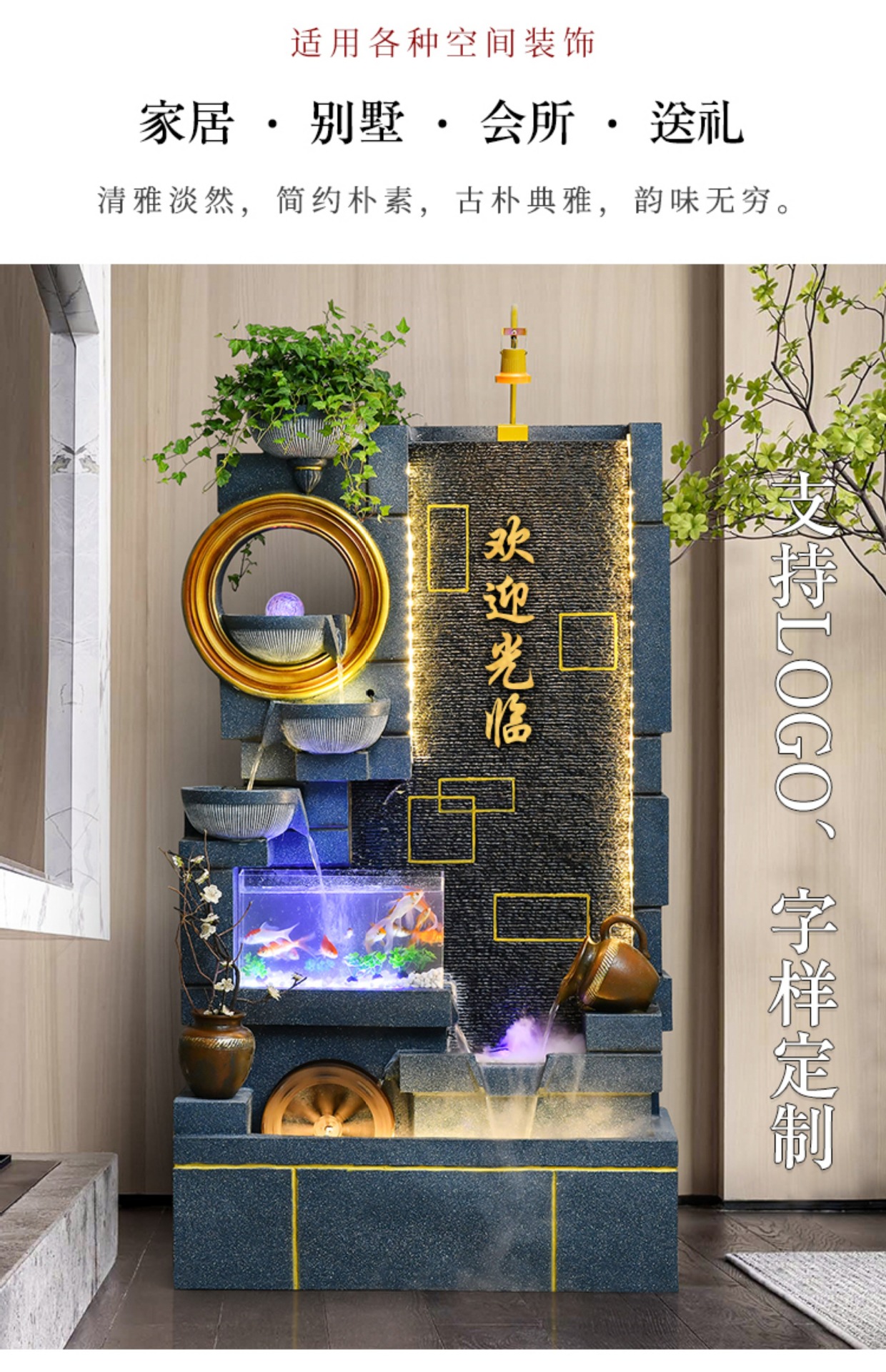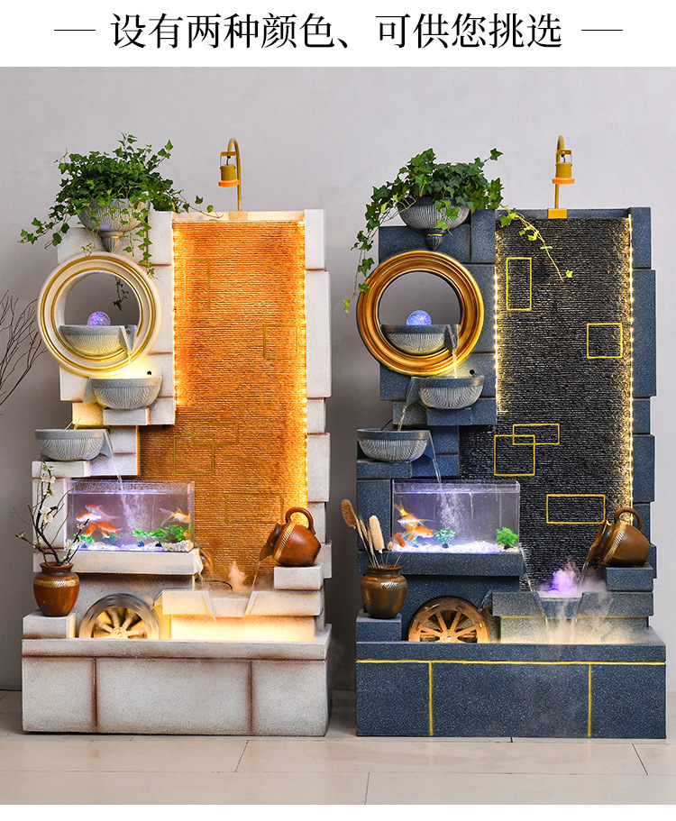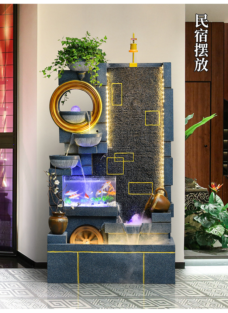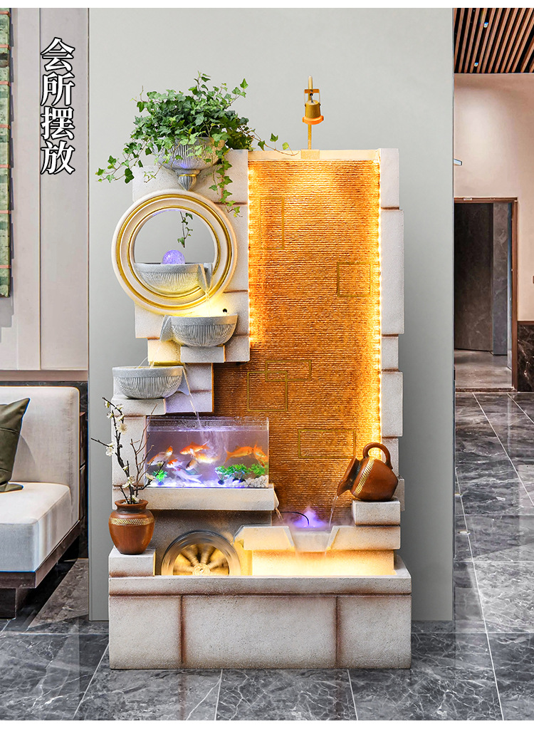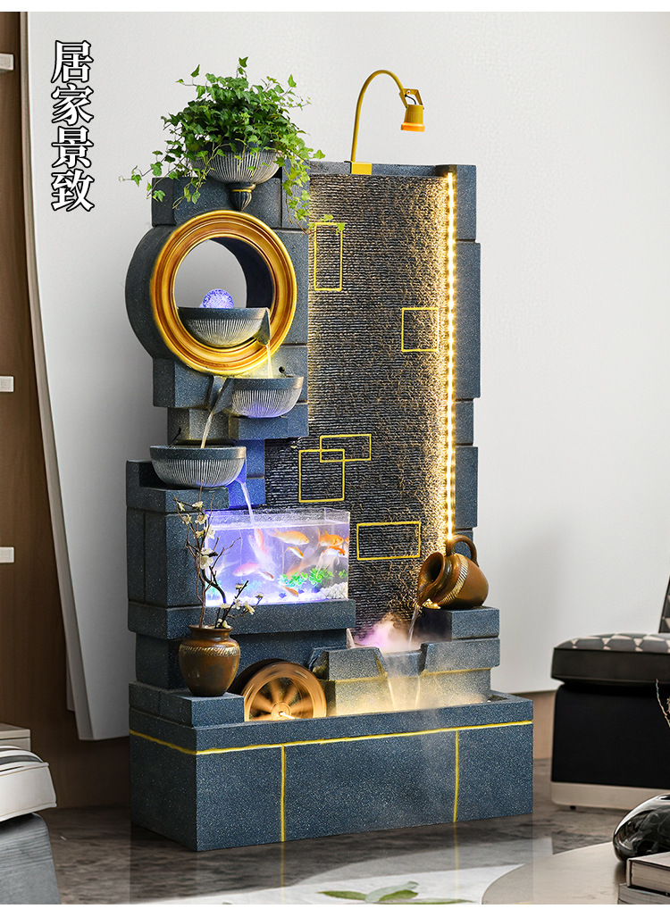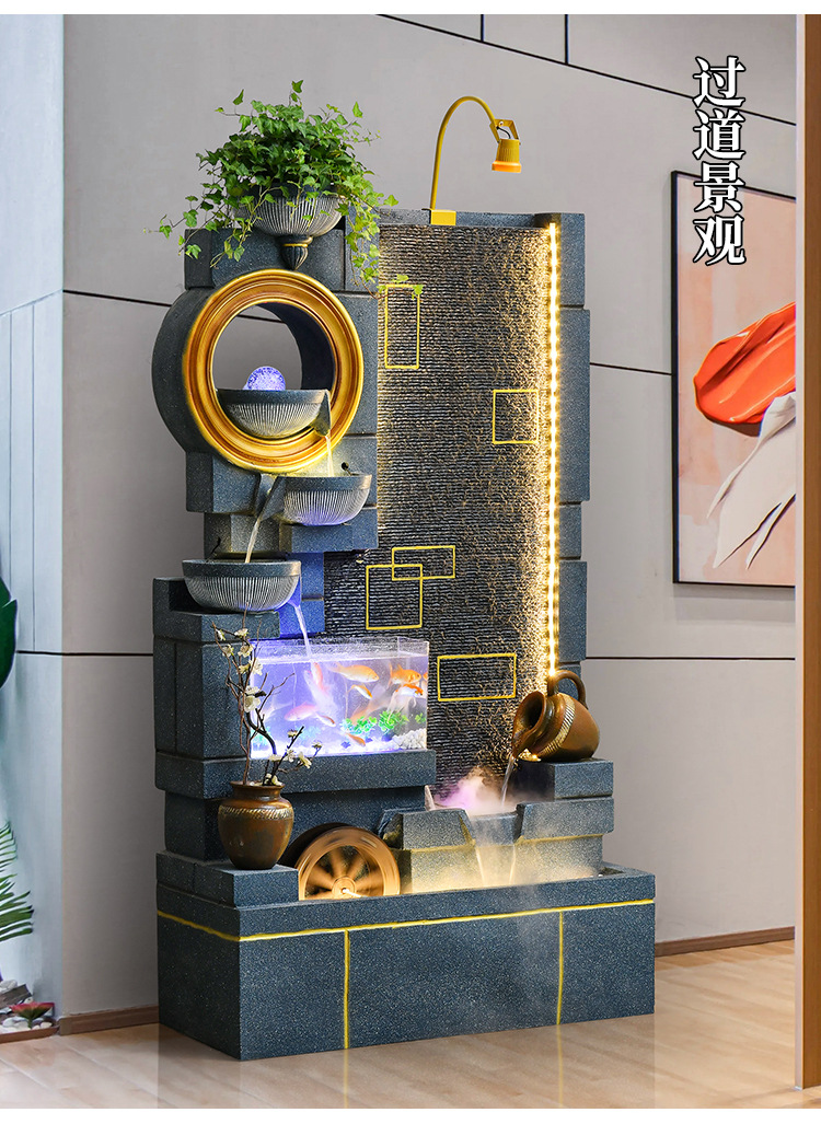 간단한 유럽 스타일의 물 커튼 벽 물 분수 실내 및 야외 거실 TV 캐비닛 소파 바닥 어항 장식