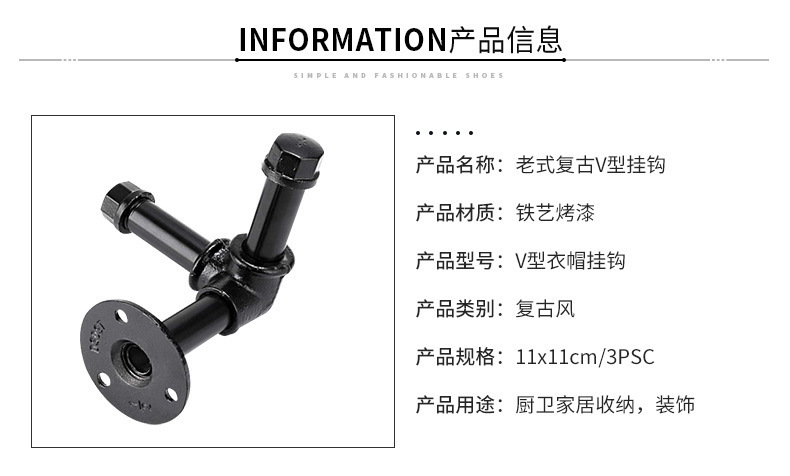 산업 스타일 금속 벽 매달린 쇼핑몰 홈 벽 V 자형 의류 코트 후크 창조적 인 펀칭 DIY 수도관 보관 랙