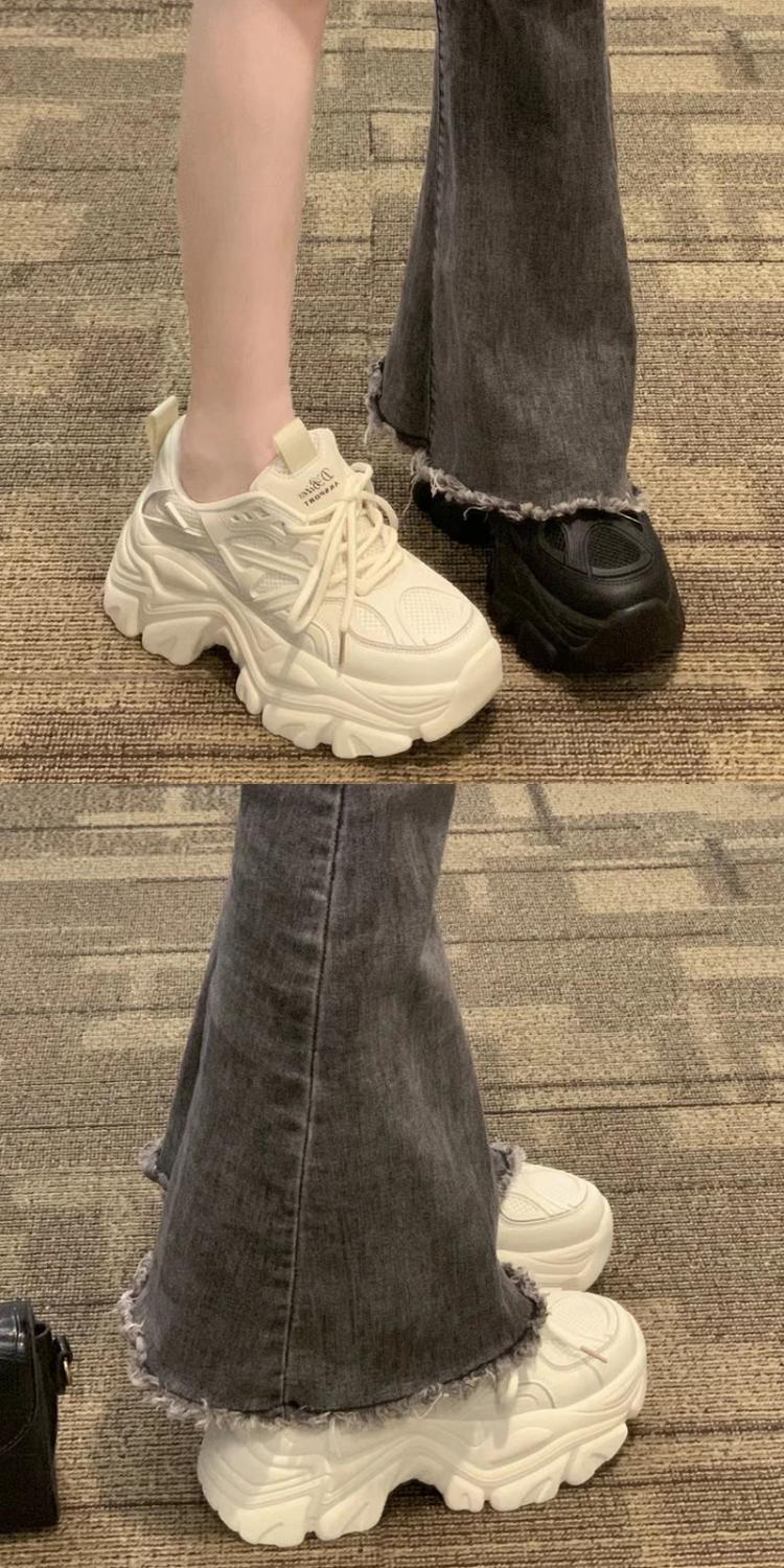 여성을위한 아빠 신발 증가 2024 봄 새로운 올 매치 작은 키 두꺼운 바닥 튀김 거리 운동화 여성