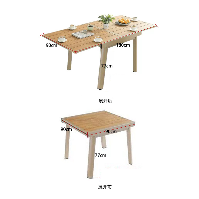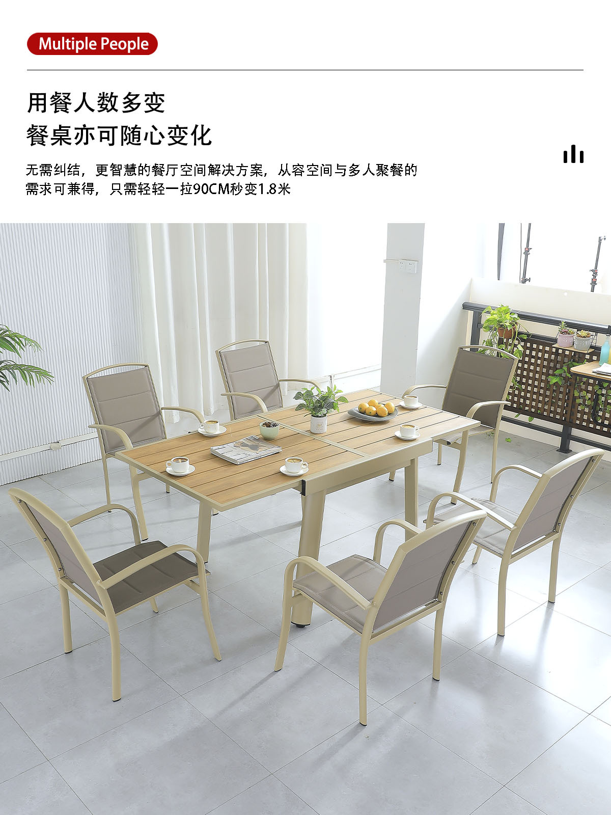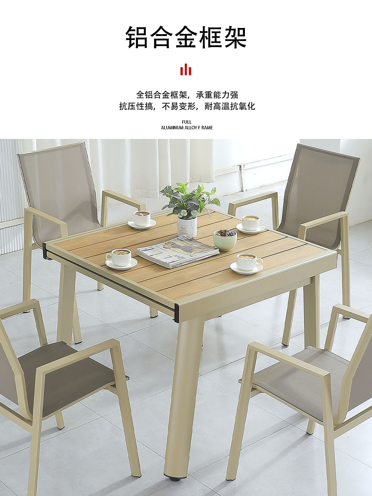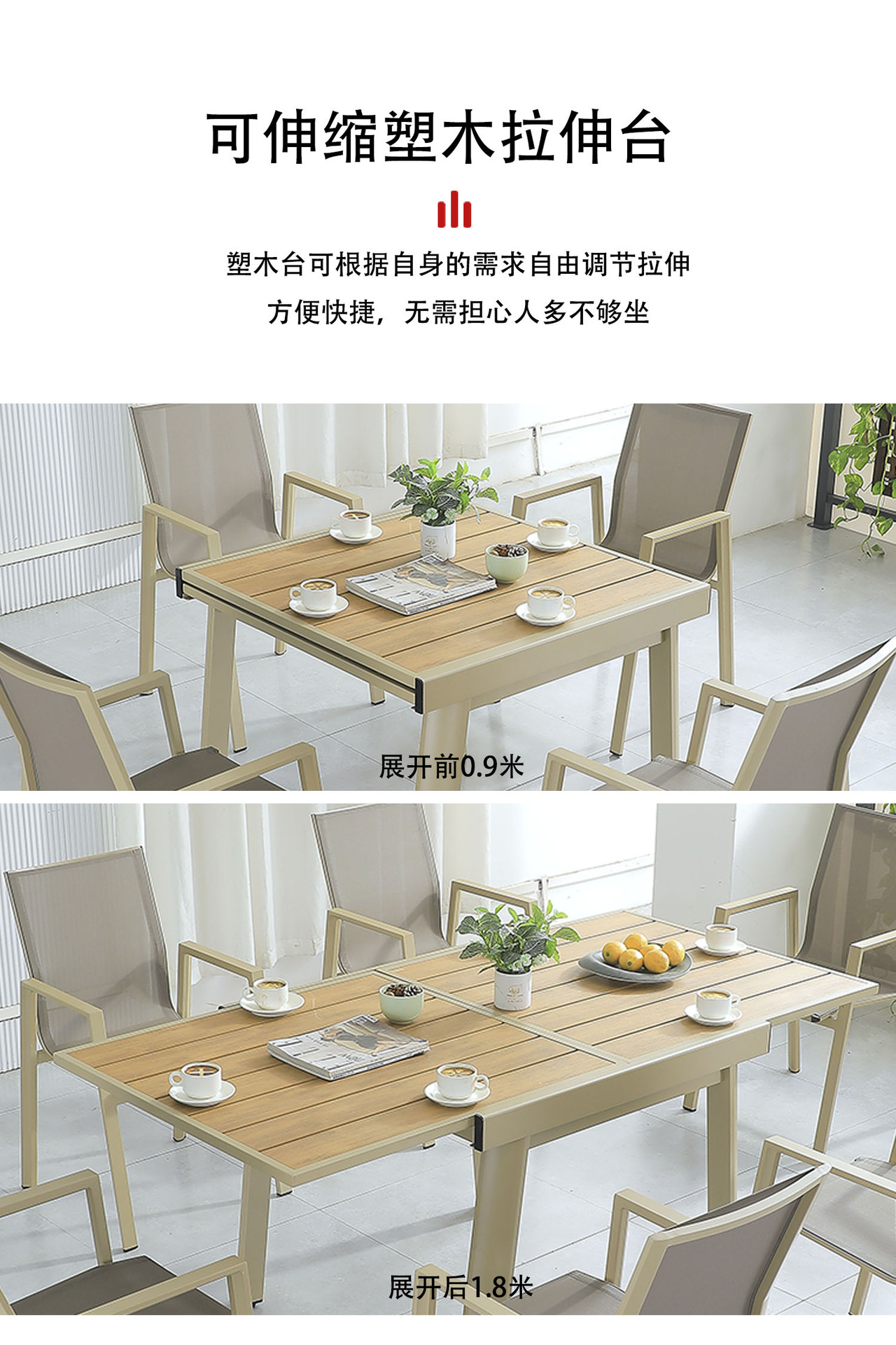 야외 테이블과 의자 안뜰 플라스틱 나무 빛 고급 선샤인 룸 레저 인터넷 유명 야외 야외 방수 자외선 차단제 플라스틱 나무 스트레치 테이블
