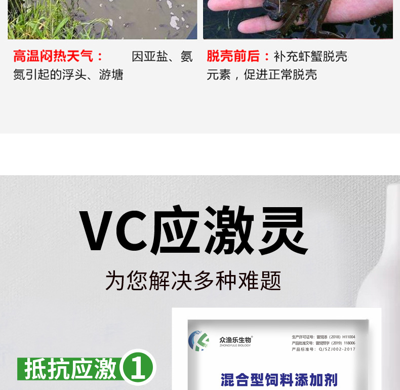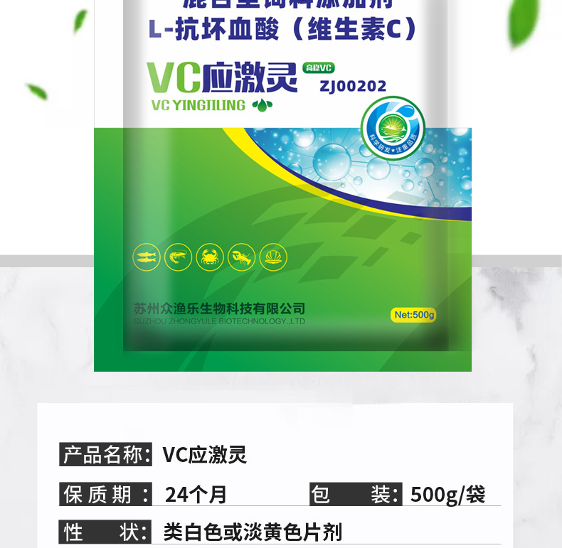 VC 잉링 수생 번식 물고기, 새우 및 게 루어 음식 안티 스트레스 높은 안정성 비타민 수생 전기 분해 다차원 스트레스 킹