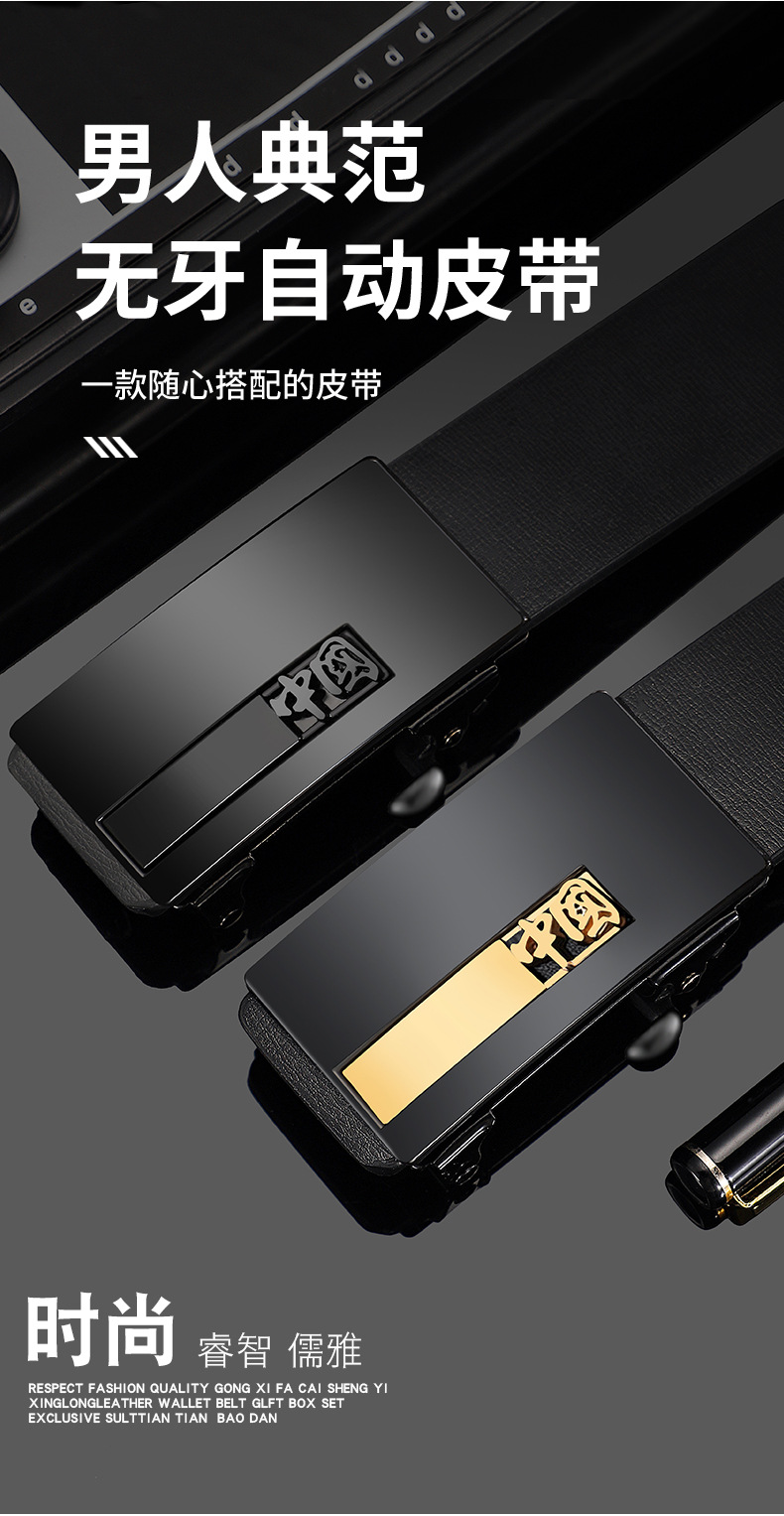 가죽 벨트 남성 도매 공장 사업 이빨없는 자동 버클 정품 가죽 질감 남성 벨트 남성 바지 벨트 캐주얼스토어 가기