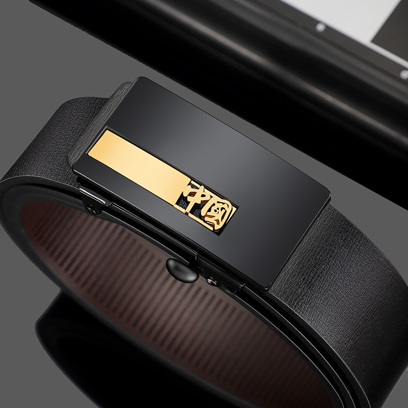 가죽 벨트 남성 도매 공장 사업 이빨없는 자동 버클 정품 가죽 질감 남성 벨트 남성 바지 벨트 캐주얼
