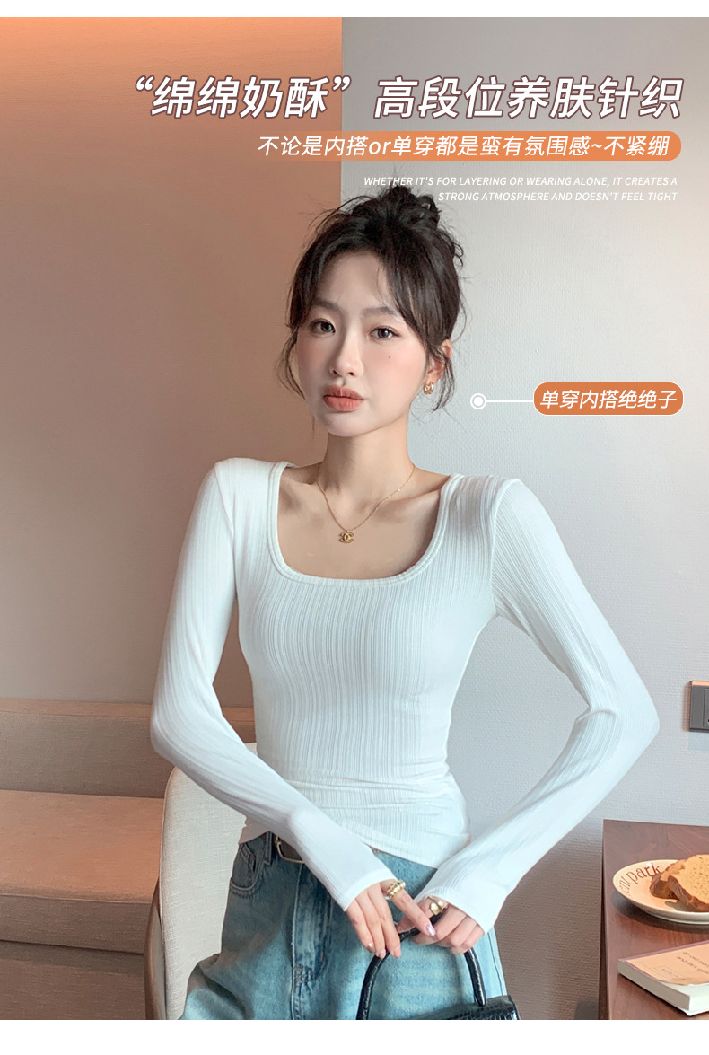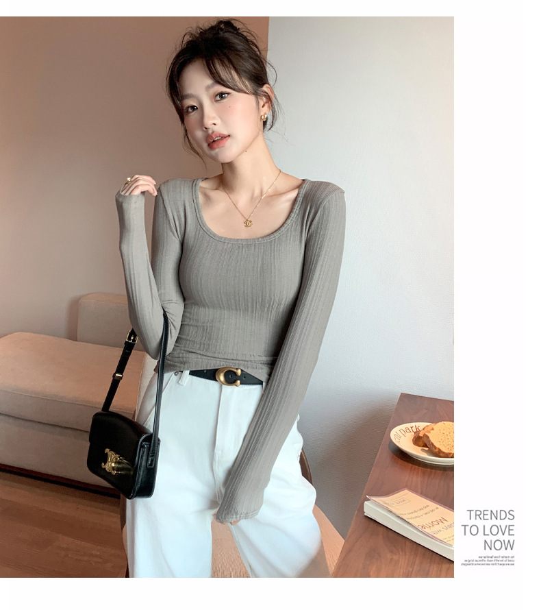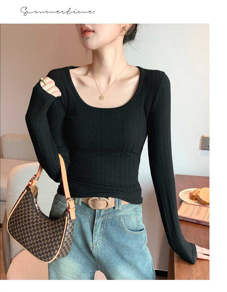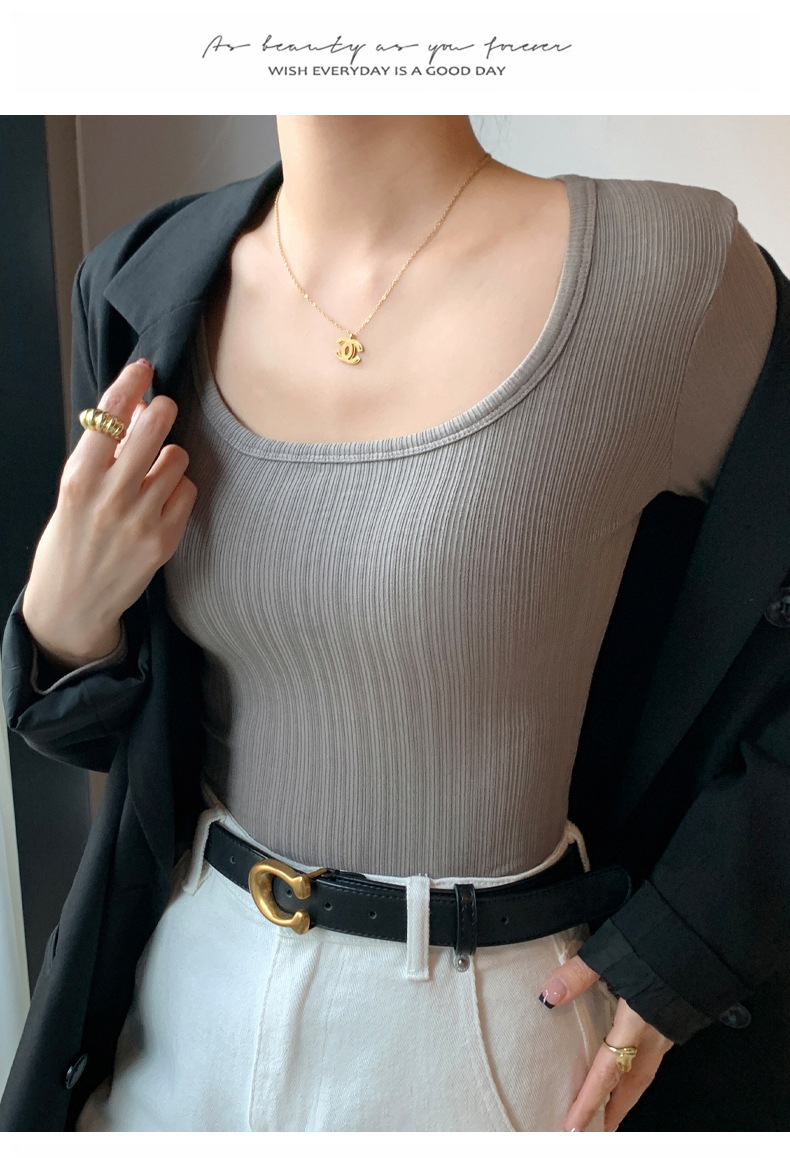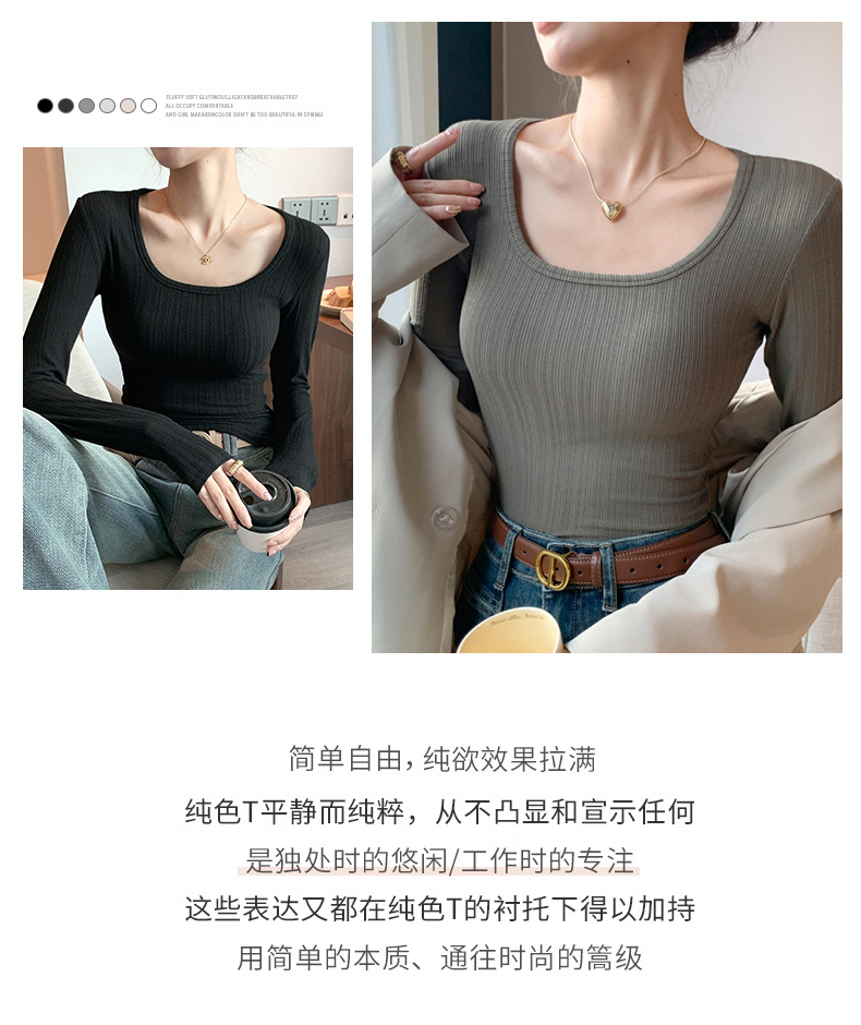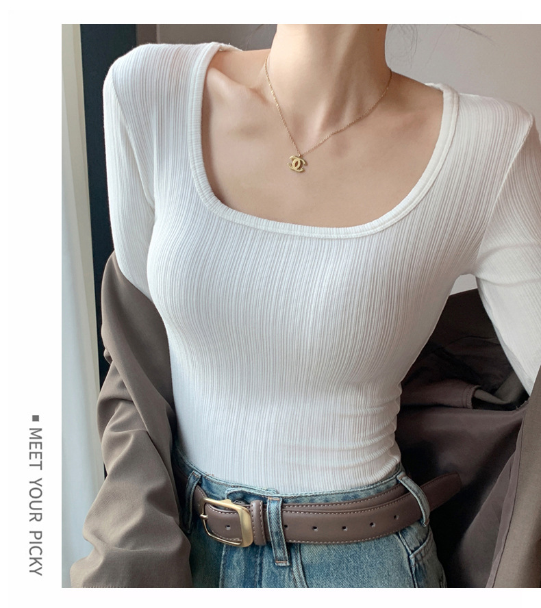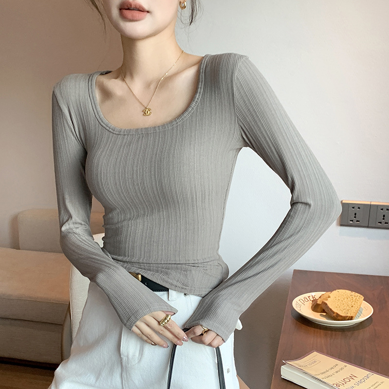 H235 새로운 대형 U 넥 티셔츠 여성 바닥 셔츠 티셔츠 긴팔 탑 로우 넥 내부 슬림 여성 봄 스타일