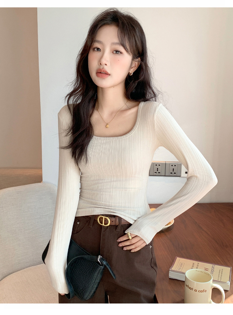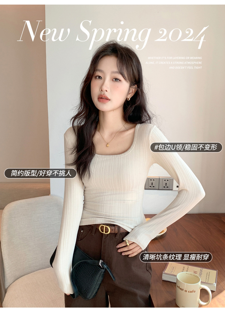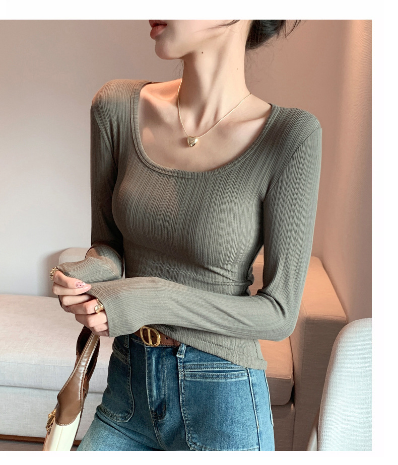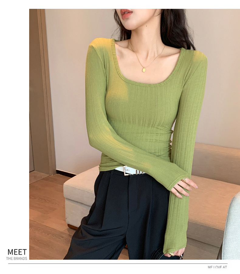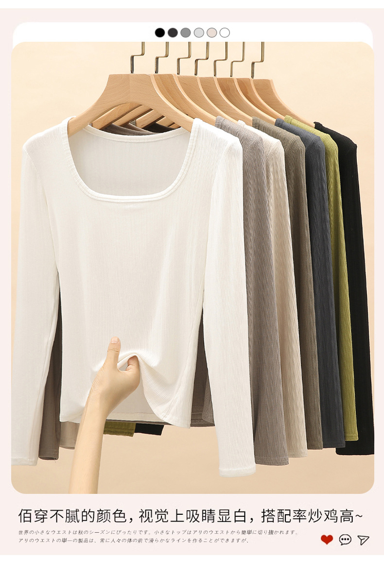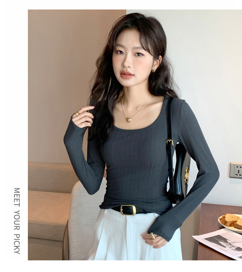 H235 새로운 대형 U 넥 티셔츠 여성 바닥 셔츠 티셔츠 긴팔 탑 로우 넥 내부 슬림 여성 봄 스타일