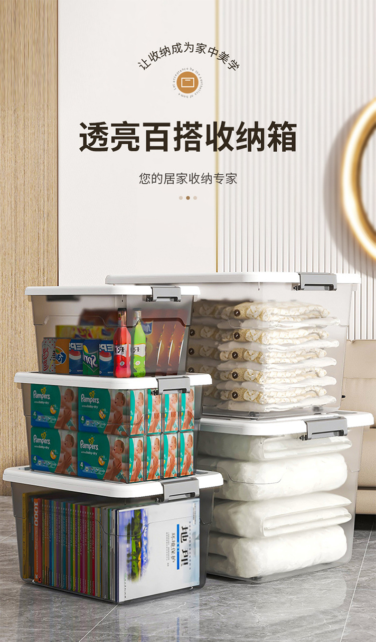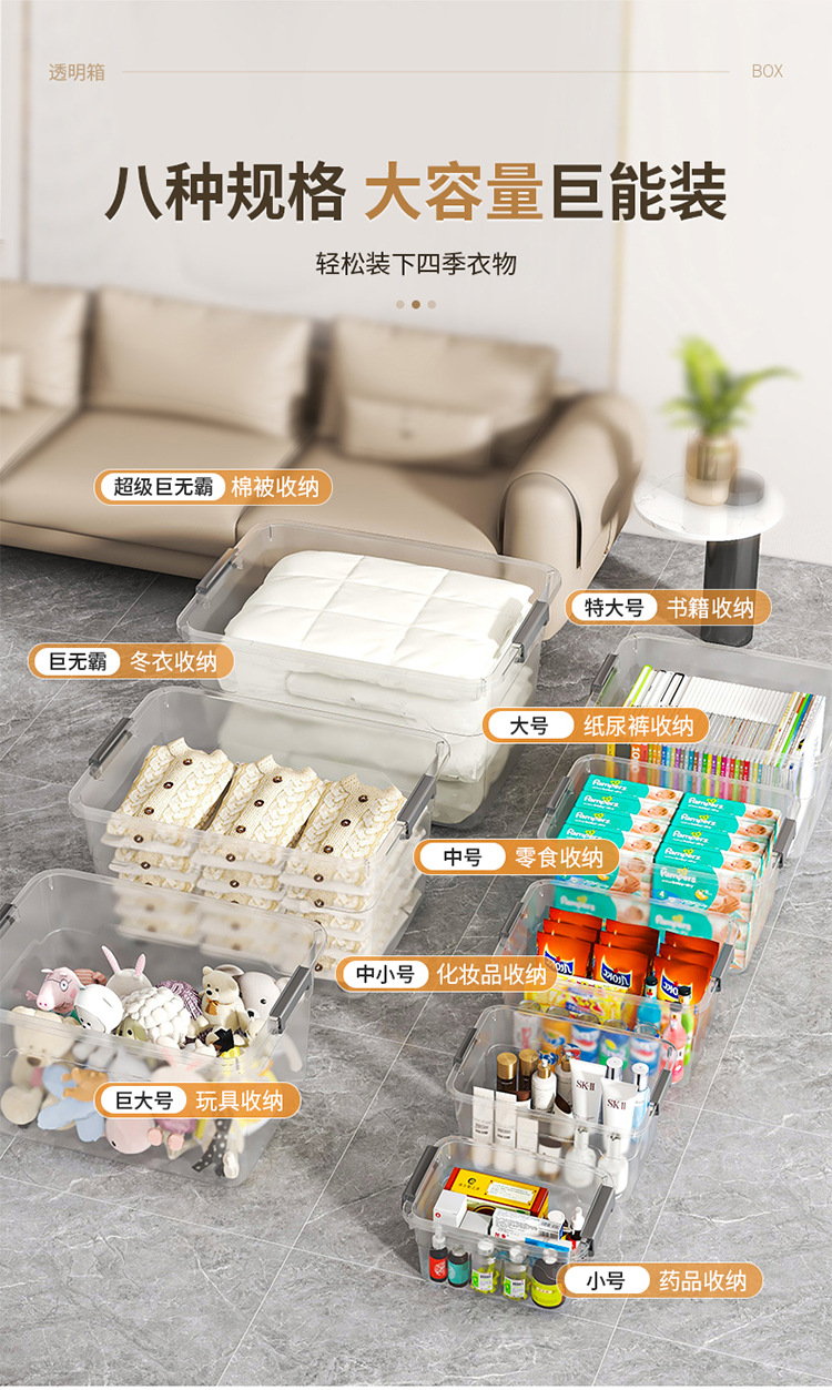 두꺼운 투명 보관 상자 가정용 대용량 보관 상자 플라스틱 보관 상자 의류 스낵 장난감 정리 상자스토어 가기
