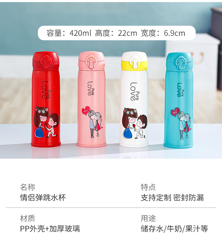 크리 에이 티브 바운스 유리 물 컵 여자 유리 물 컵 대형 용량 바운스 직접 마시는 컵 휴대용 선물 유리 물 컵스토어 가기
