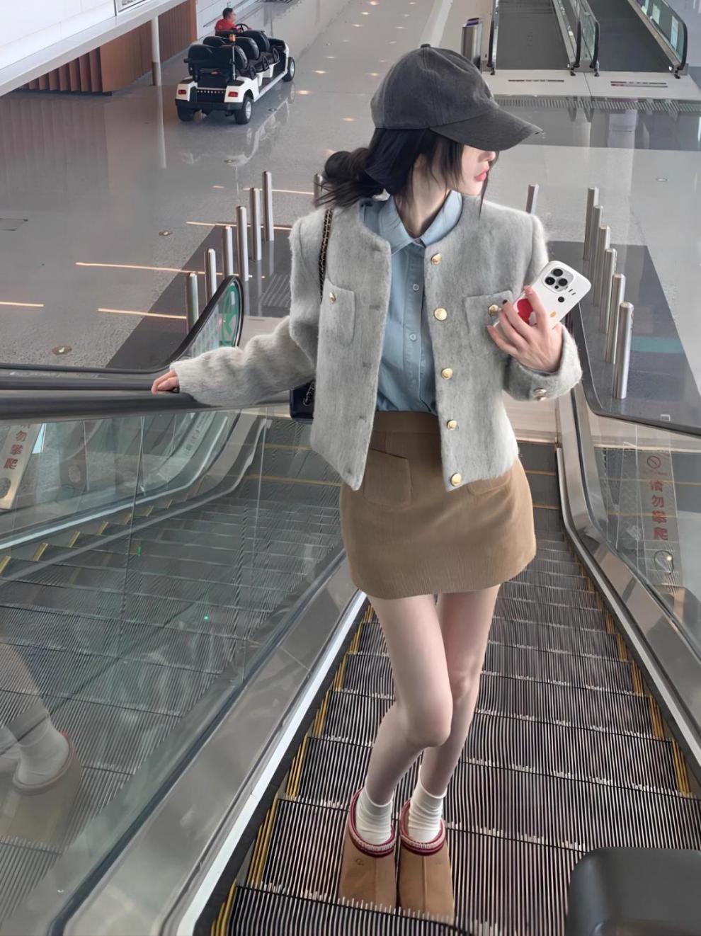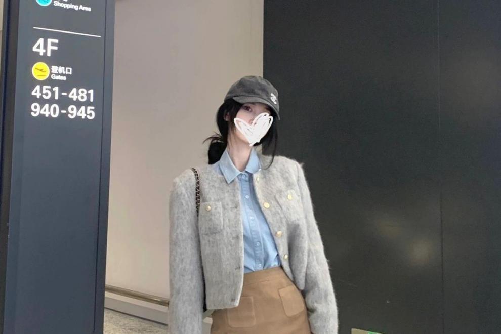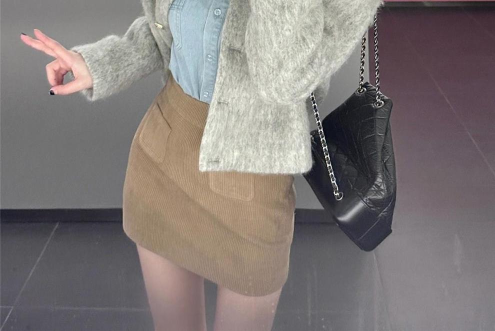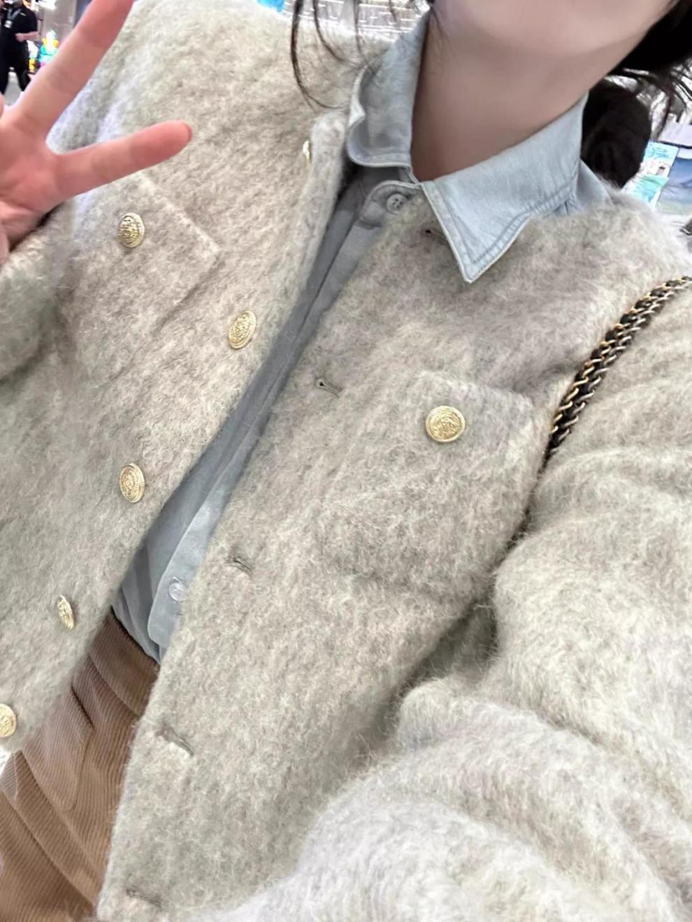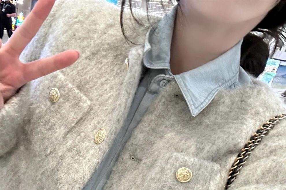 3 피스 여성 2023 가을과 겨울 새로운 우아한 샤넬 스타일 짧은 울 재킷 데님 긴팔 셔츠 스커트스토어 가기