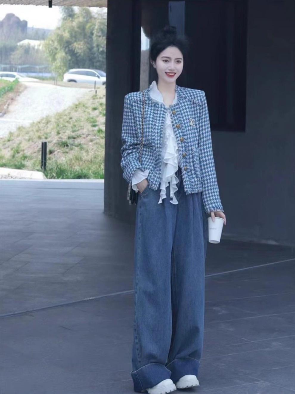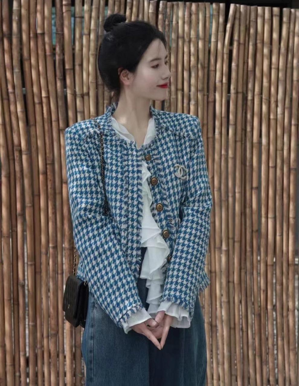 샤넬 스타일 코트 여성 2023 새로운 가을과 겨울 스타일 레트로 홍콩 스타일 작은 하이 엔드 하운드 투스 탑스토어 가기