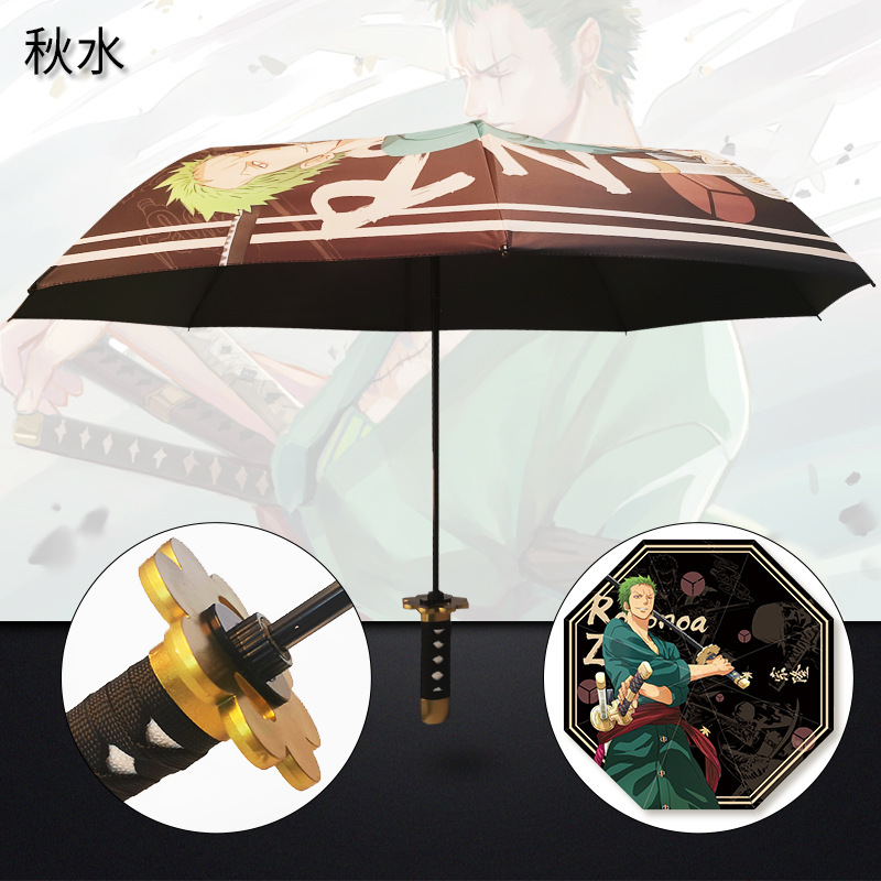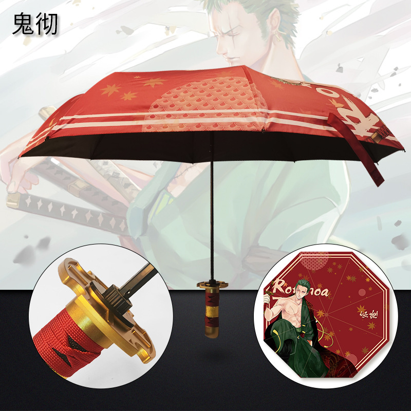 칼 우산 애니메이션 3 배 우산 사우론 맑고 비가 오는 이중 사용 우산 접이식 태양 보호 자외선 보호 태양 그늘 도매