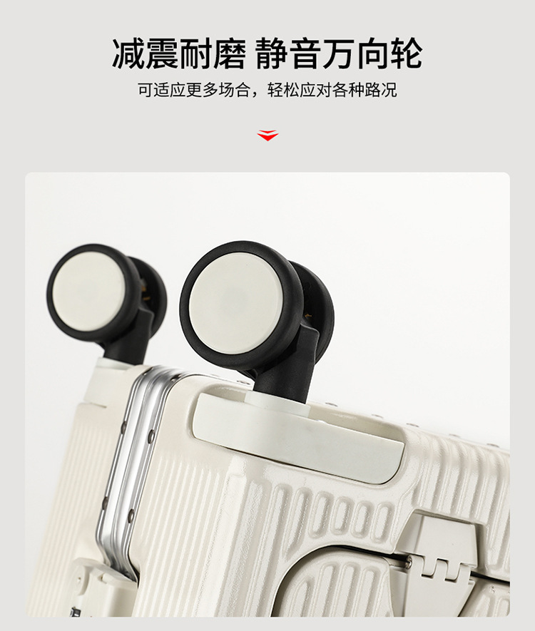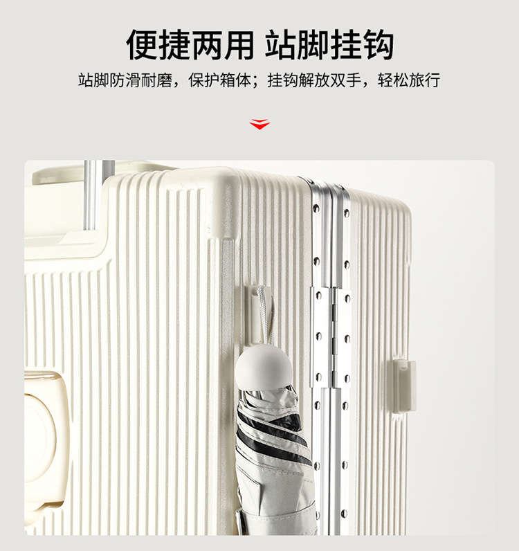 맞춤형 전면 개방 수하물 케이스 측면 버클 전면 개방 뚜껑 풀로드 알루미늄 프레임 컵 홀더로 대용량 USB 충전스토어 가기
