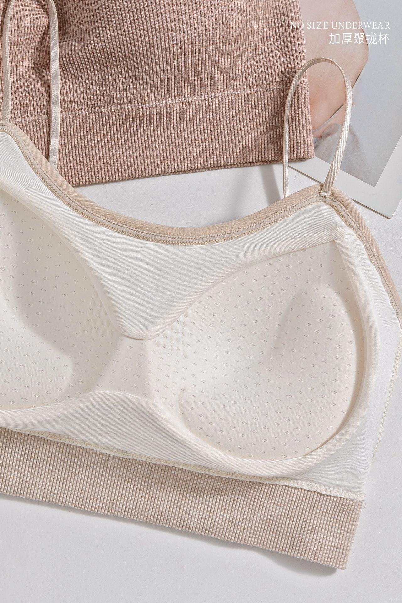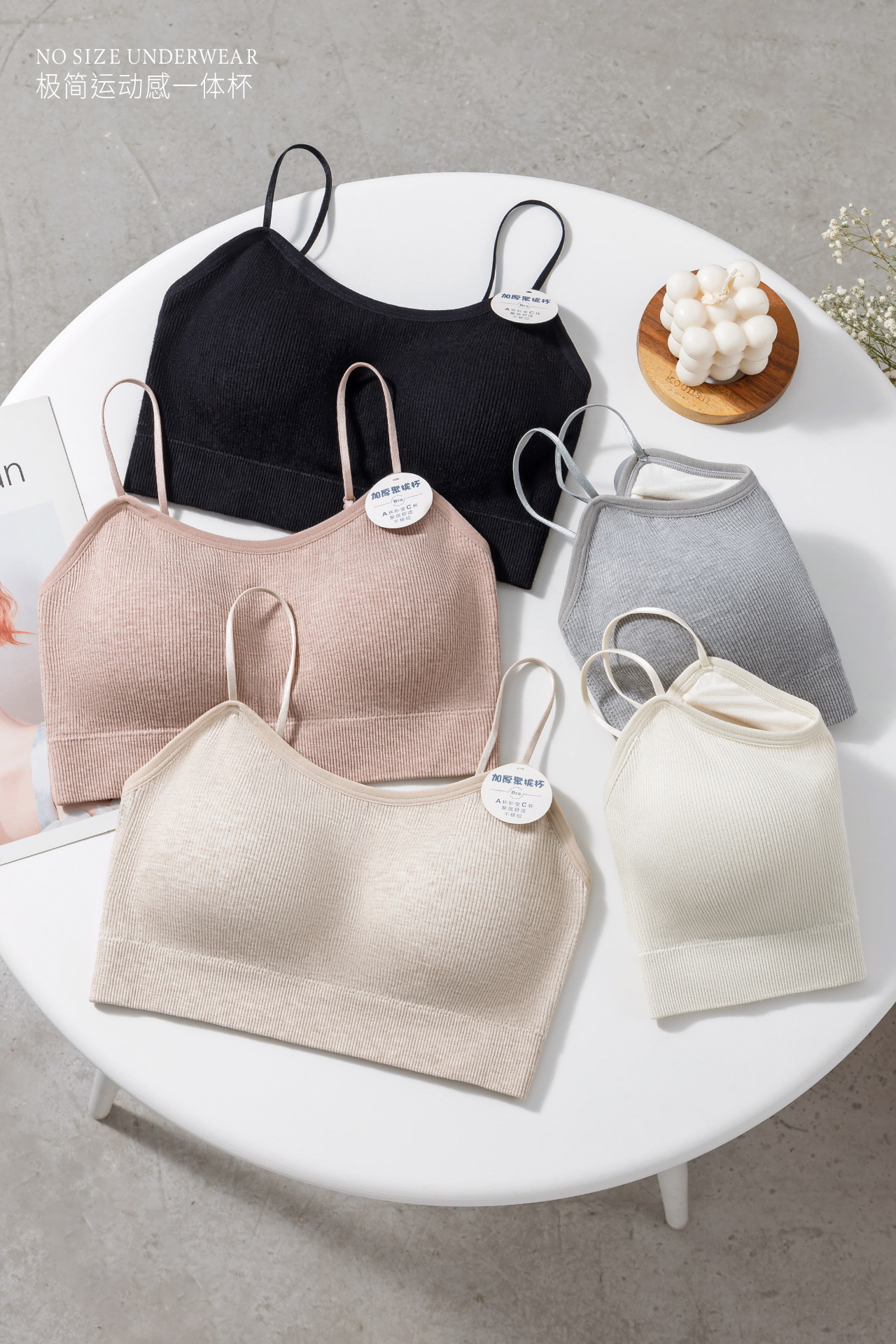 작은 가슴이 두껍게 된 패드가 고정 컵 라텍스 U 자형 등이없는 브래지어 여성의 무선 스트랩 얇은 스트랩 뷰티 백 튜브 탑