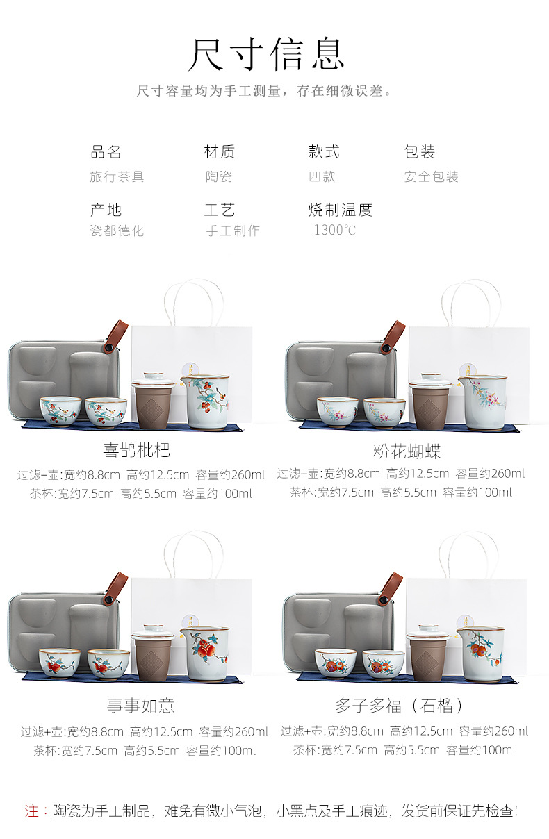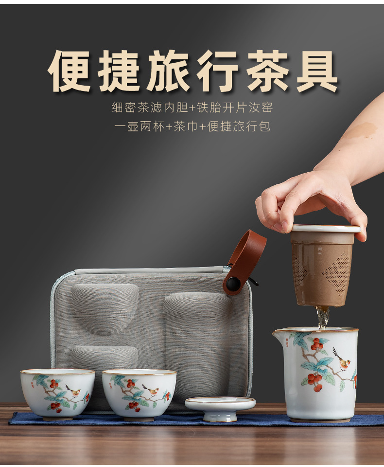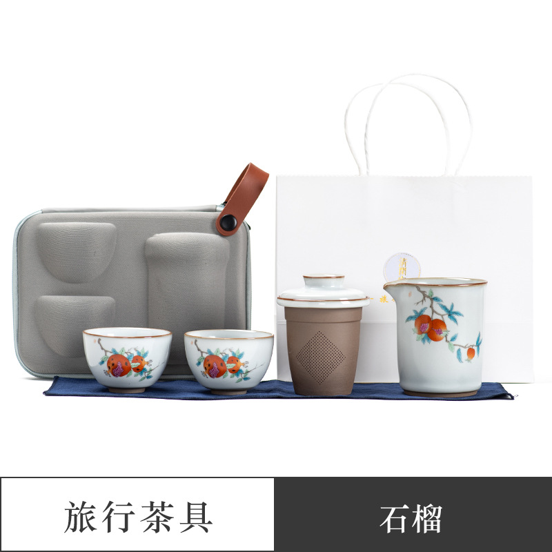 • 석류(Duozi Duofu) Ru Kiln 여행용 차 세트
