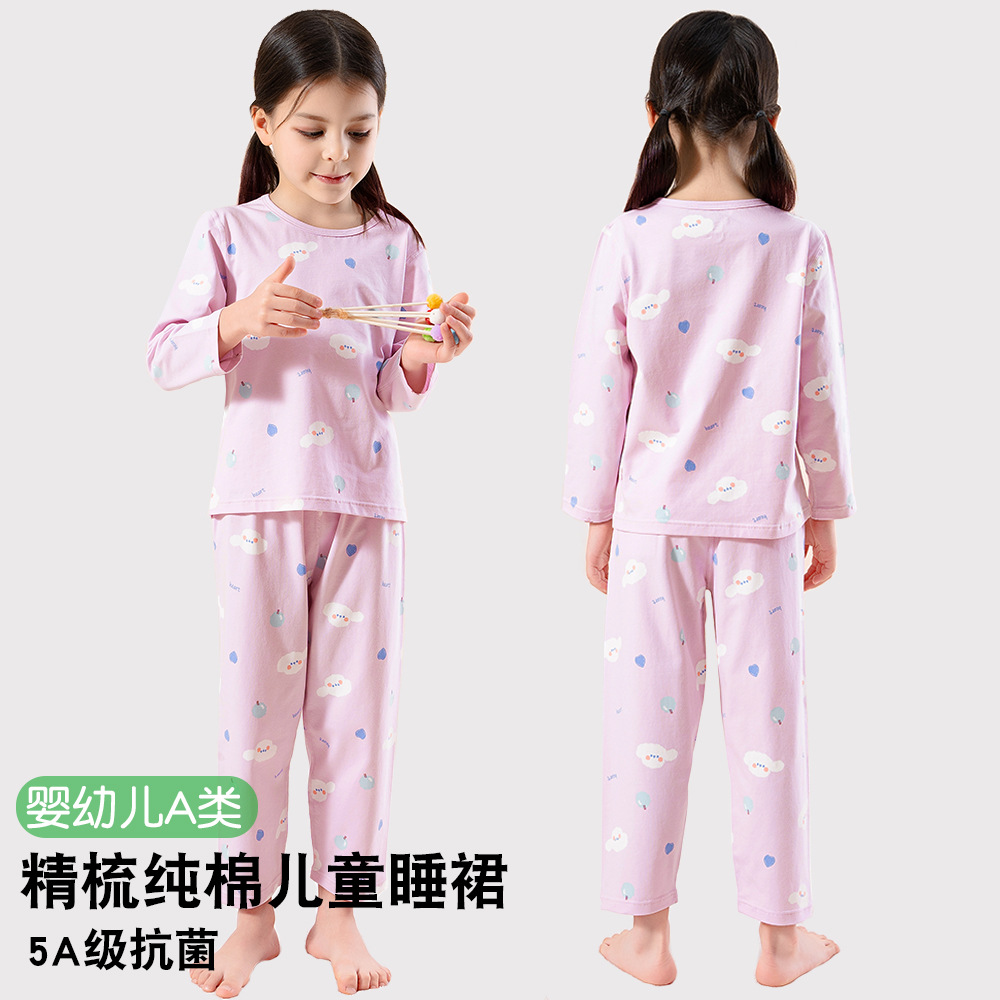 봄과 가을 얇은 어린이 속옷 순면 뼈없는 파자마 한국식 소녀 가을 옷 긴 바지 아기 홈웨어 세트