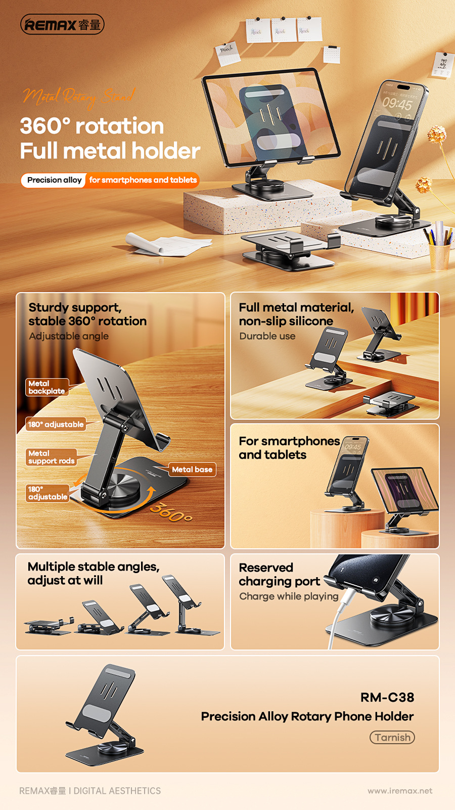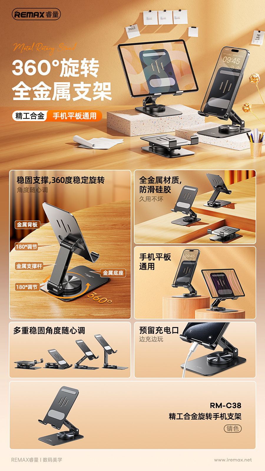 REMAX Ruiliang Seiko 합금 회전 휴대 전화 브래킷 접이식 휴대용 게으른 브래킷 데스크탑 휴대 전화 브래킷