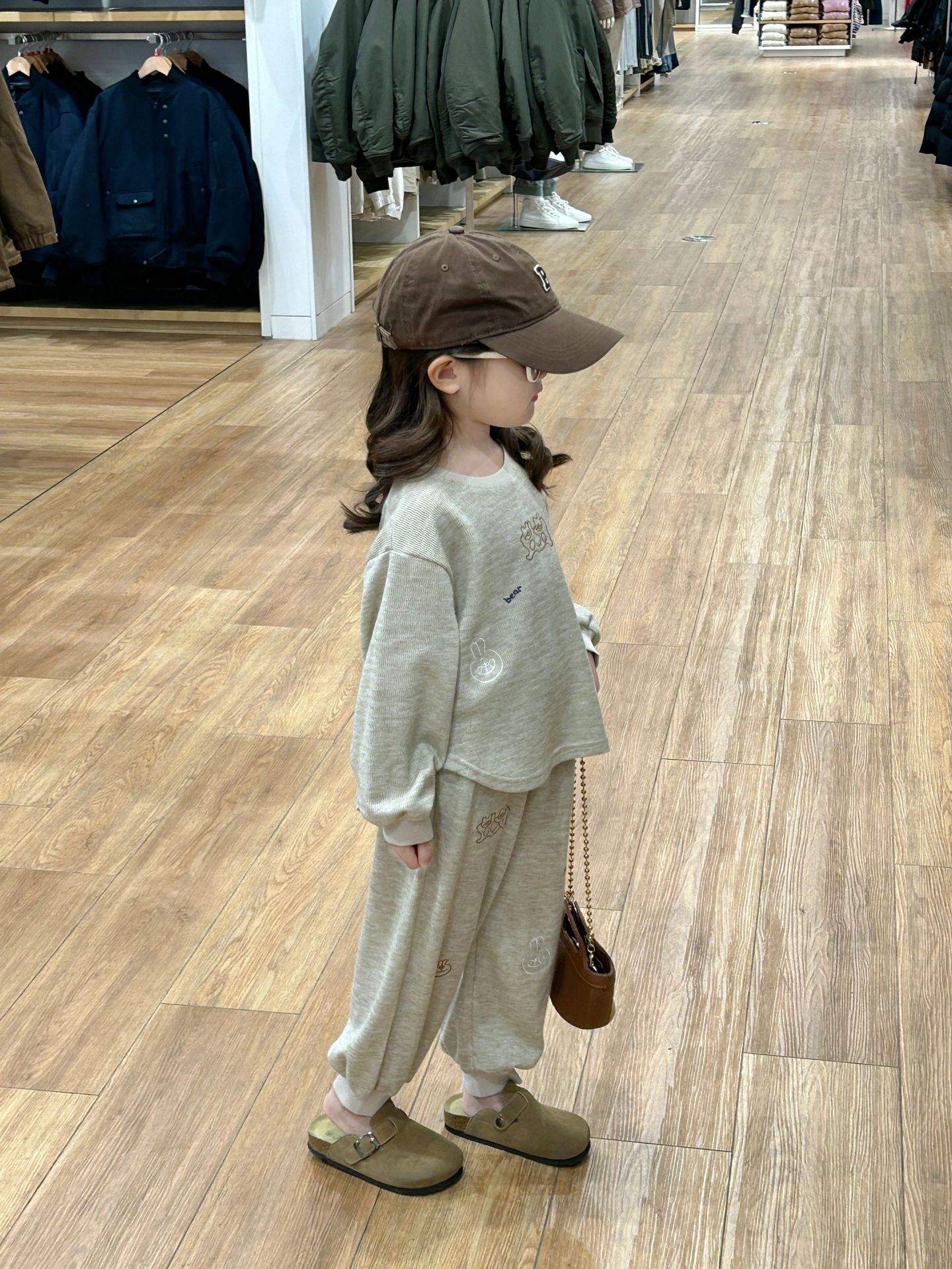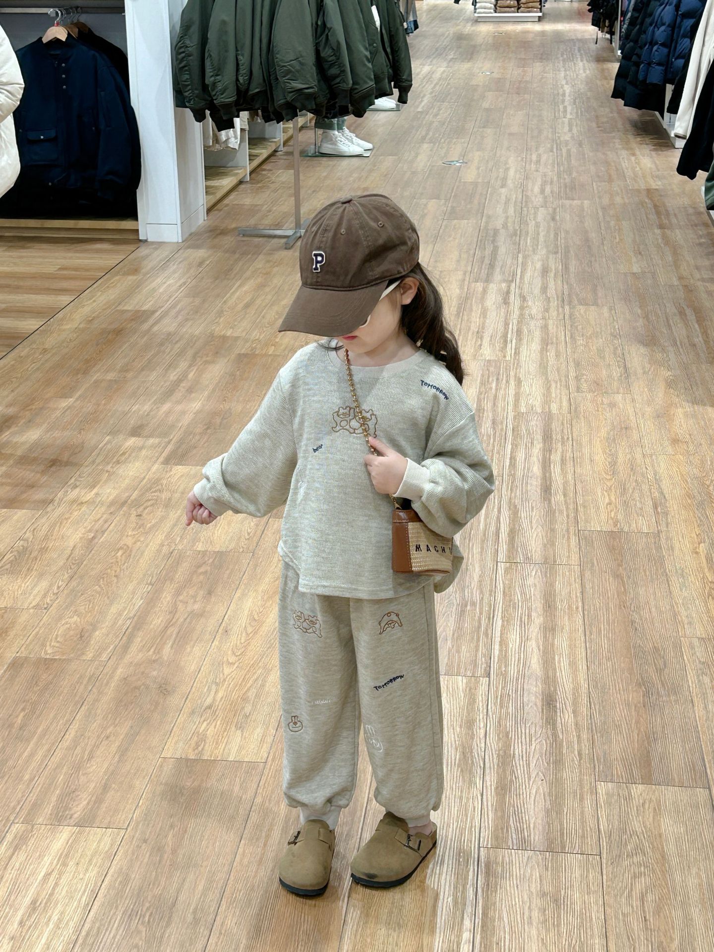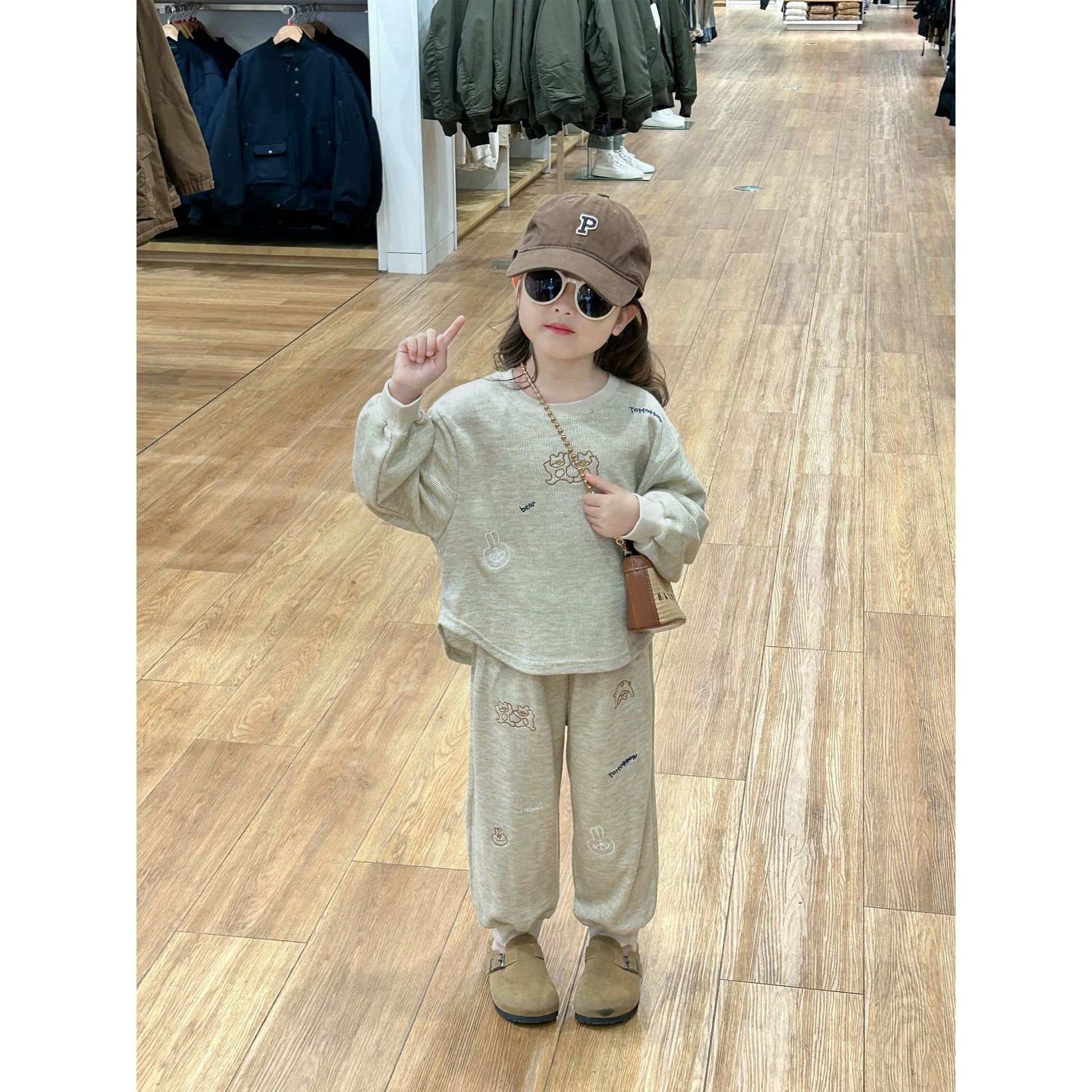 소녀의 봄 의류 세트 2024 새로운 트렌디 한 어린이 스포츠 스웨터 투피스 세트 세련된 서양식스토어 가기