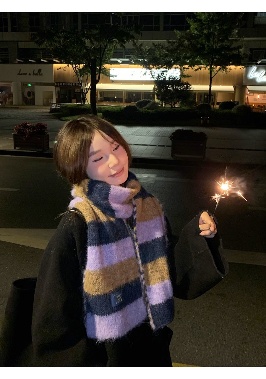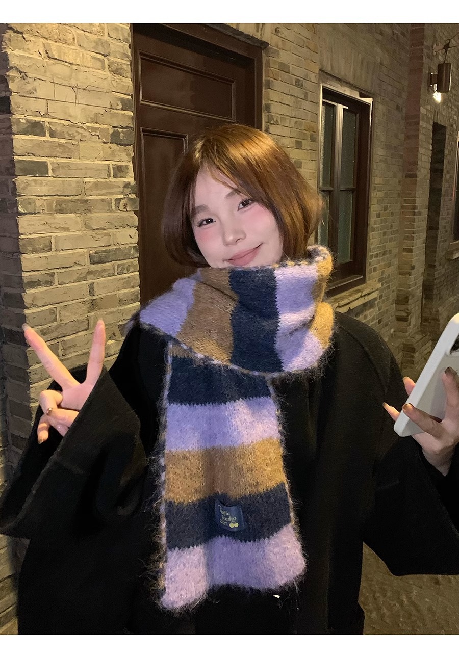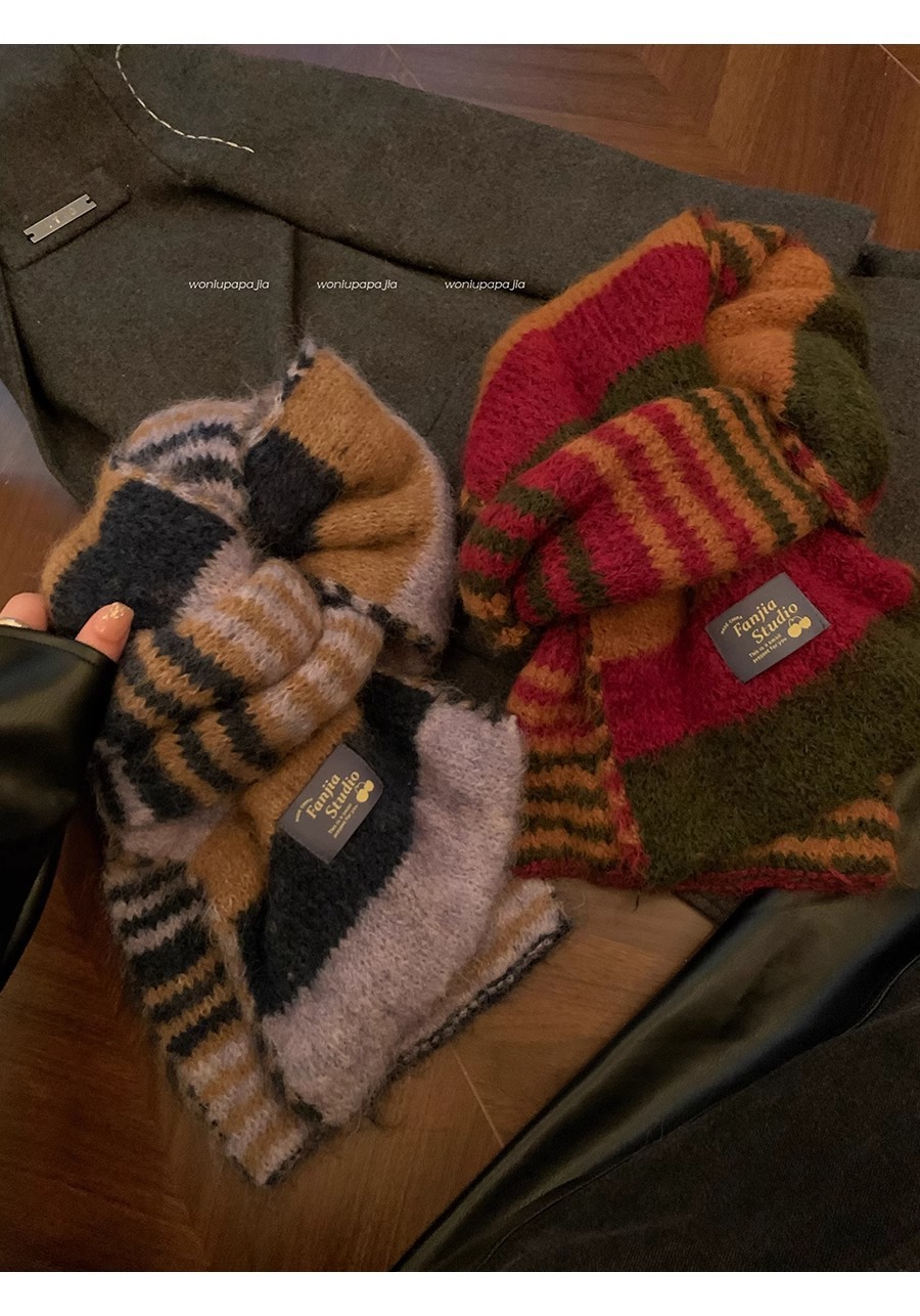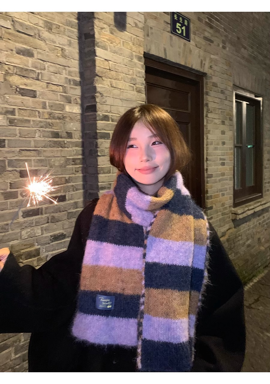 2024 겨울 새로운 여성 도파민 대비 색 스카프 따뜻한 양모 혼합 줄무늬 복고풍 다목적 두꺼운 목도리스토어 가기