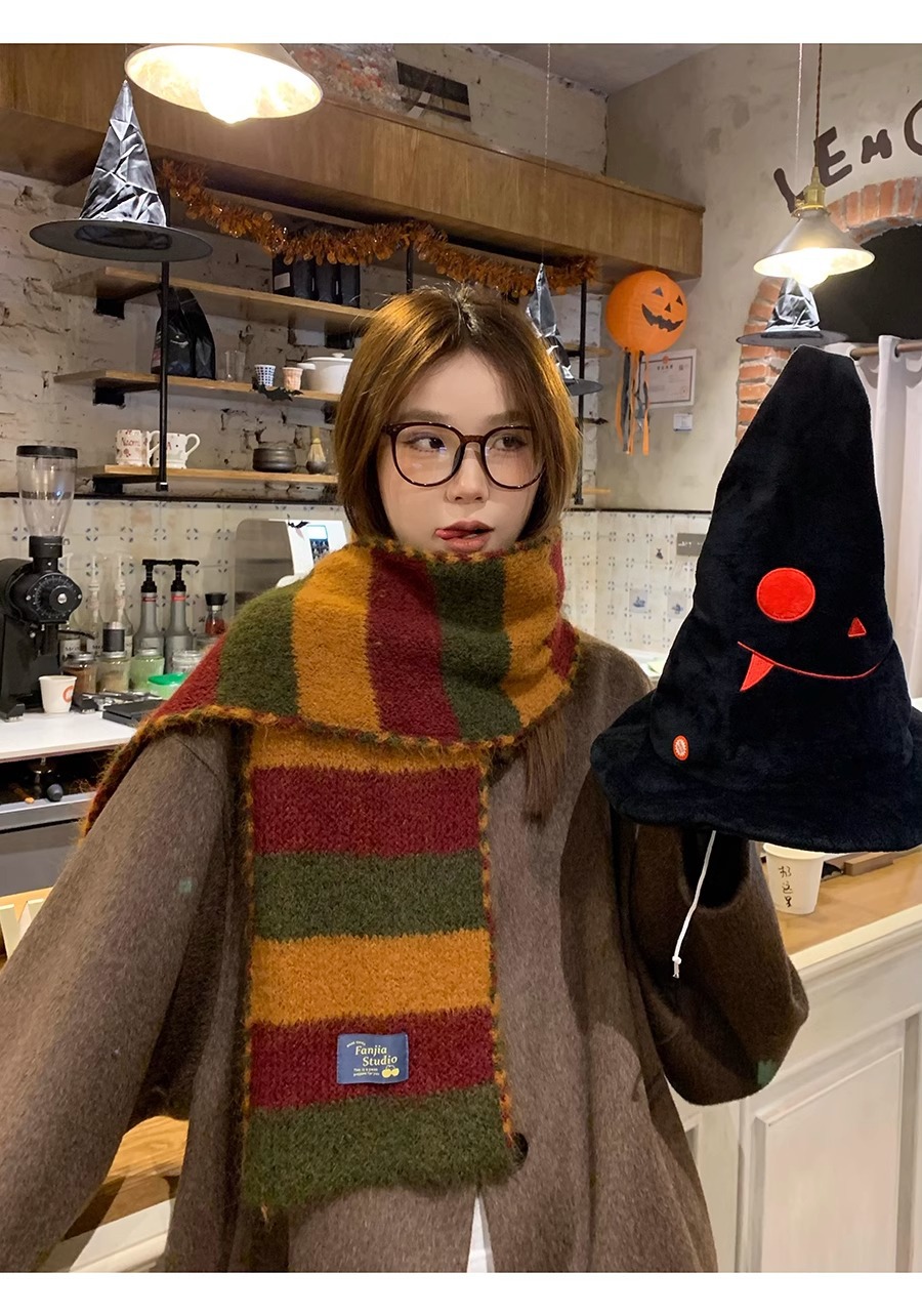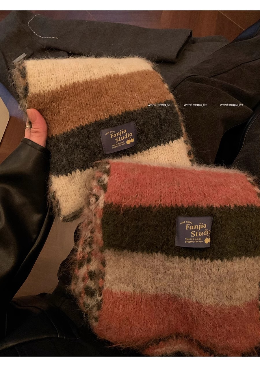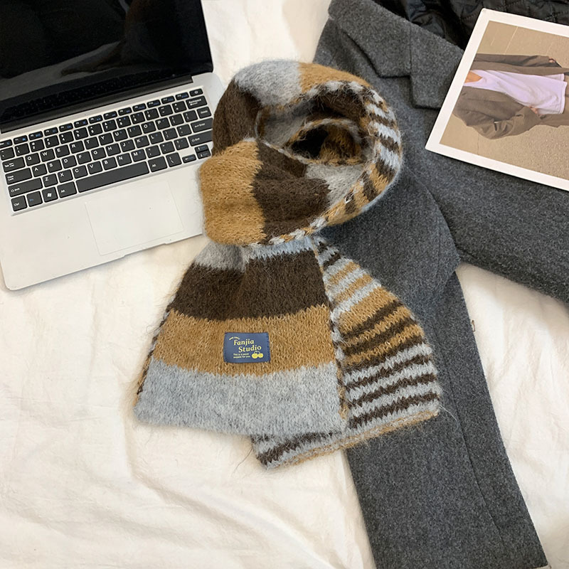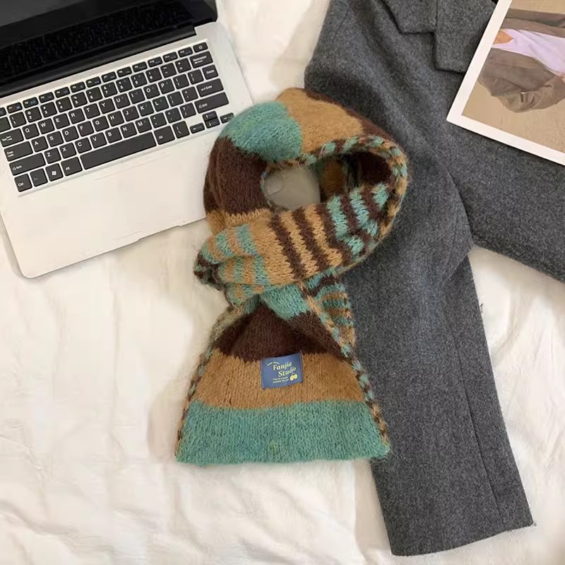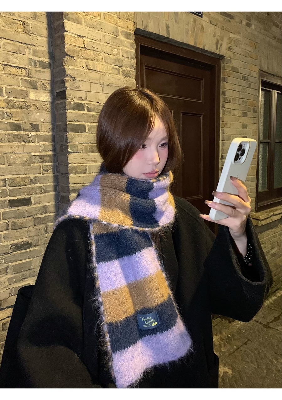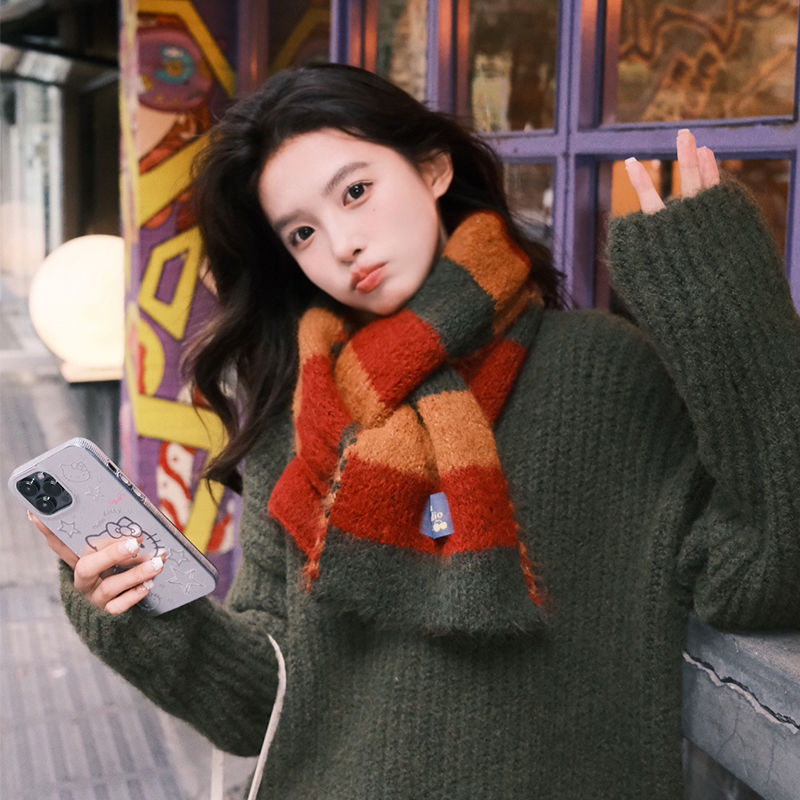 2024 겨울 새로운 여성 도파민 대비 색 스카프 따뜻한 양모 혼합 줄무늬 복고풍 다목적 두꺼운 목도리스토어 가기