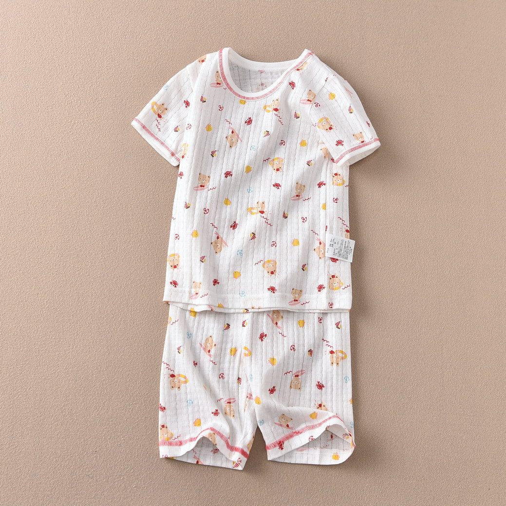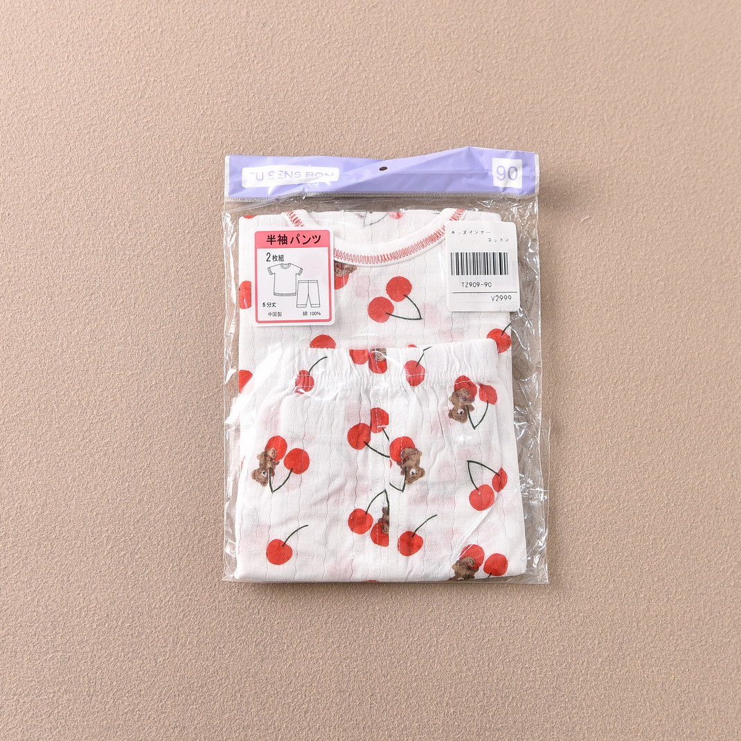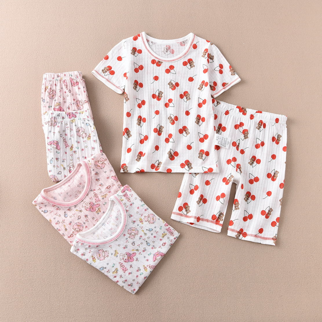 어린이 소녀 반팔 크롭 팬츠 세트 여름 홈 공장 직접 일본 꼬인 대나무 얇은 순면 클래스 A스토어 가기