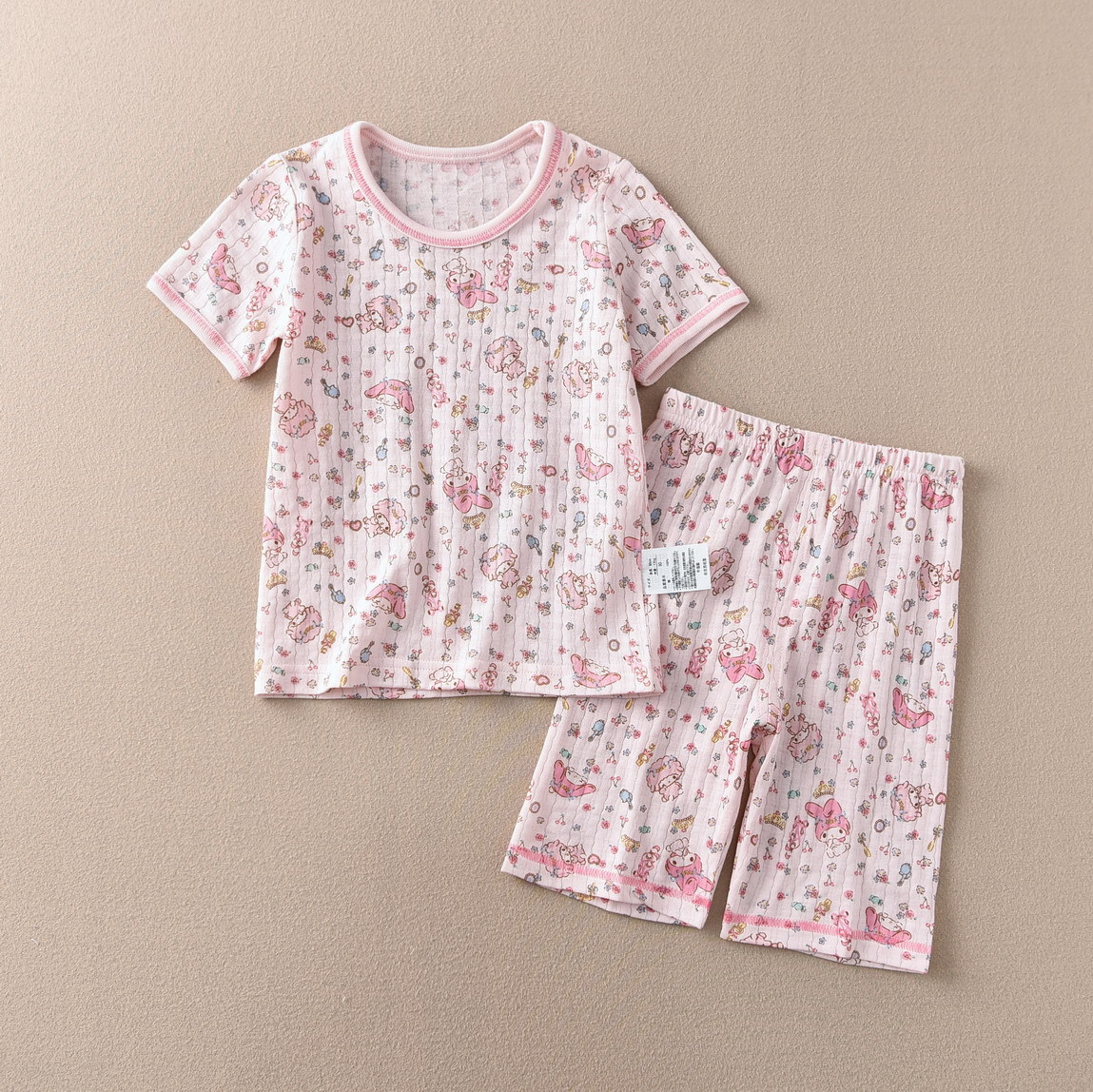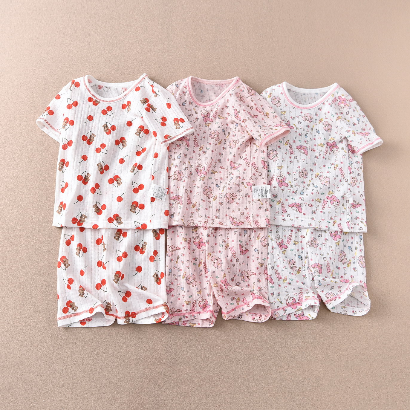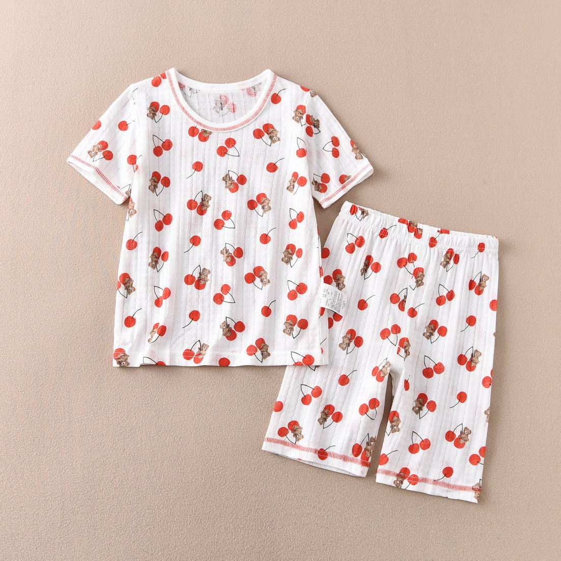 어린이 소녀 반팔 크롭 팬츠 세트 여름 홈 공장 직접 일본 꼬인 대나무 얇은 순면 클래스 A스토어 가기