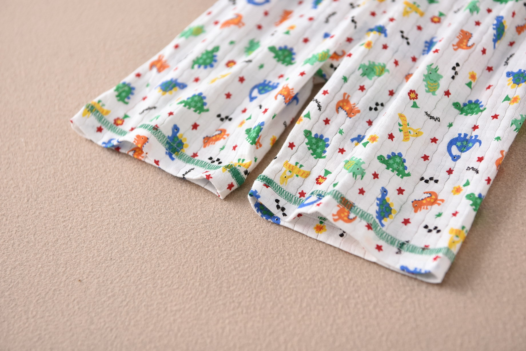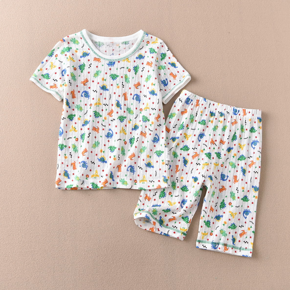 • 수직 줄무늬 짧은 소매 5 점 세트 녹색 가장자리 다채로운 5 성급 공룡 (세트)