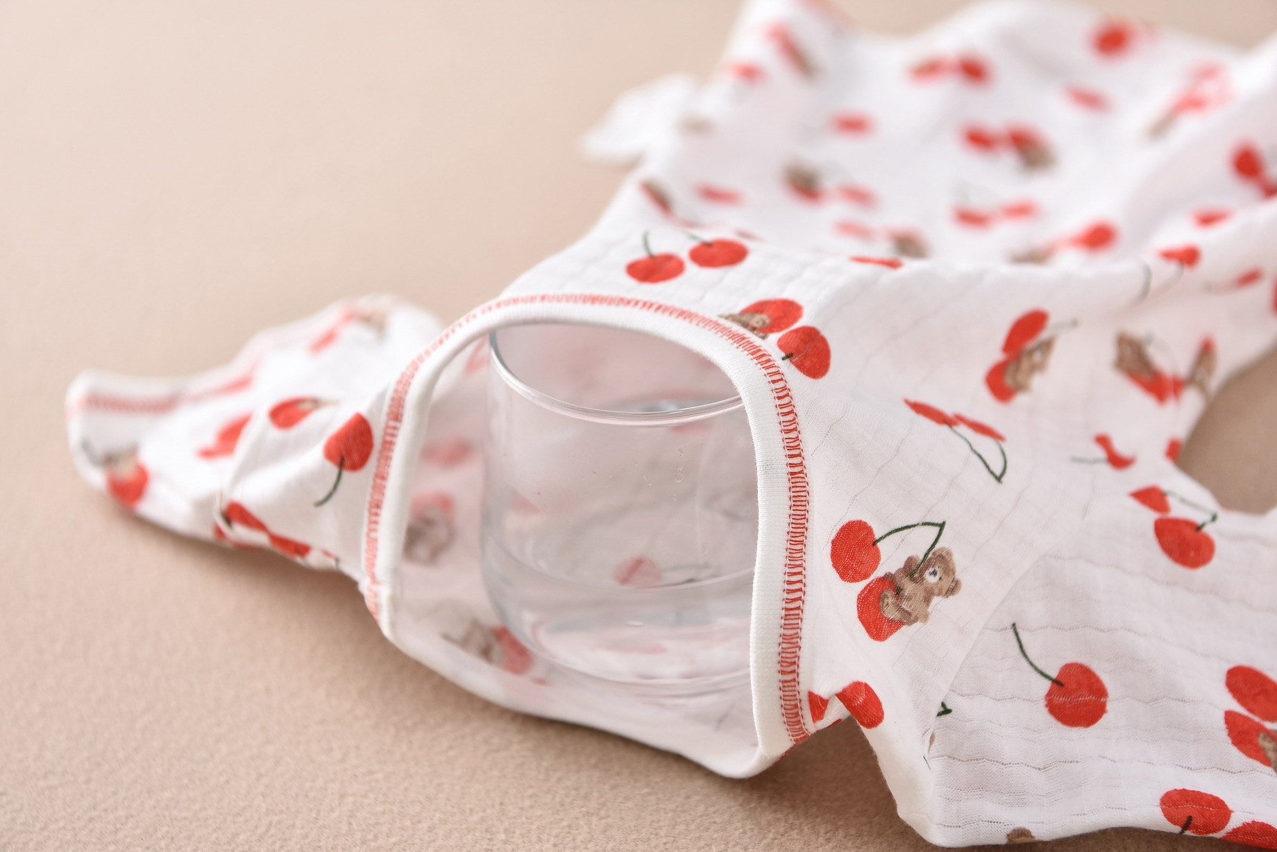 • 세로 줄무늬 짧은 소매 5 점 세트 흰색 아래쪽 곰 붉은 체리 (세트)