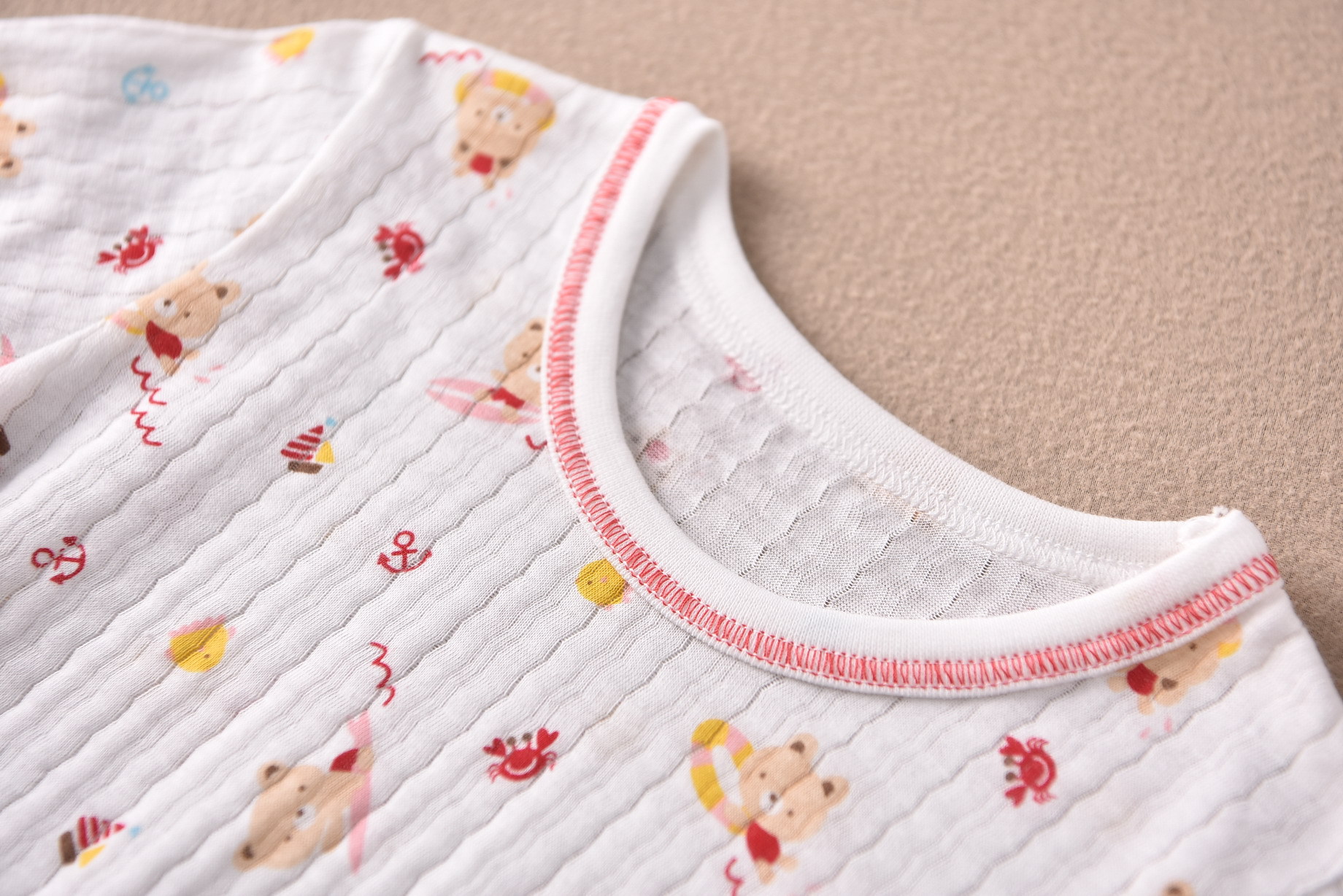 春夏新款,清爽风干净百搭,面料采用舒服的新疆棉,透气性好, 薄面料网眼镂空提花织布,扭花汗布,薄且不变形,吸汗速干不贴身哦,打底外穿宝宝都喜欢,采用进口机器~~每一件都是相当讲究的做工,细节决定品质,每款都可百搭……
