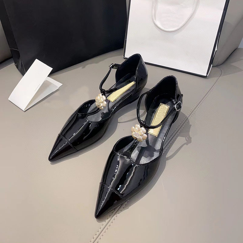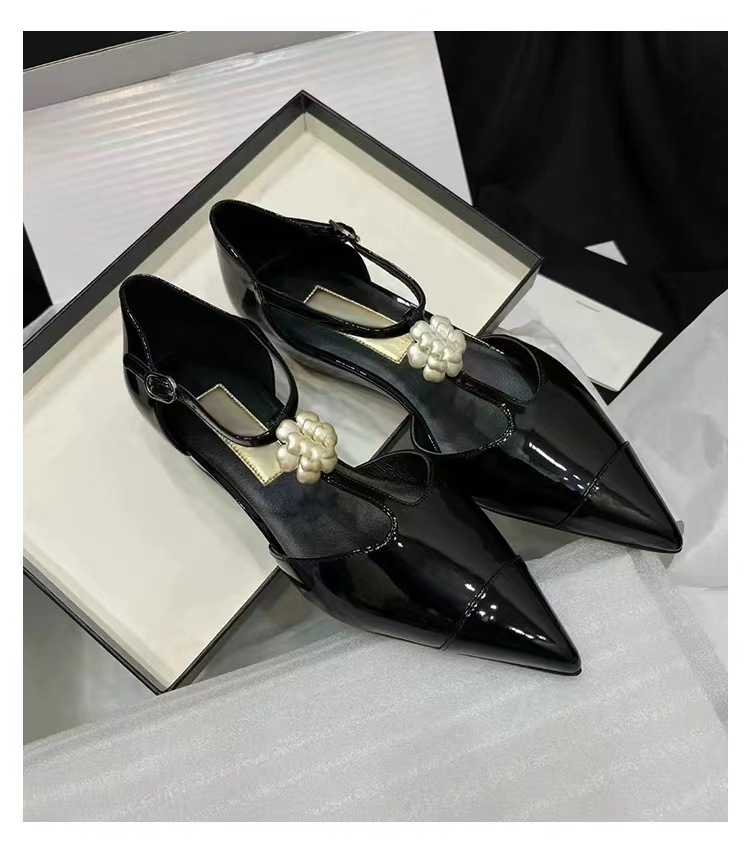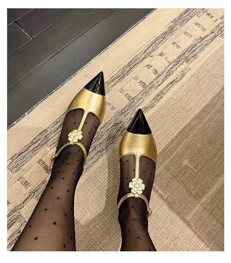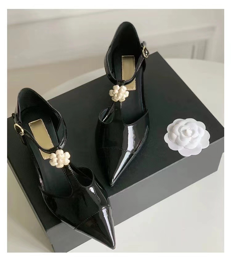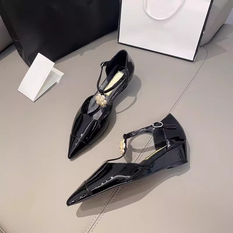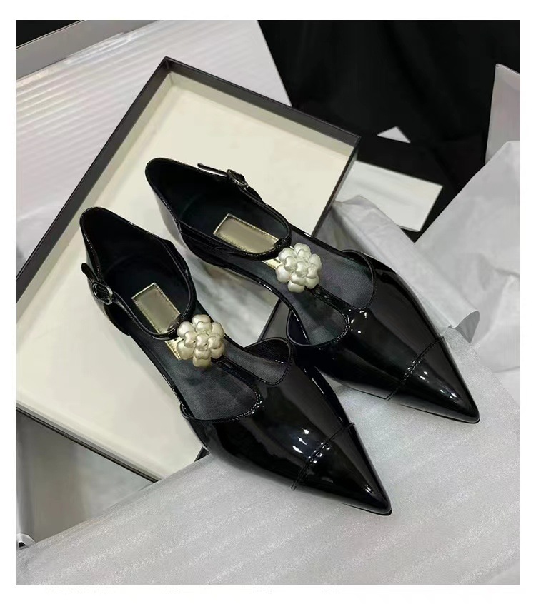 카멜리아 플라워 스몰 프래그런스 스타일 메리제인 슈즈 여성용 워터드롭스톤 포인티드 토 프렌치 하이힐 웨지힐 원스트랩 얕은굽 싱글 슈즈