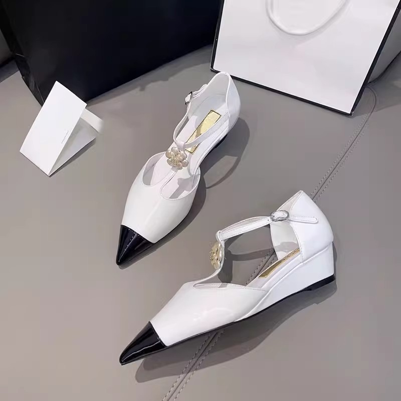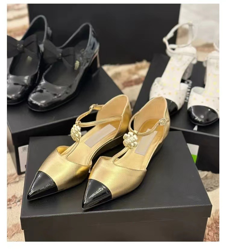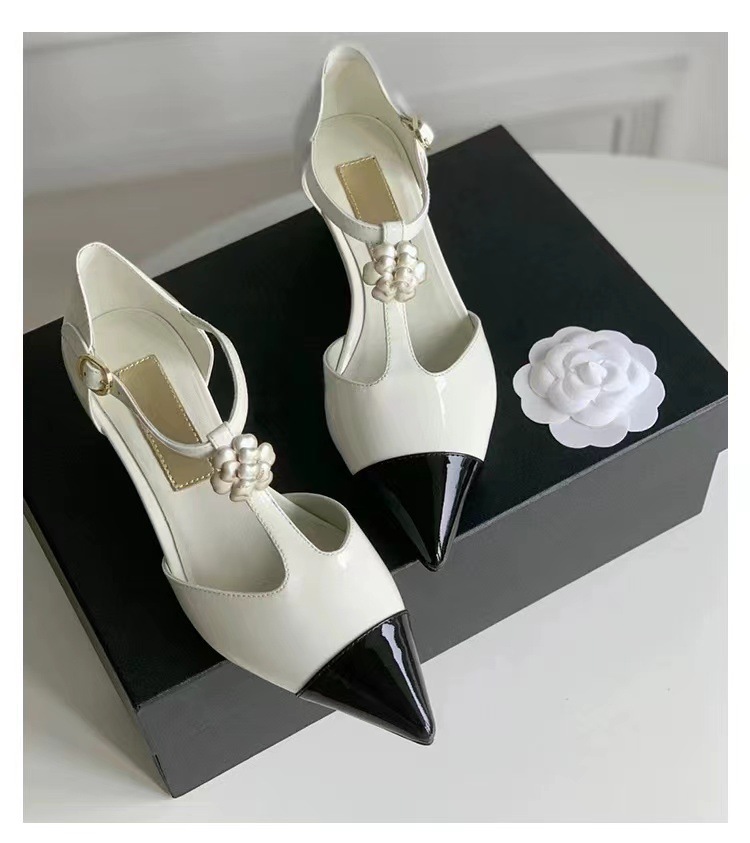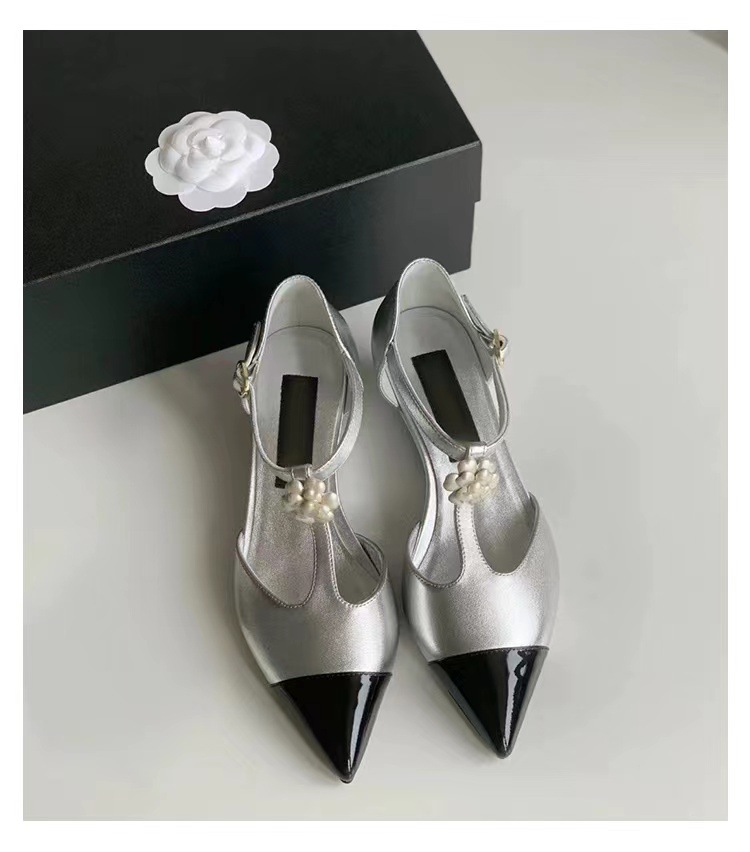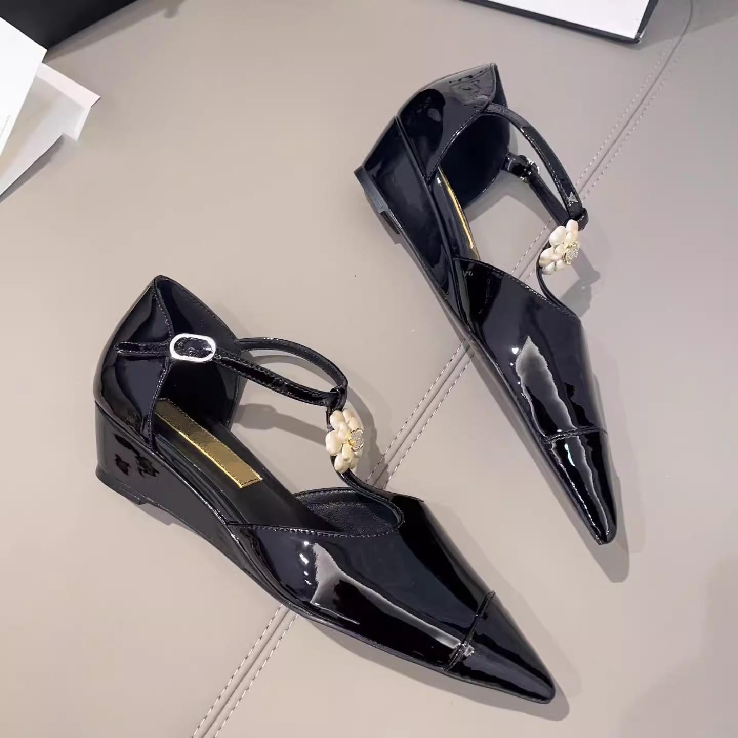 카멜리아 플라워 스몰 프래그런스 스타일 메리제인 슈즈 여성용 워터드롭스톤 포인티드 토 프렌치 하이힐 웨지힐 원스트랩 얕은굽 싱글 슈즈