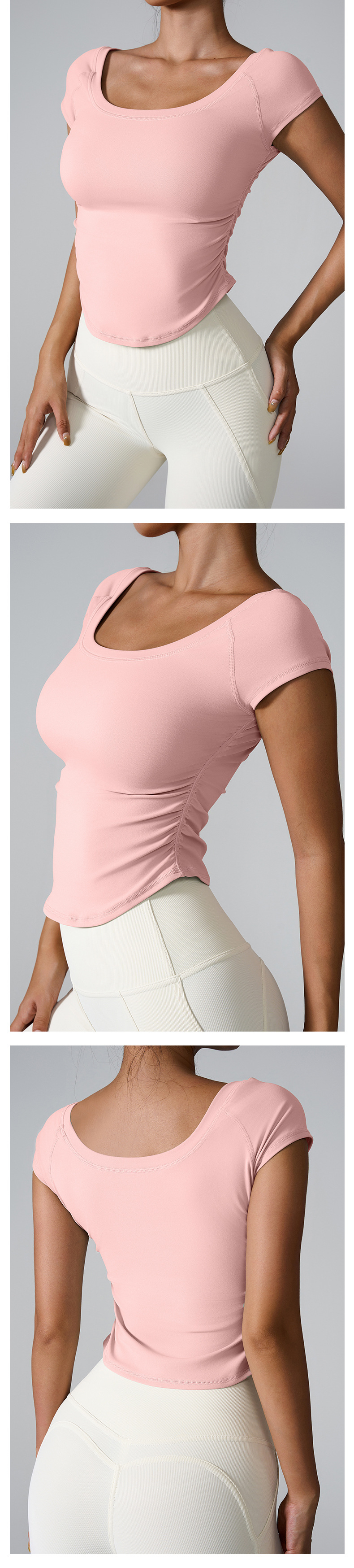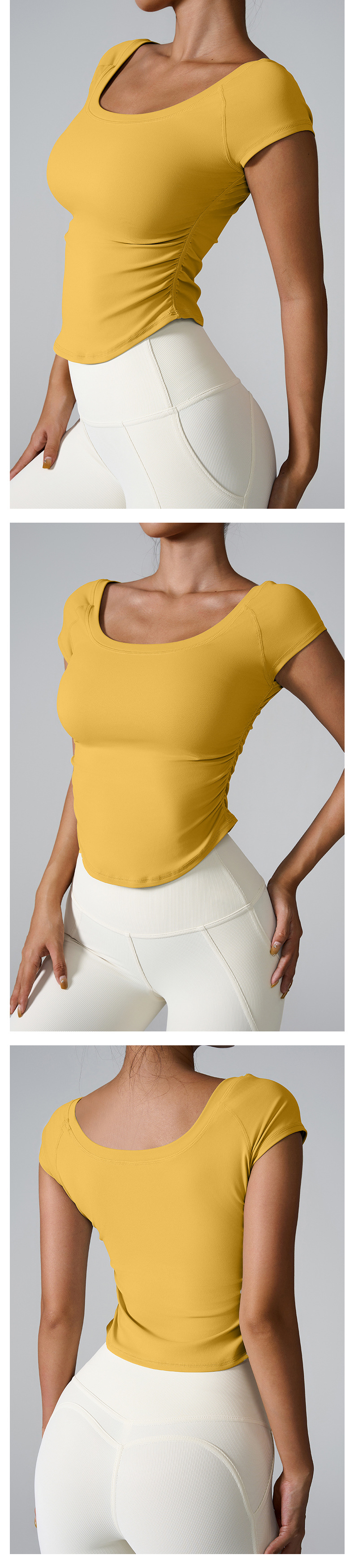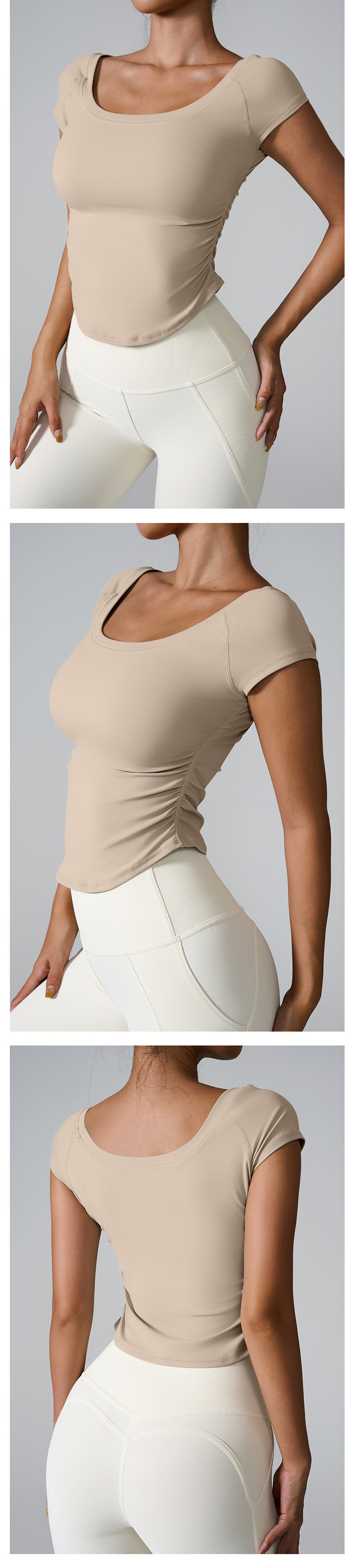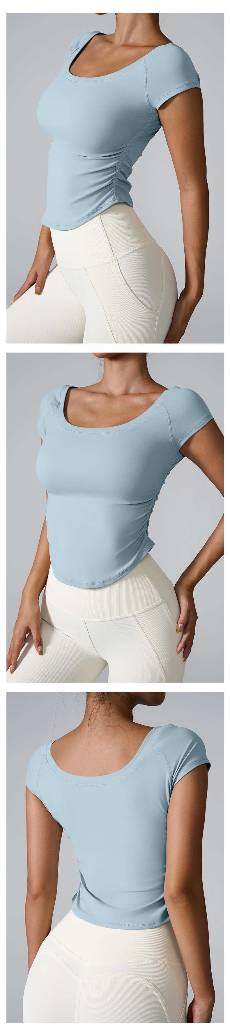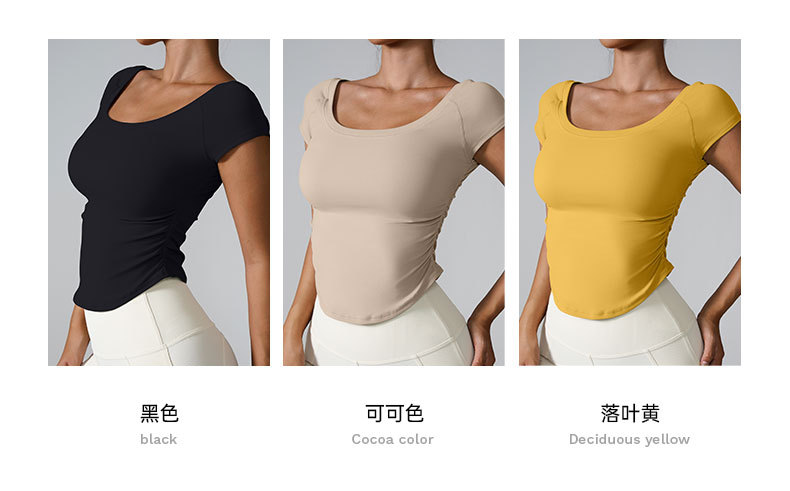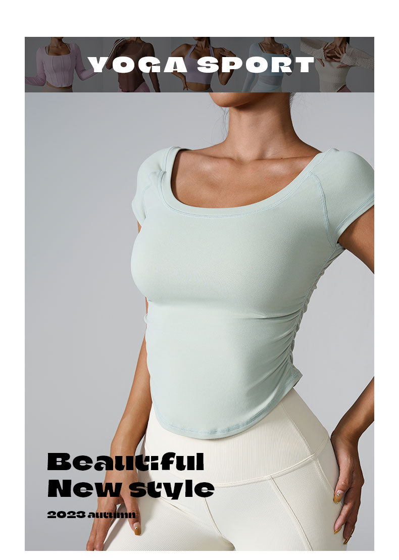 Ins2025 국경을 넘는 타이트 스포츠 반팔 달리기 훈련 빠른 건조 옷 여성용 반팔 얇은 알몸 요가 옷스토어 가기