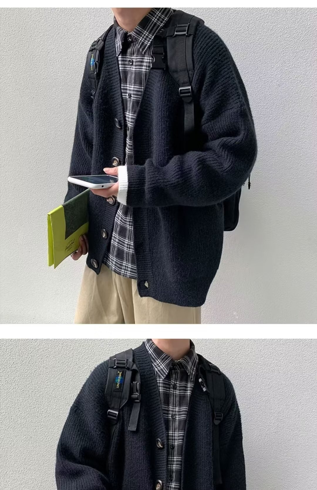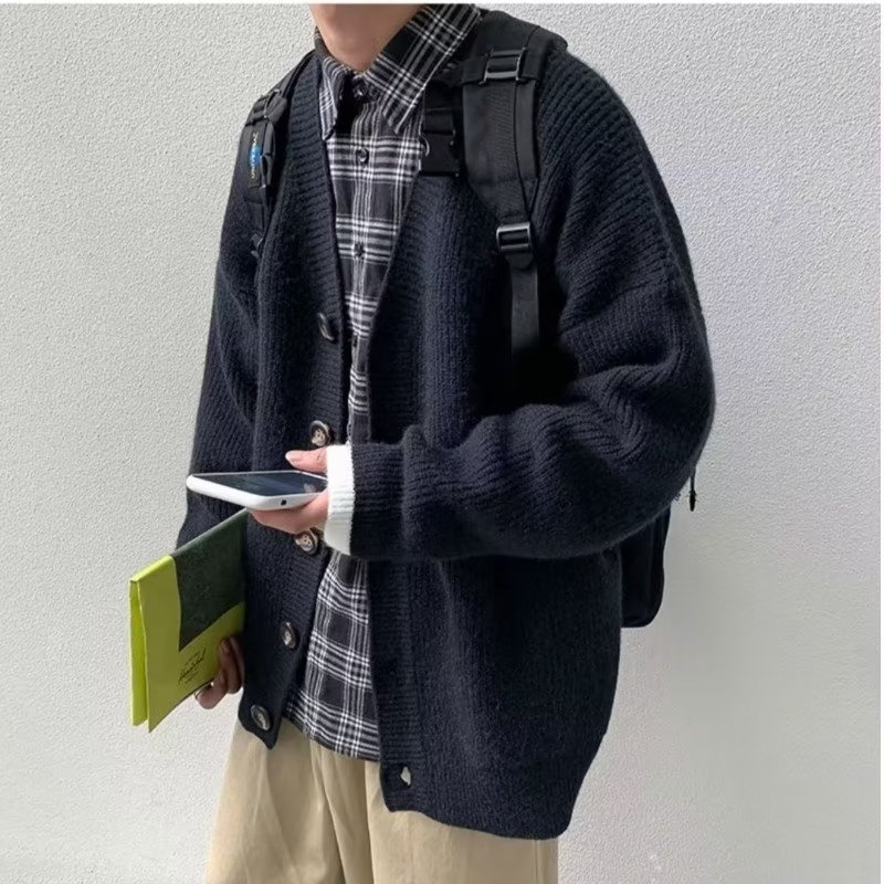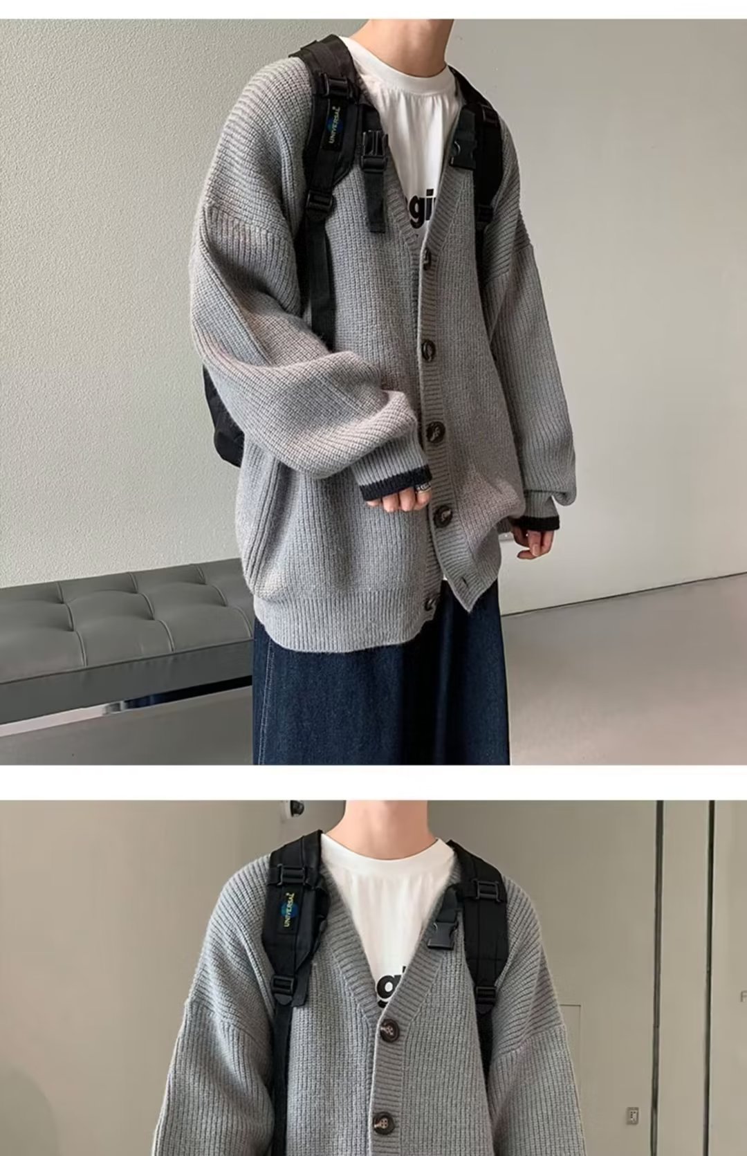 In 트렌디 한 게으른 느슨한 니트 카디건 남성용 한국식 스웨터 코트 세련된 개성 bf 아우터 캐주얼 탑