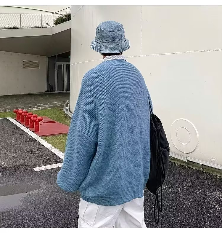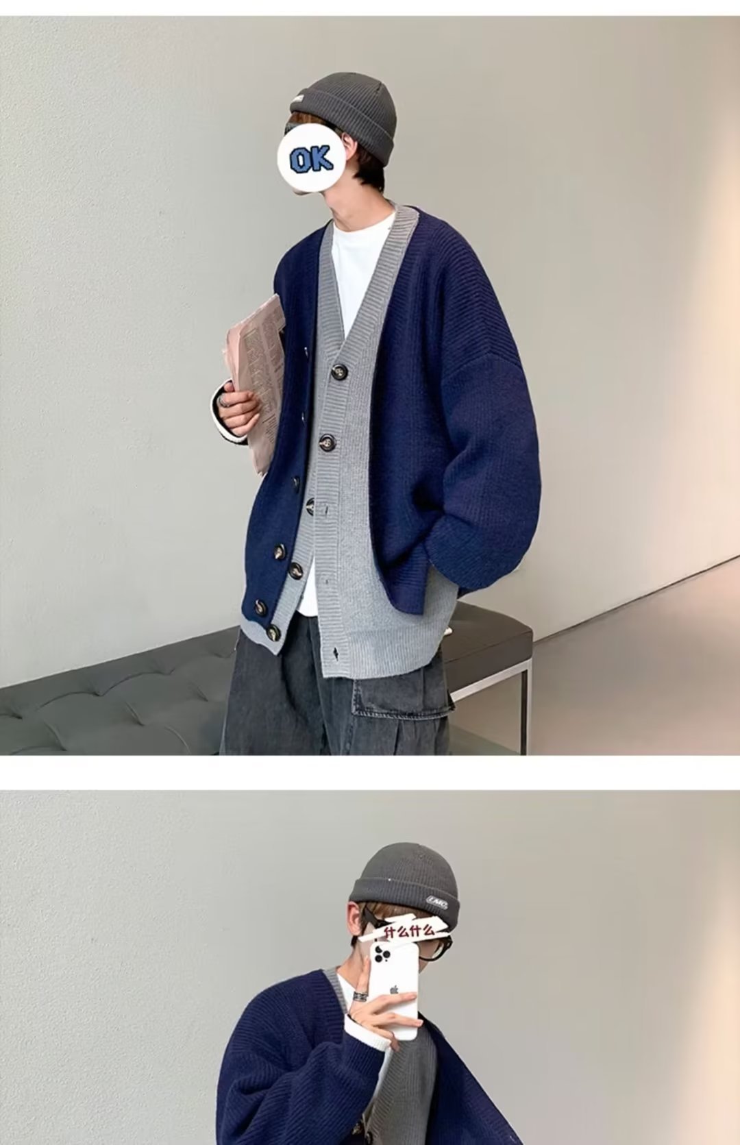 In 트렌디 한 게으른 느슨한 니트 카디건 남성용 한국식 스웨터 코트 세련된 개성 bf 아우터 캐주얼 탑스토어 가기