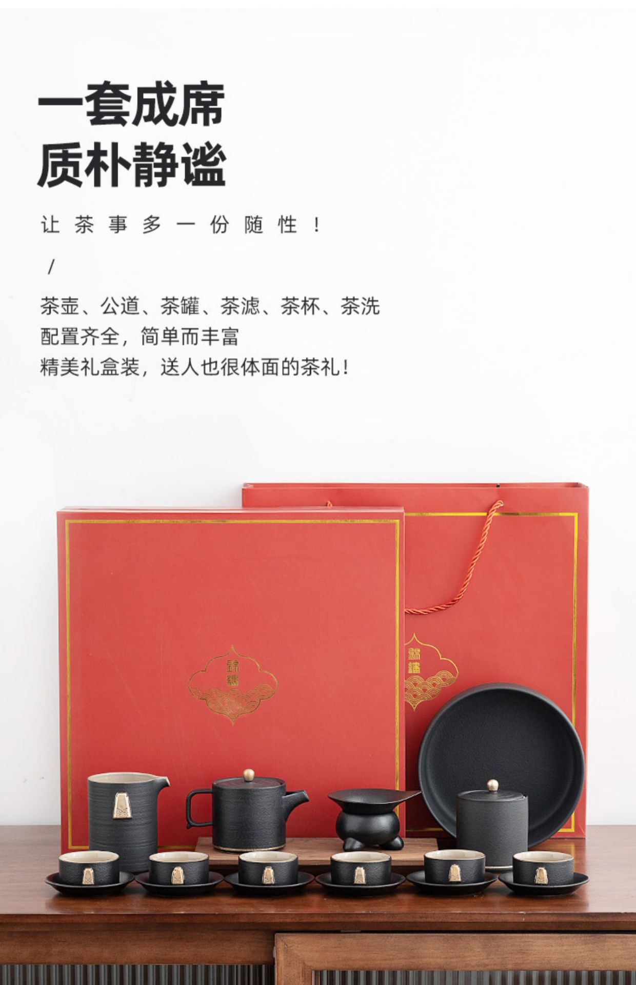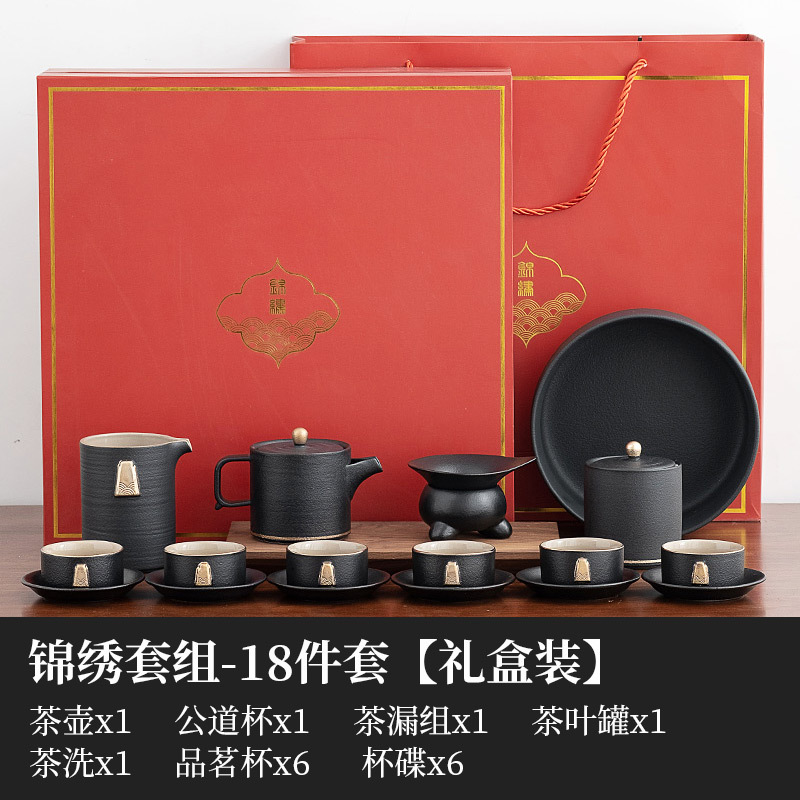 화려한 쿵푸 차 세트 세트 세라믹 주전자 티 컵 홈 거실 사무실 현대 간단한 하이 엔드 선물 상자