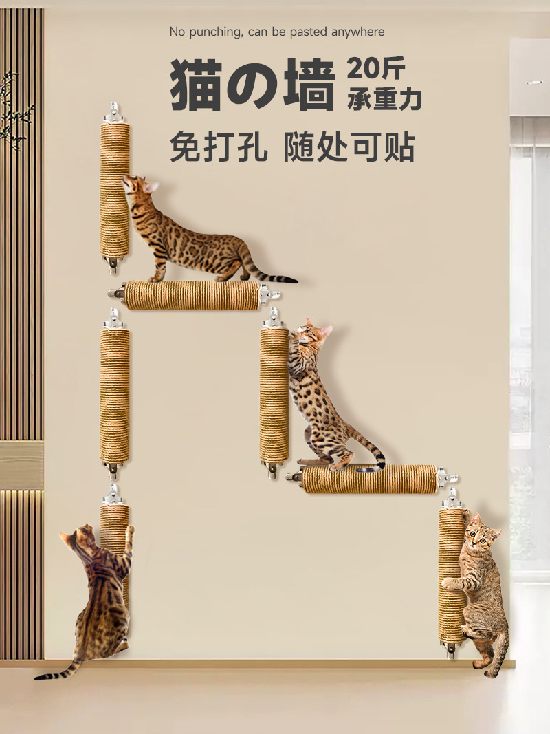 사이 잘 컬럼 고양이 스크래치 칼럼 내마모성 비 칩 수직 연삭 발톱 칼럼 벽 펀치가없는 스크래치 방지 고양이 등반 프레임