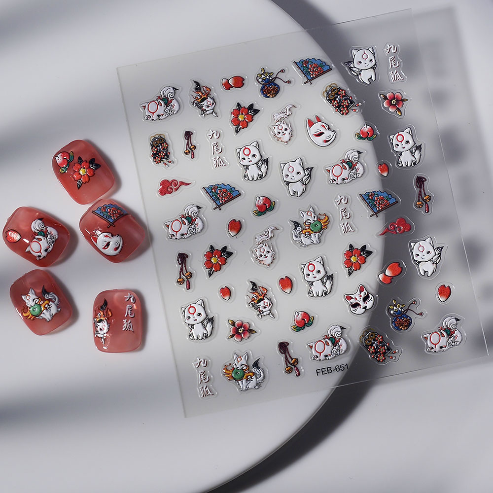 5D 입체 구호 네일 스티커 귀여운 여우 만화 DIY 휴대 전화 물 컵 장식스토어 가기