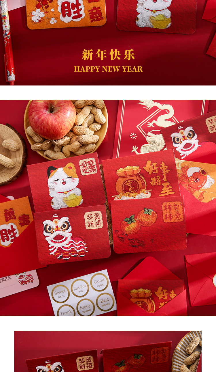 • 새해 유화 시리즈 인사말 카드/봉투 + 밀봉 스티커 보내기