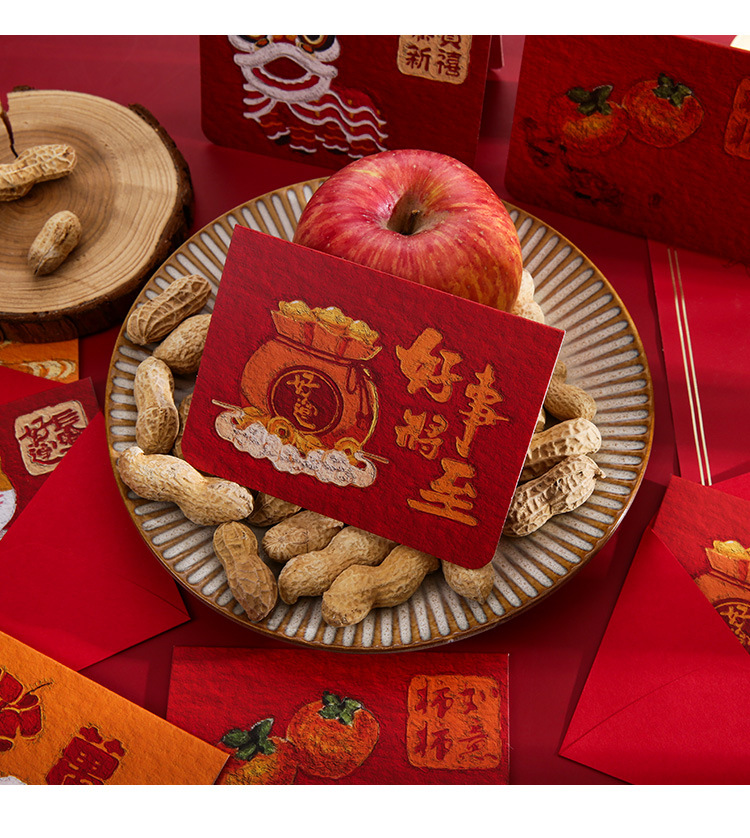 새해 유화 인사말 카드 귀여운 절묘한 고급 두꺼운 필기 축복 신선한 빈 DIY 작은 카드 도매스토어 가기