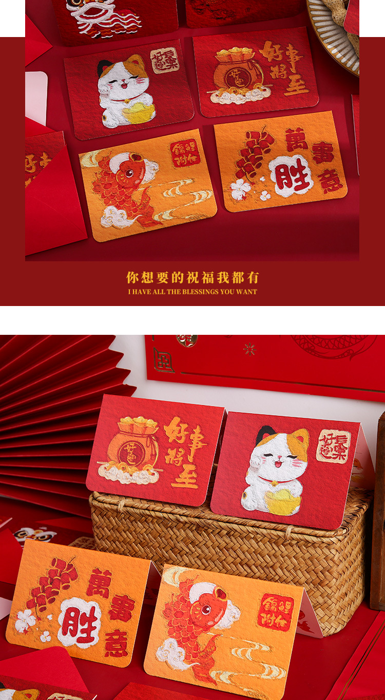 새해 유화 인사말 카드 귀여운 절묘한 고급 두꺼운 필기 축복 신선한 빈 DIY 작은 카드 도매