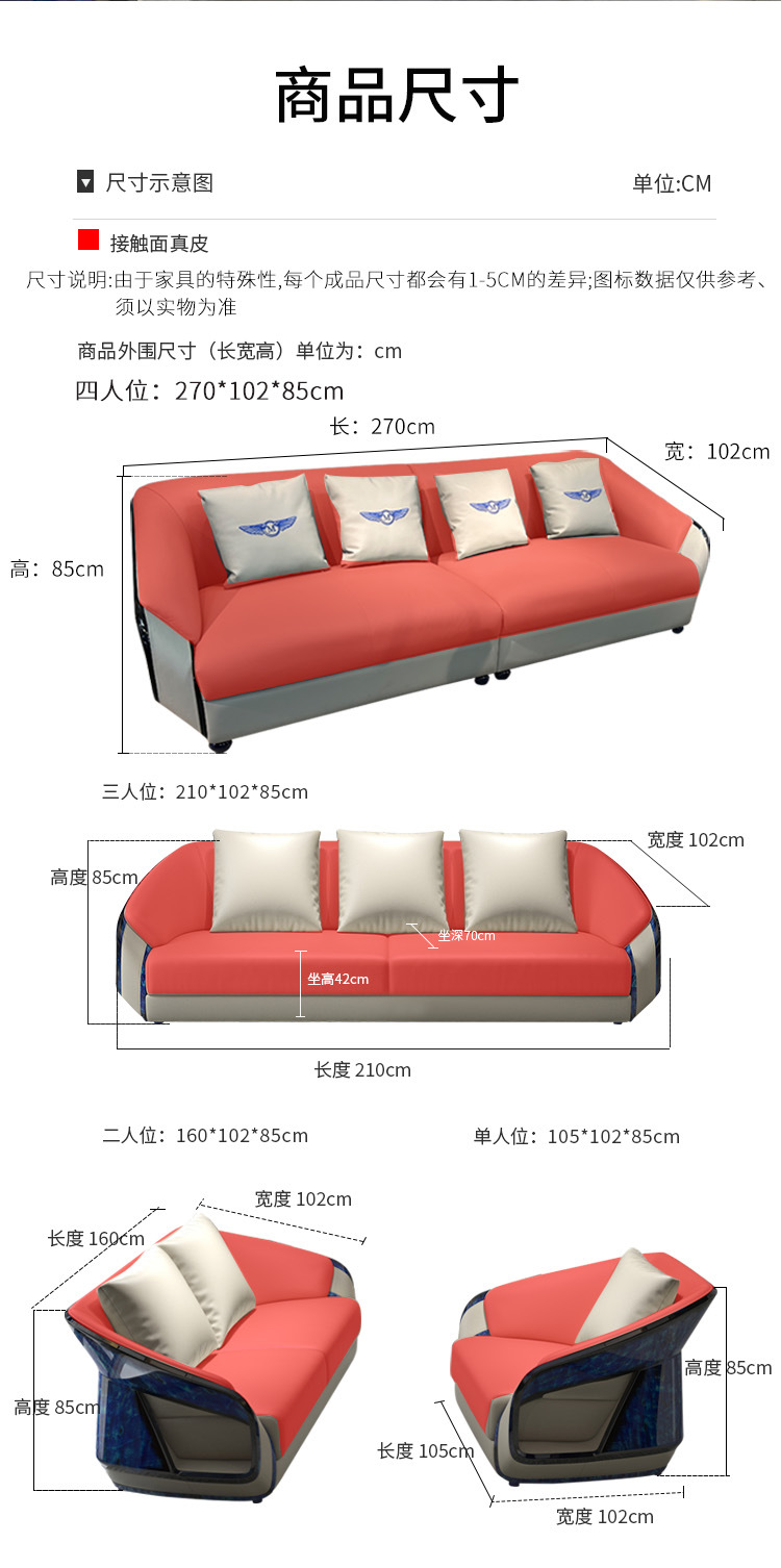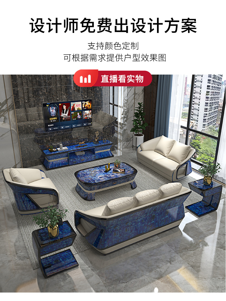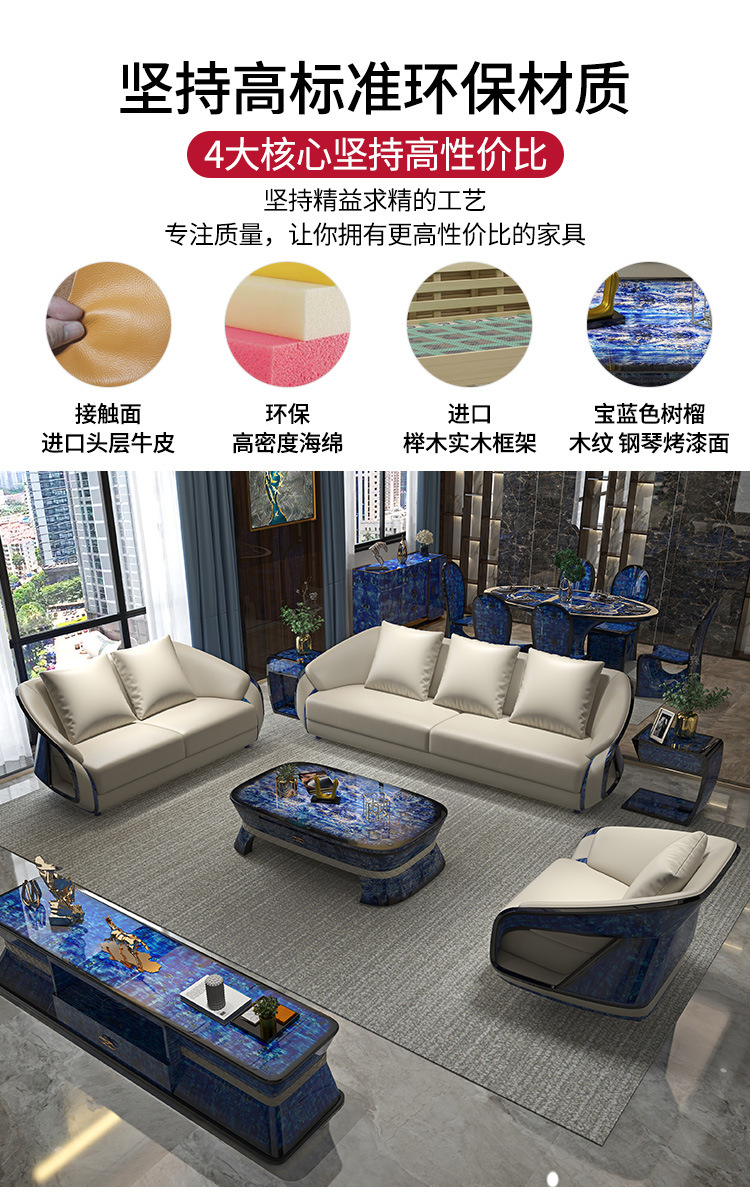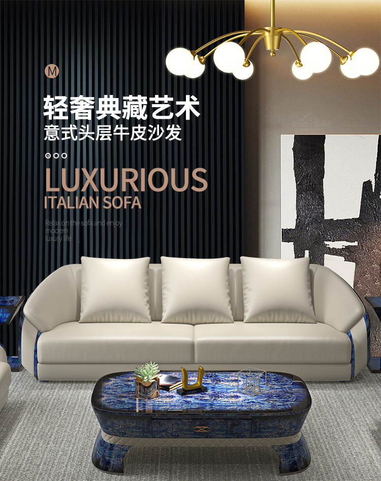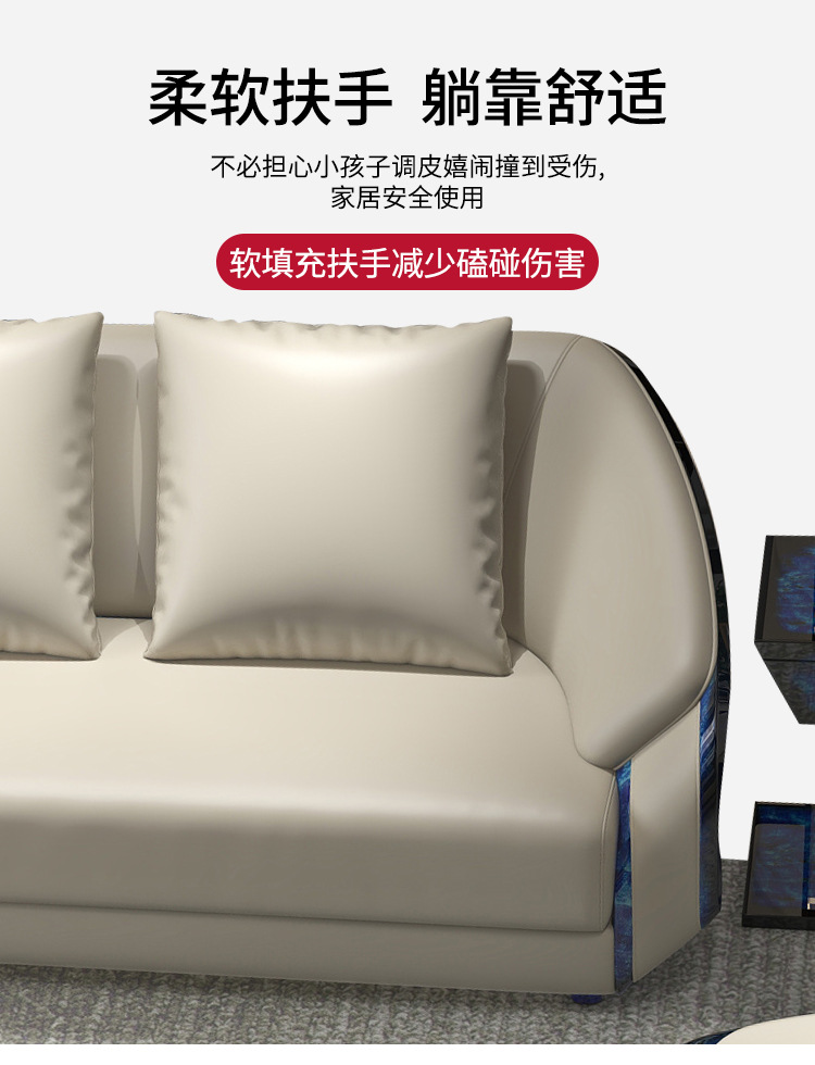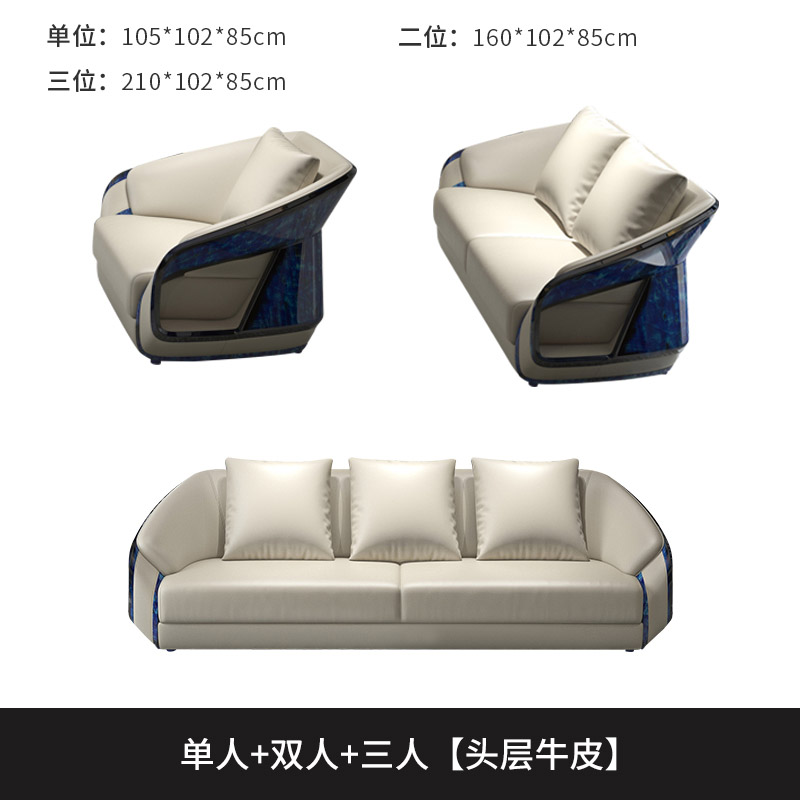 이탈리아 스타일의 가벼운 고급 가죽 소파 거실 작은 아파트 이탈리아 디자이너 인터넷 연예인 1 층 소 가죽 소파 가구