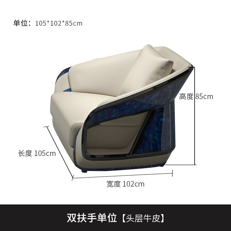 • 더블 팔걸이가 있는 싱글 시트(소가죽의 첫 번째 레이어)