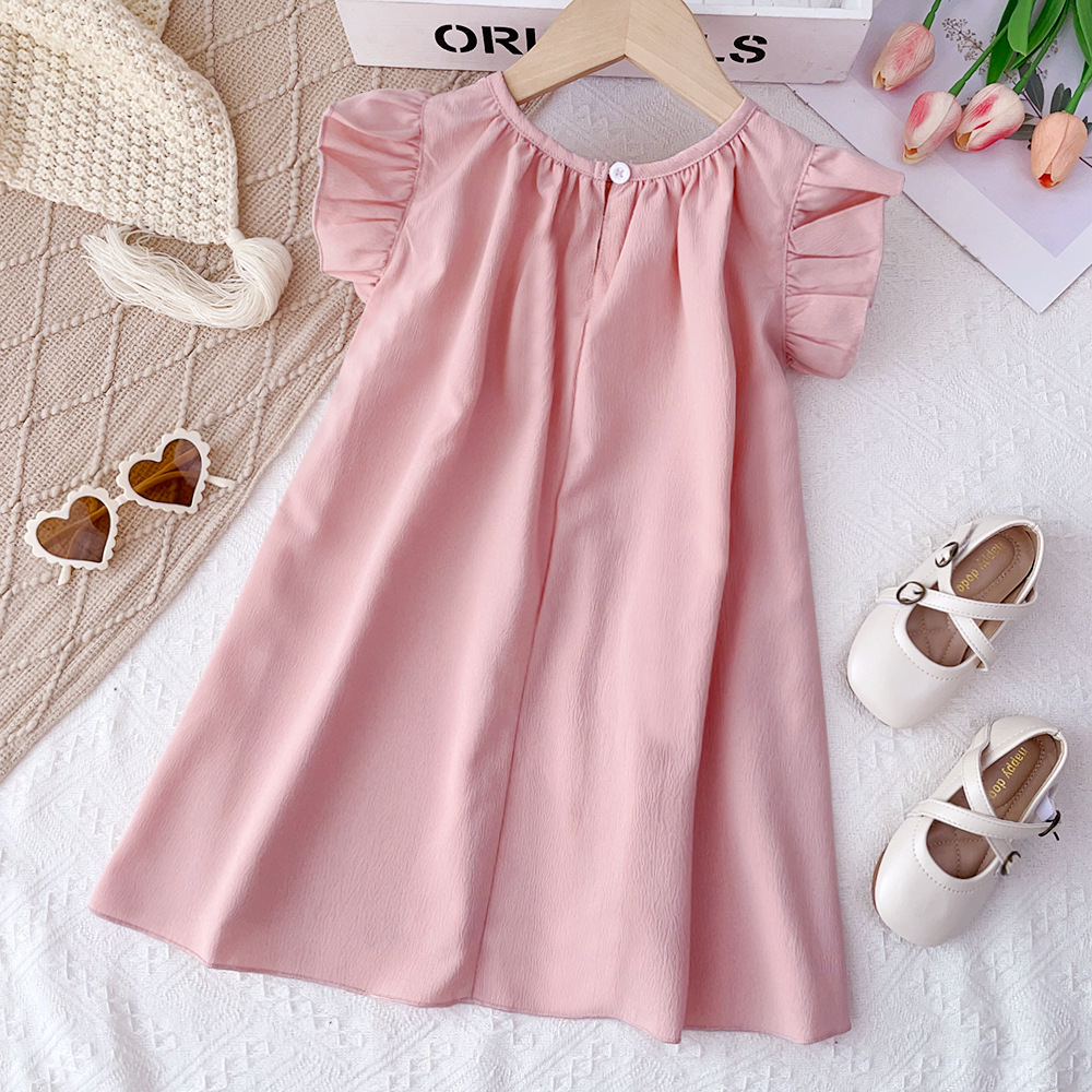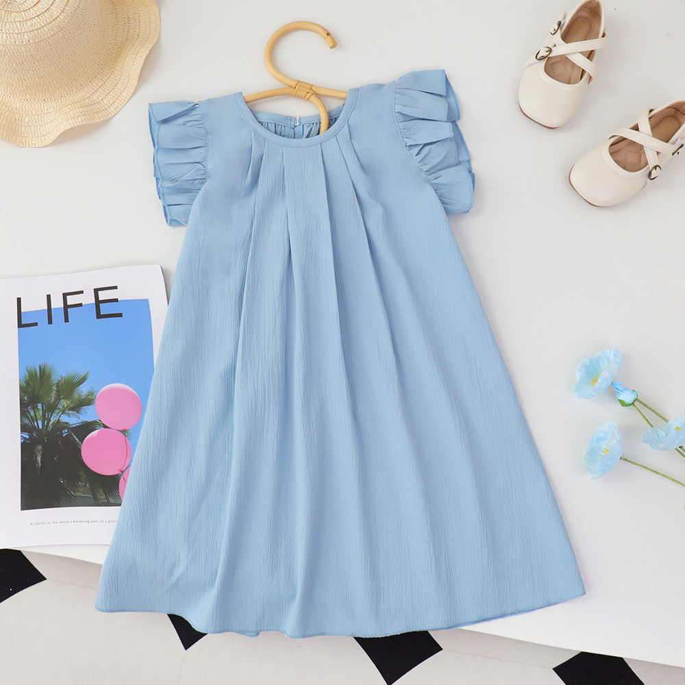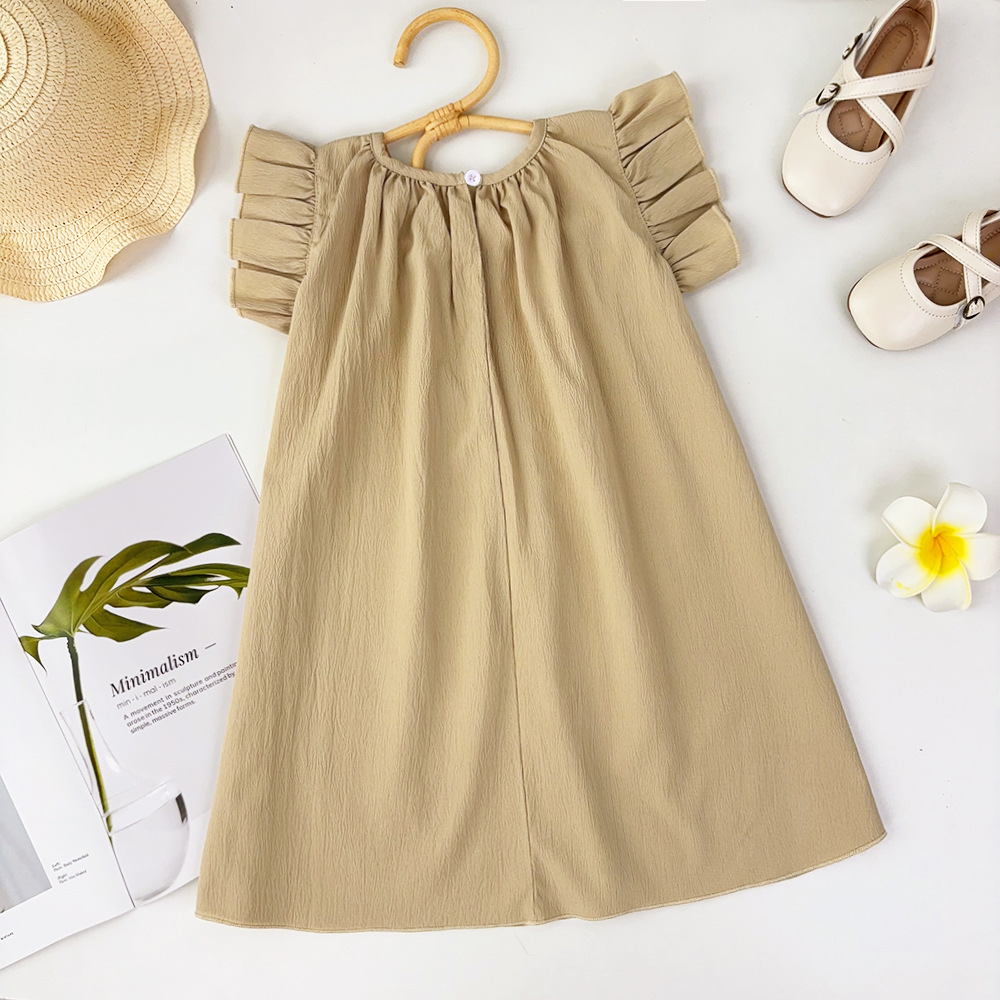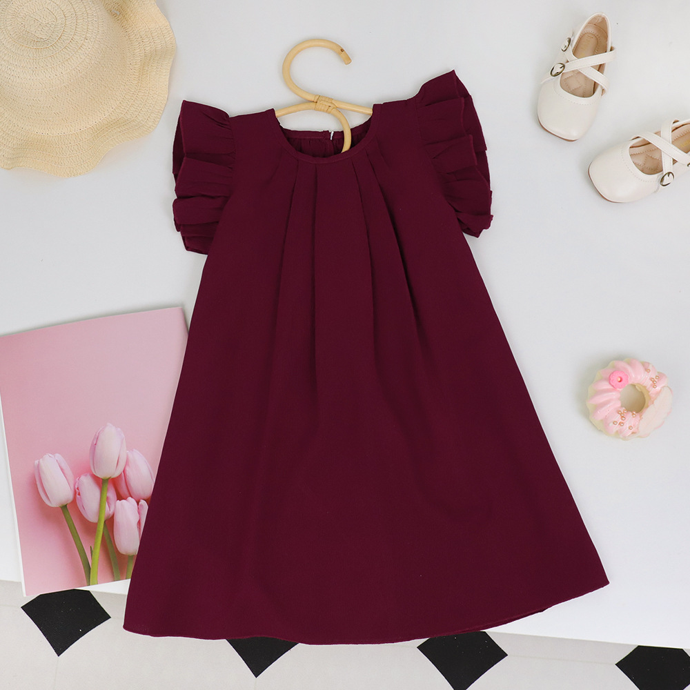 여아용 레드 원피스 2026 여름 신상품 여아용 단색 러플 스커트 유럽 및 미국 스타일 해외에서 인기 판매